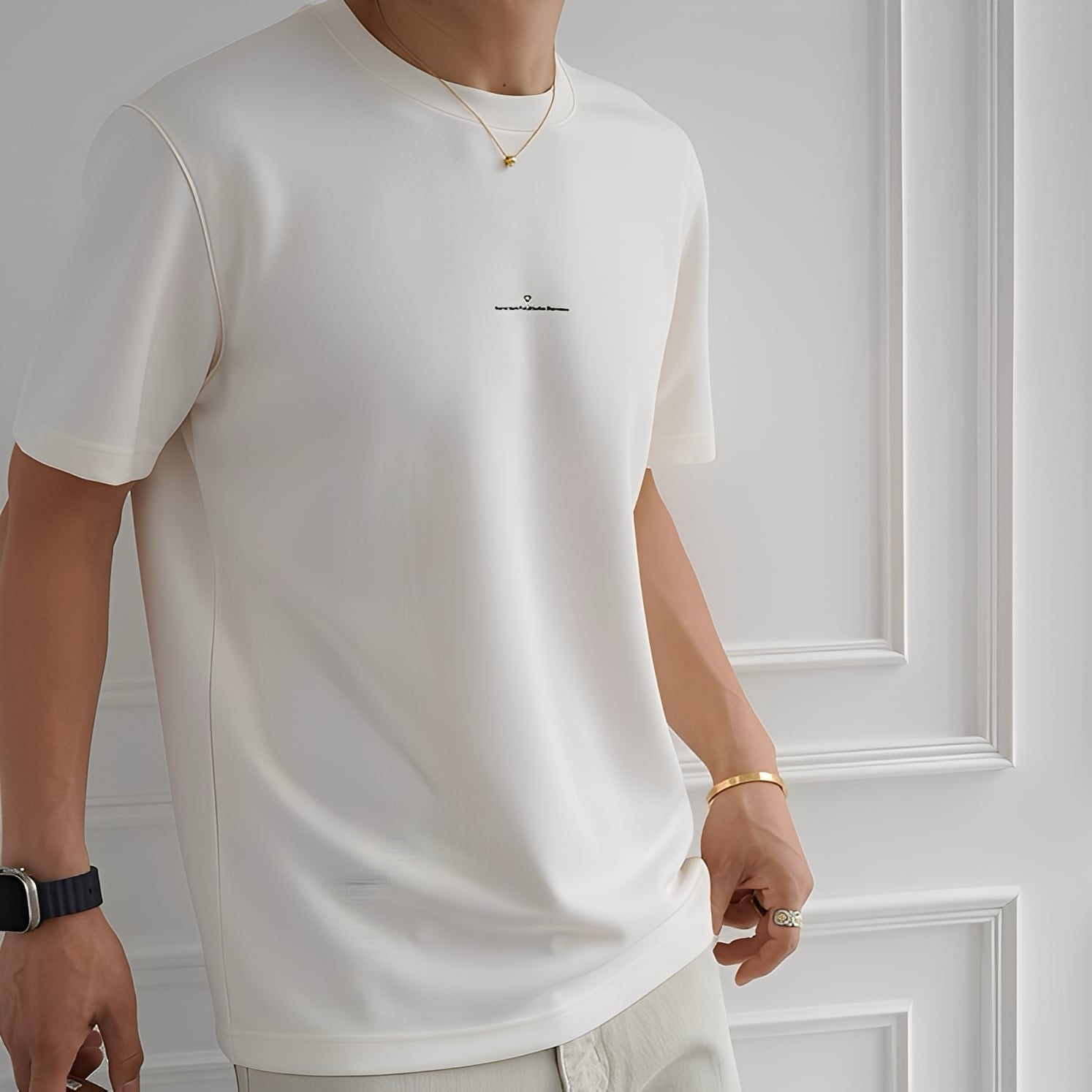 洗練されたミニマルデザインが魅力のクルーネックTシャツ。