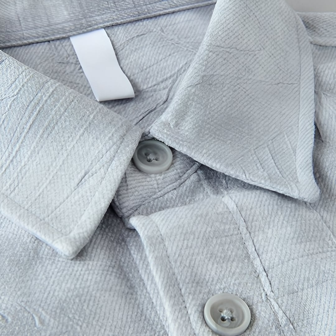 独特のかすれ感とシャドウのようなニュアンスを持たせた、奥行きのあるグレーシャツ。