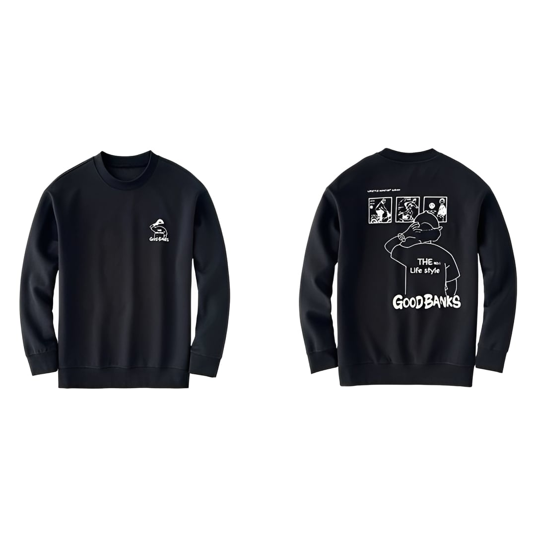 モノトーンでまとめられたコミックタッチのアートが、カジュアルな日常に楽しさをプラス。スタイリングの主役になる一枚です。