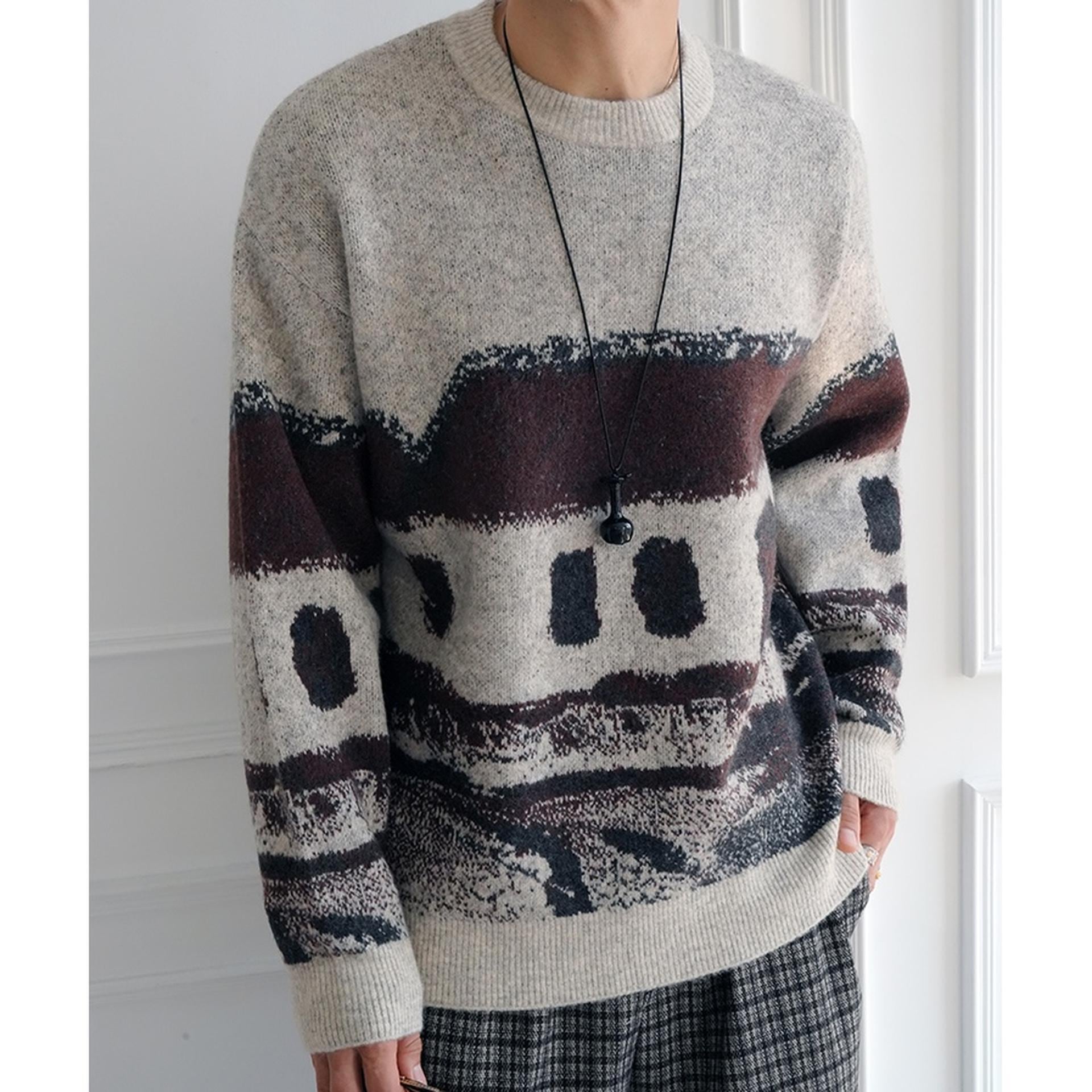 まるで抽象的な風景画のような独創的なパターンが、冬のスタイリングを格上げします。