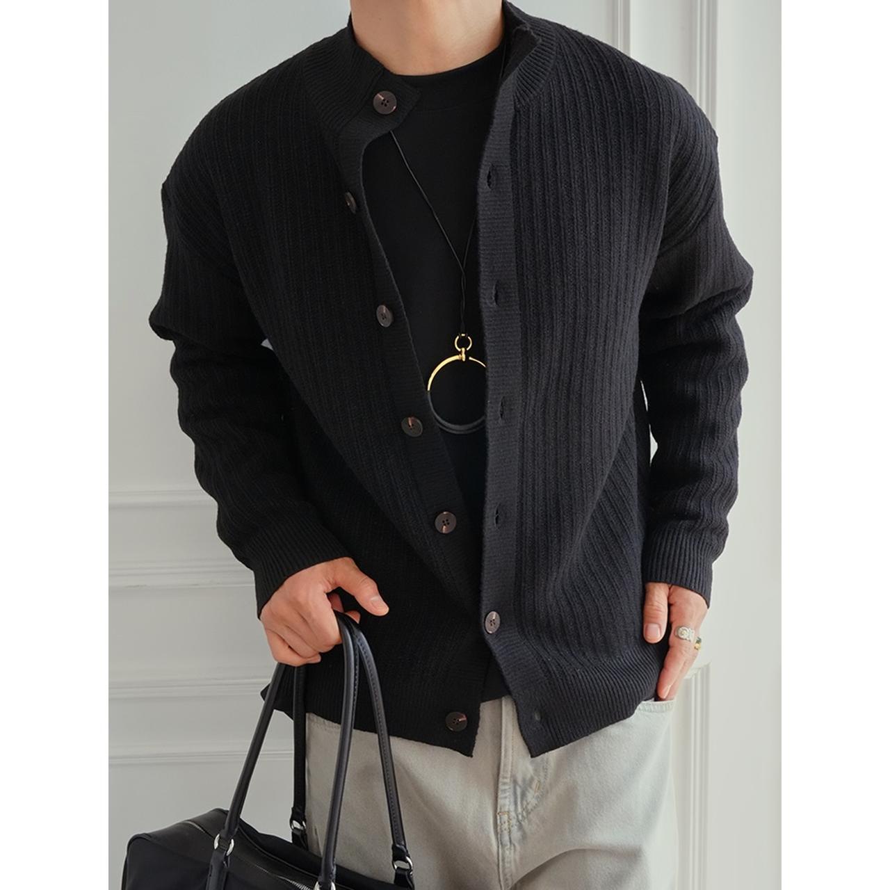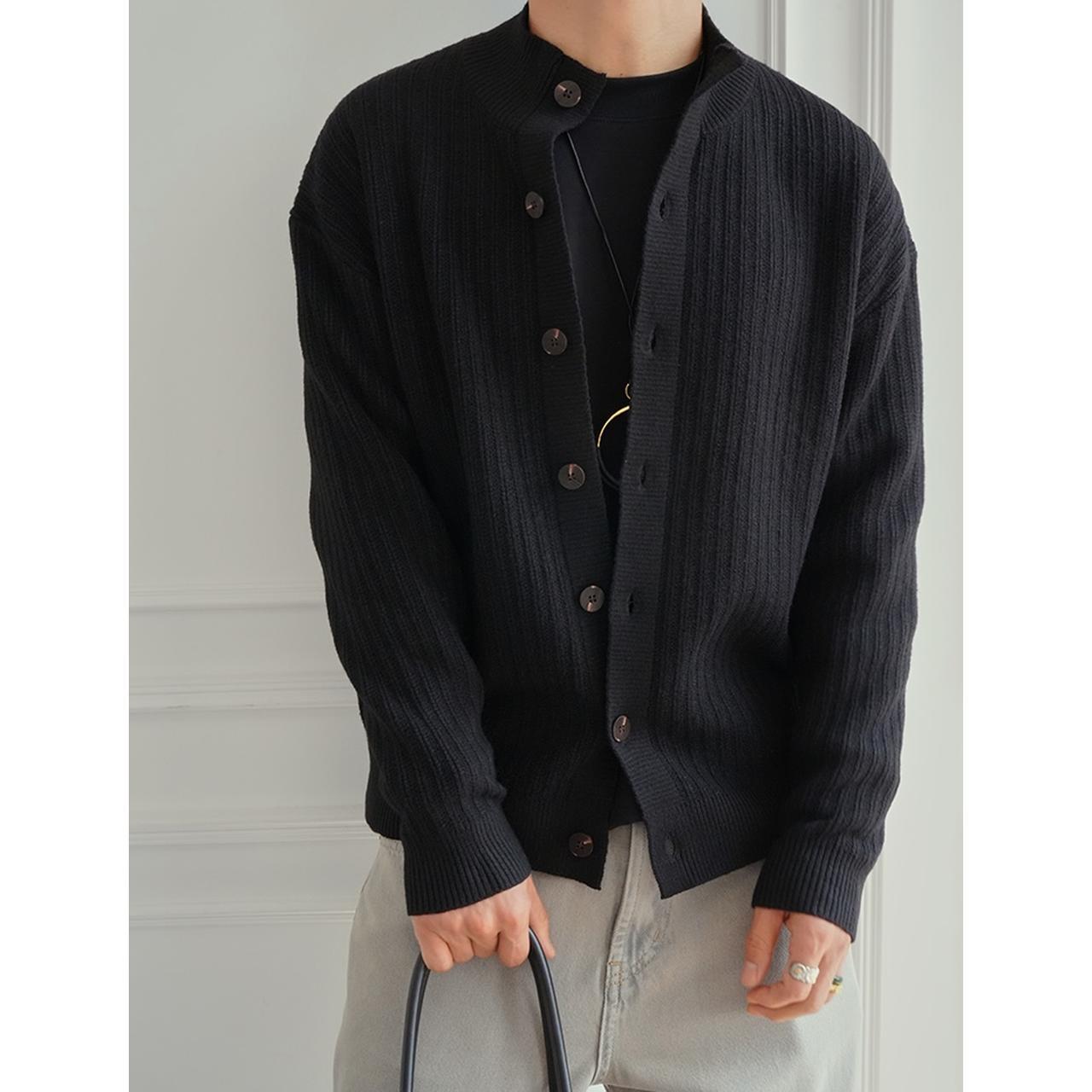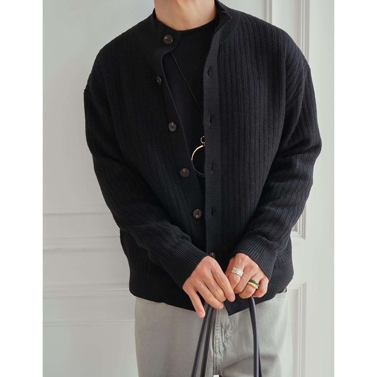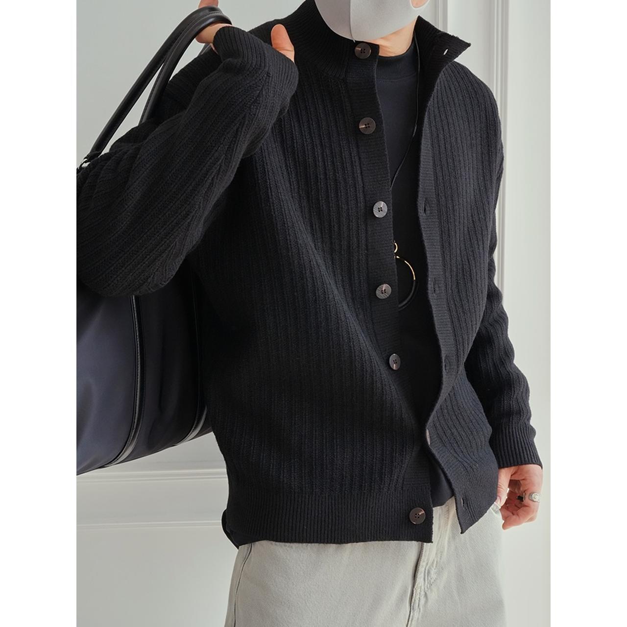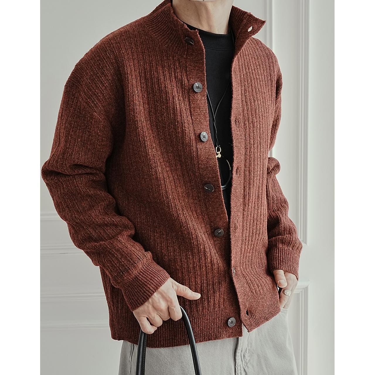 上品なリブデザインが特徴のスタンドカラーカーディガン。