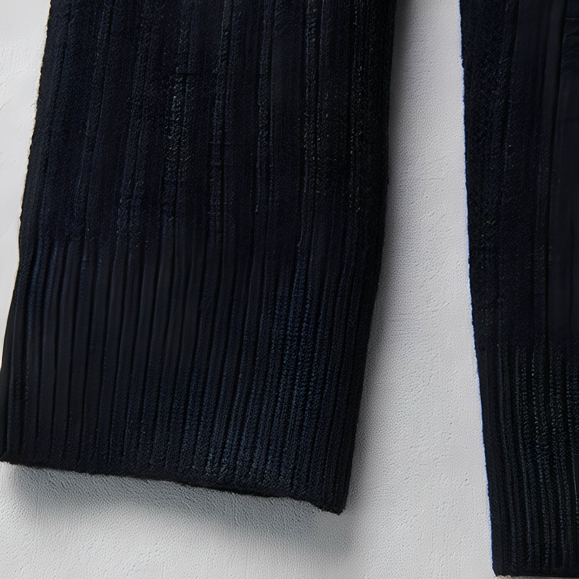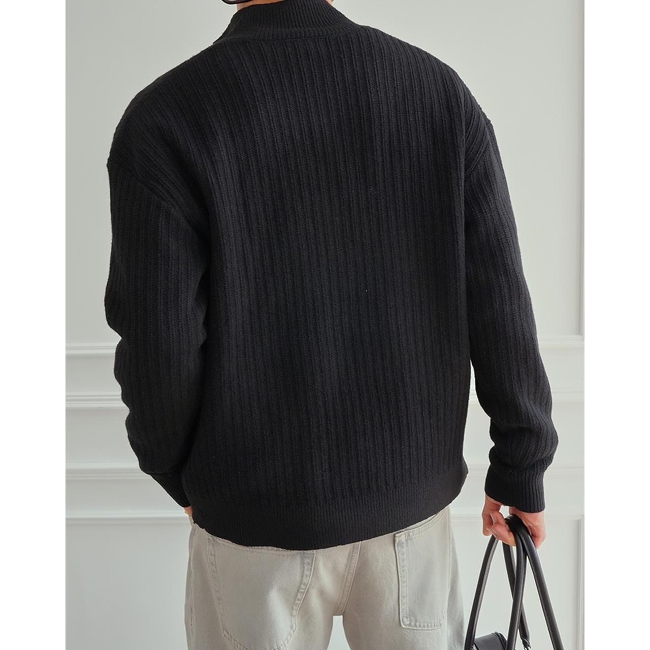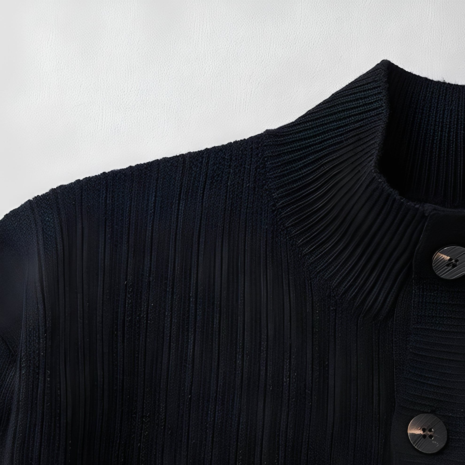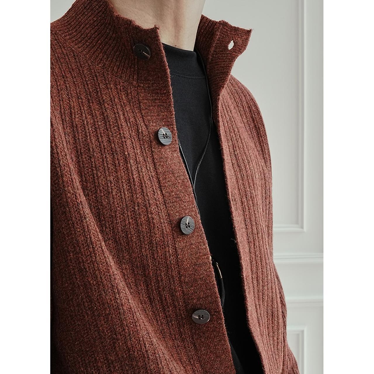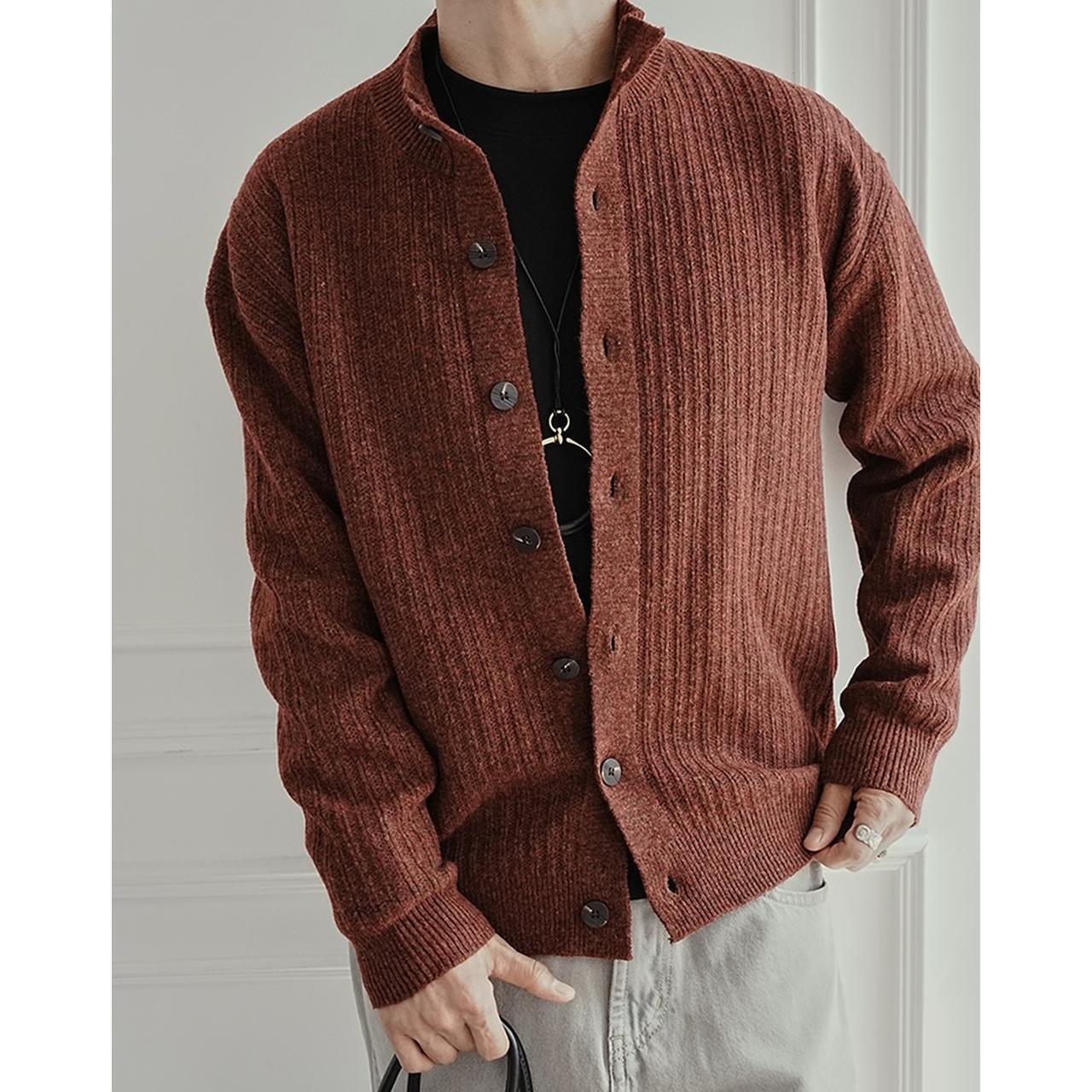 上品なリブデザインが特徴のスタンドカラーカーディガン。
