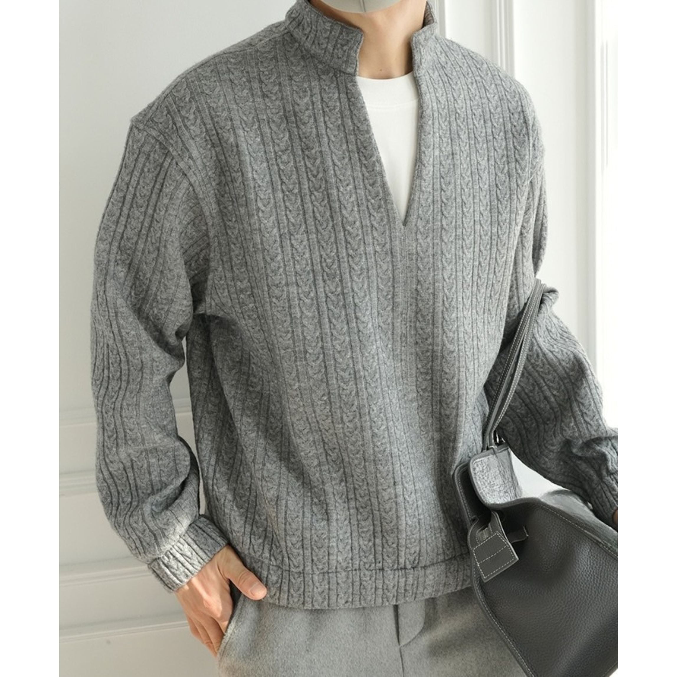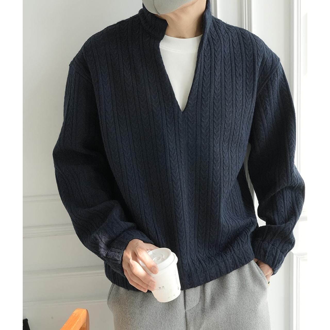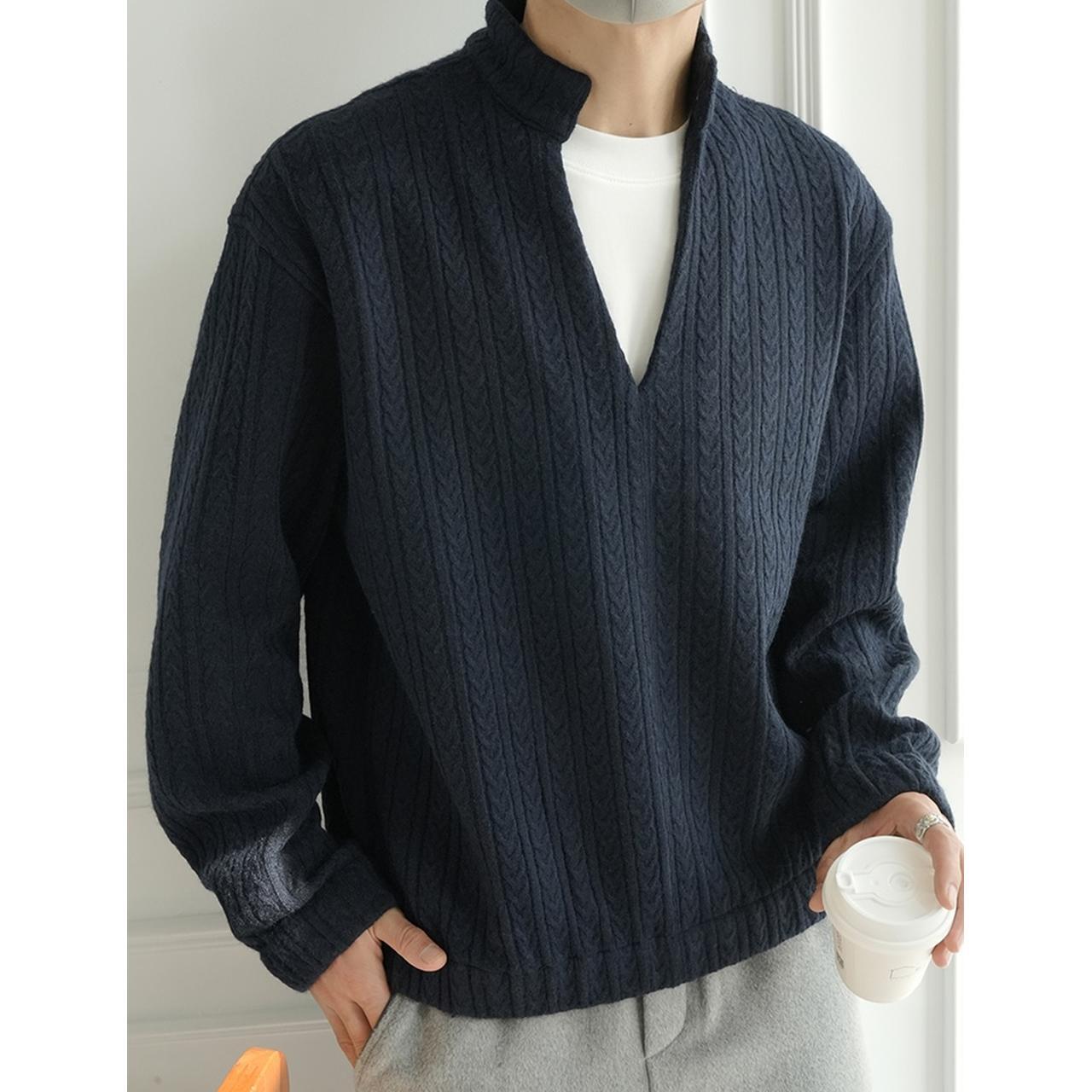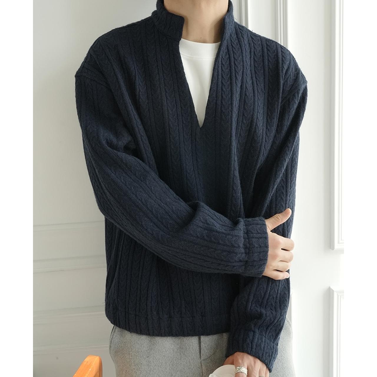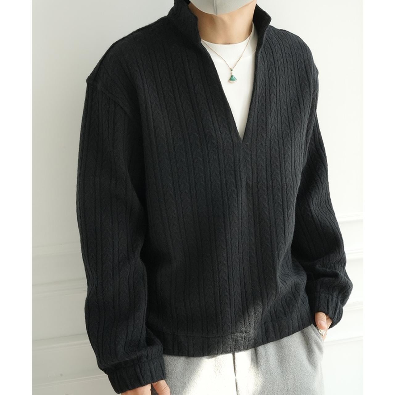 モダンスリットネックケーブルニット 1875
