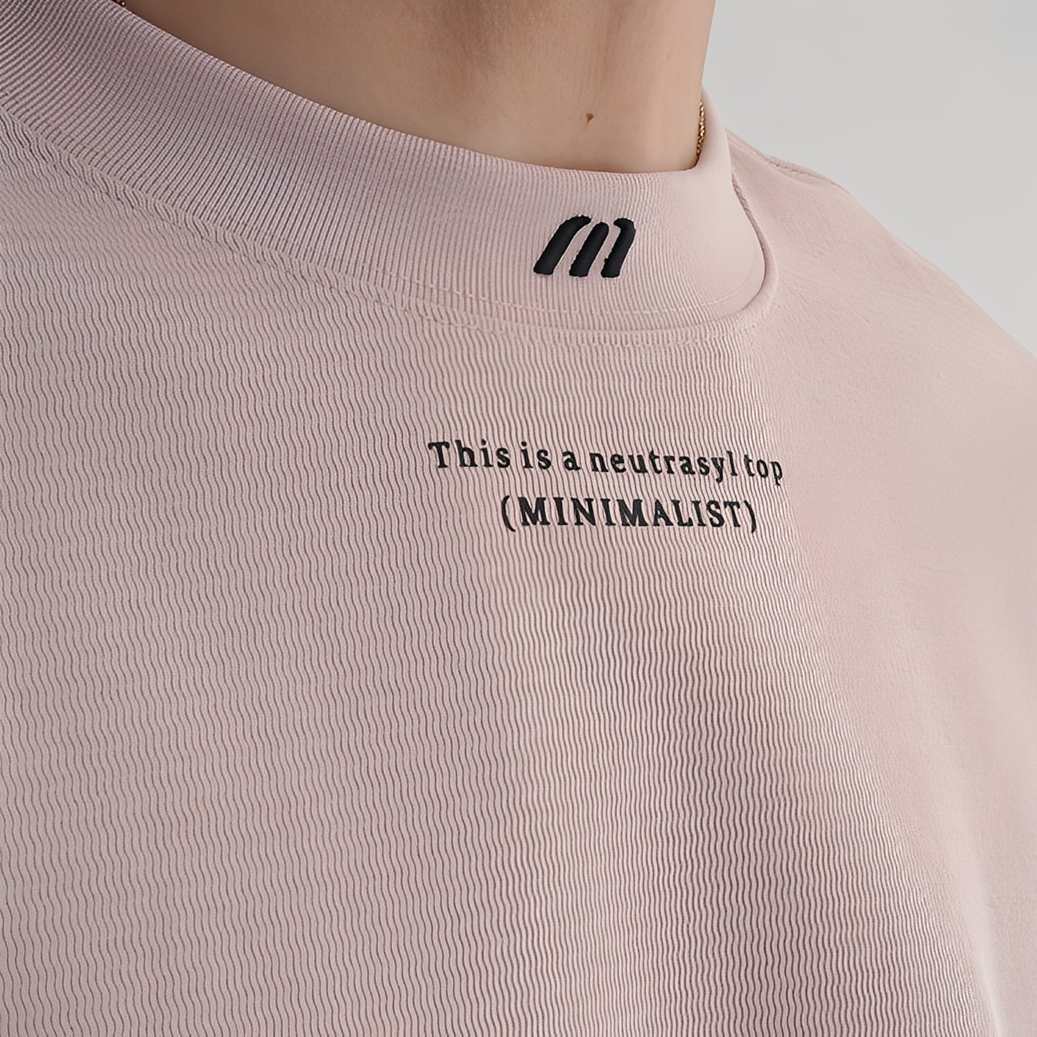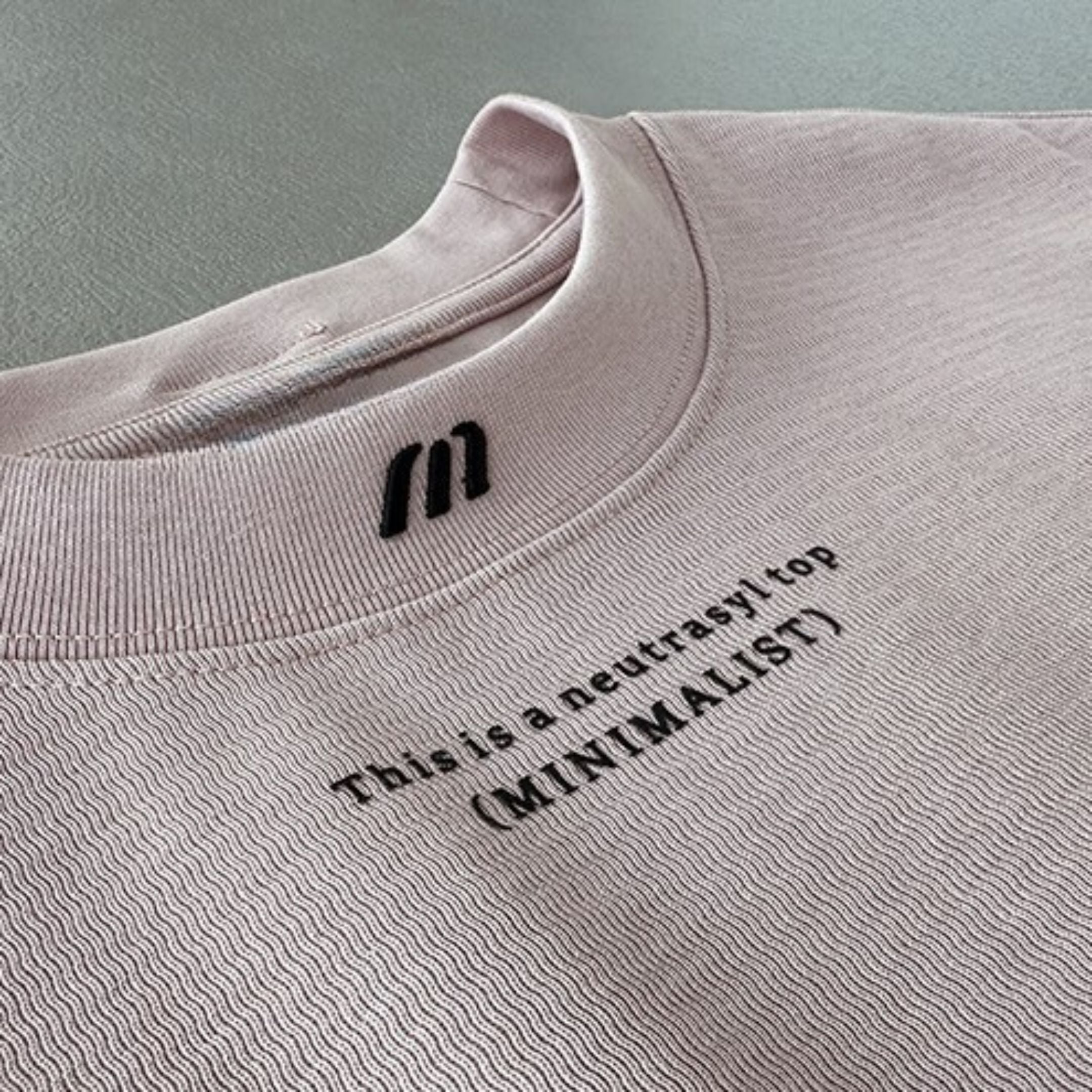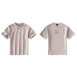 フロントとバックに英字テキストをプリントしたデザインTシャツ。