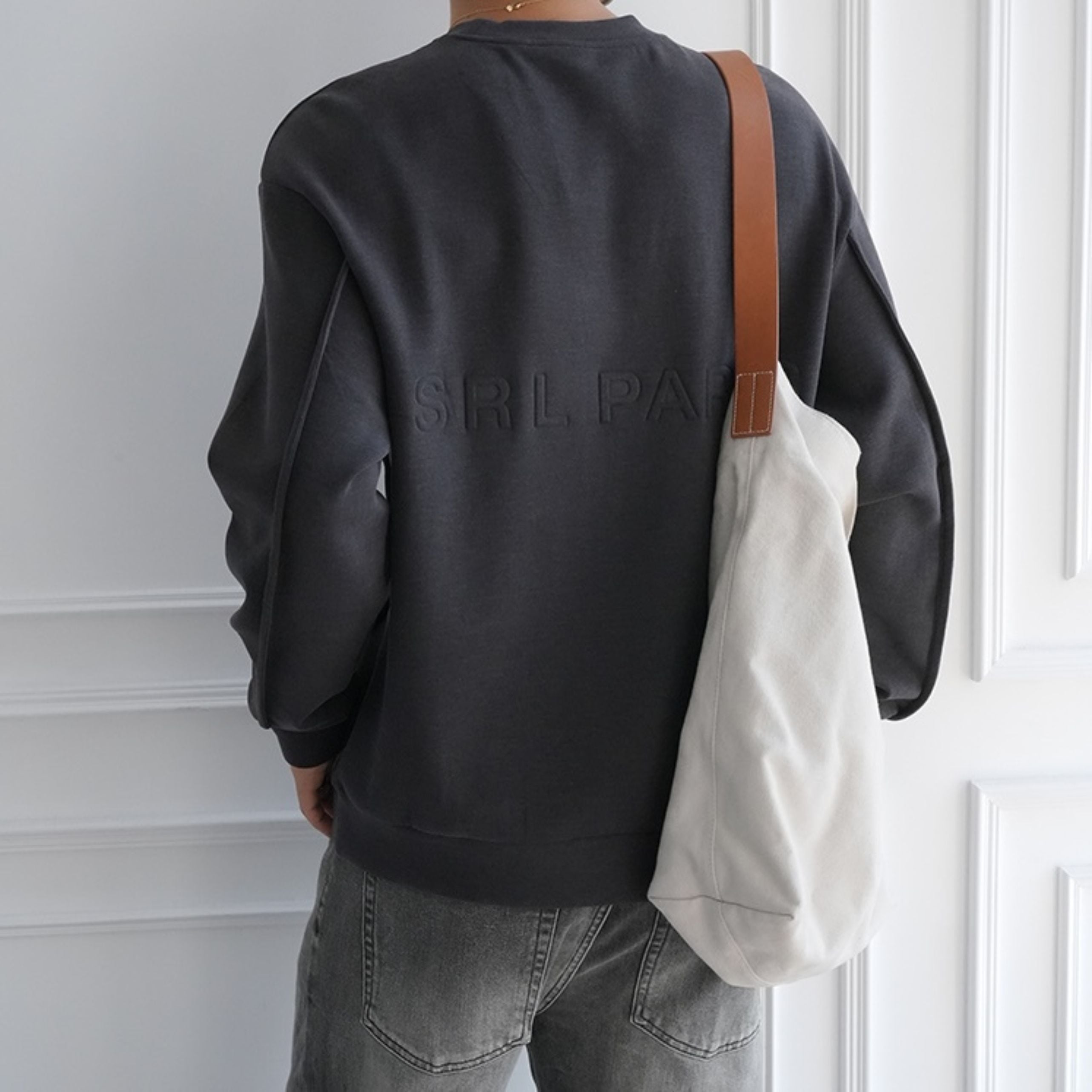 背面に施された立体的なエンボスロゴが印象的な一枚。