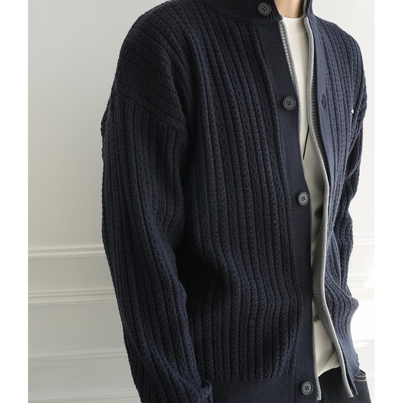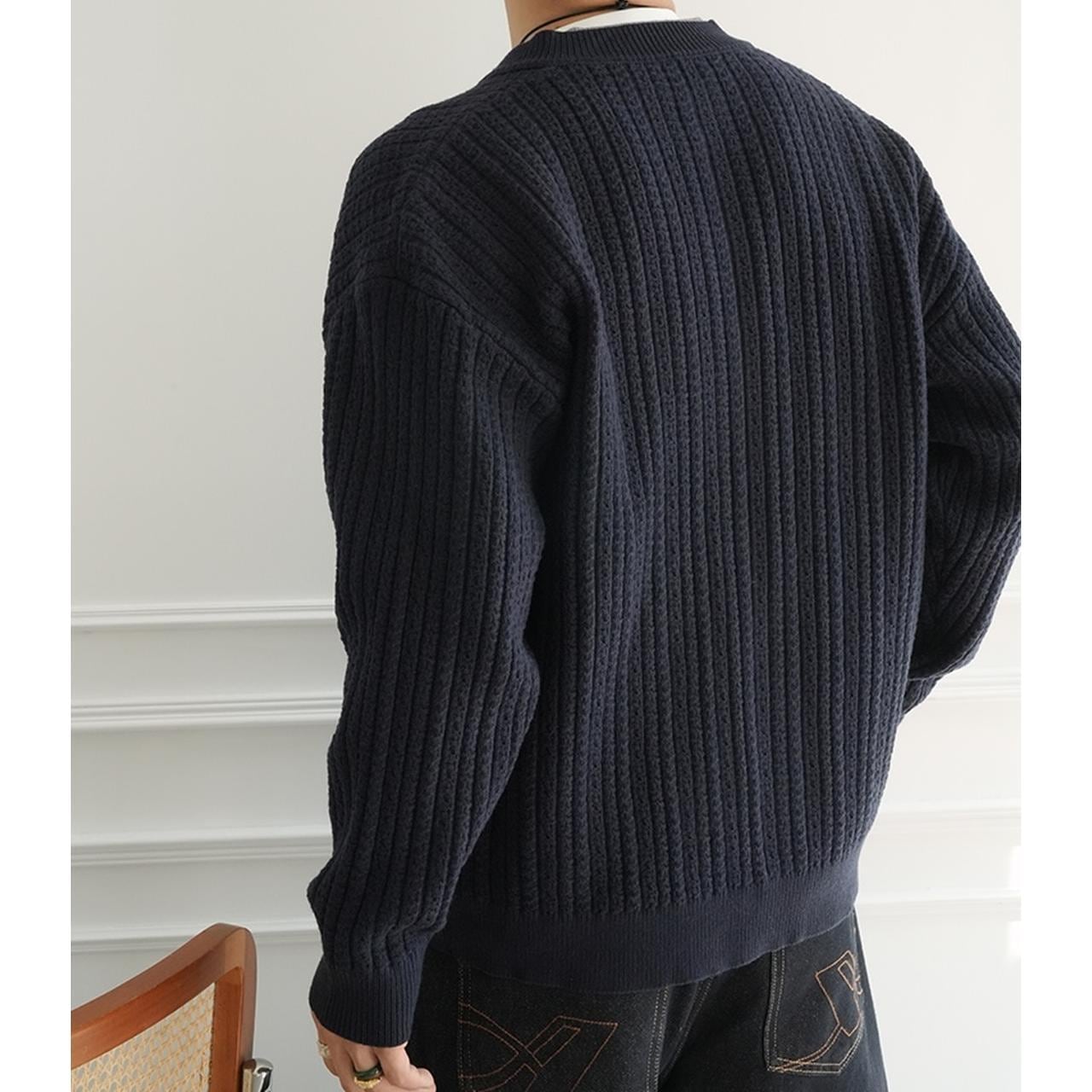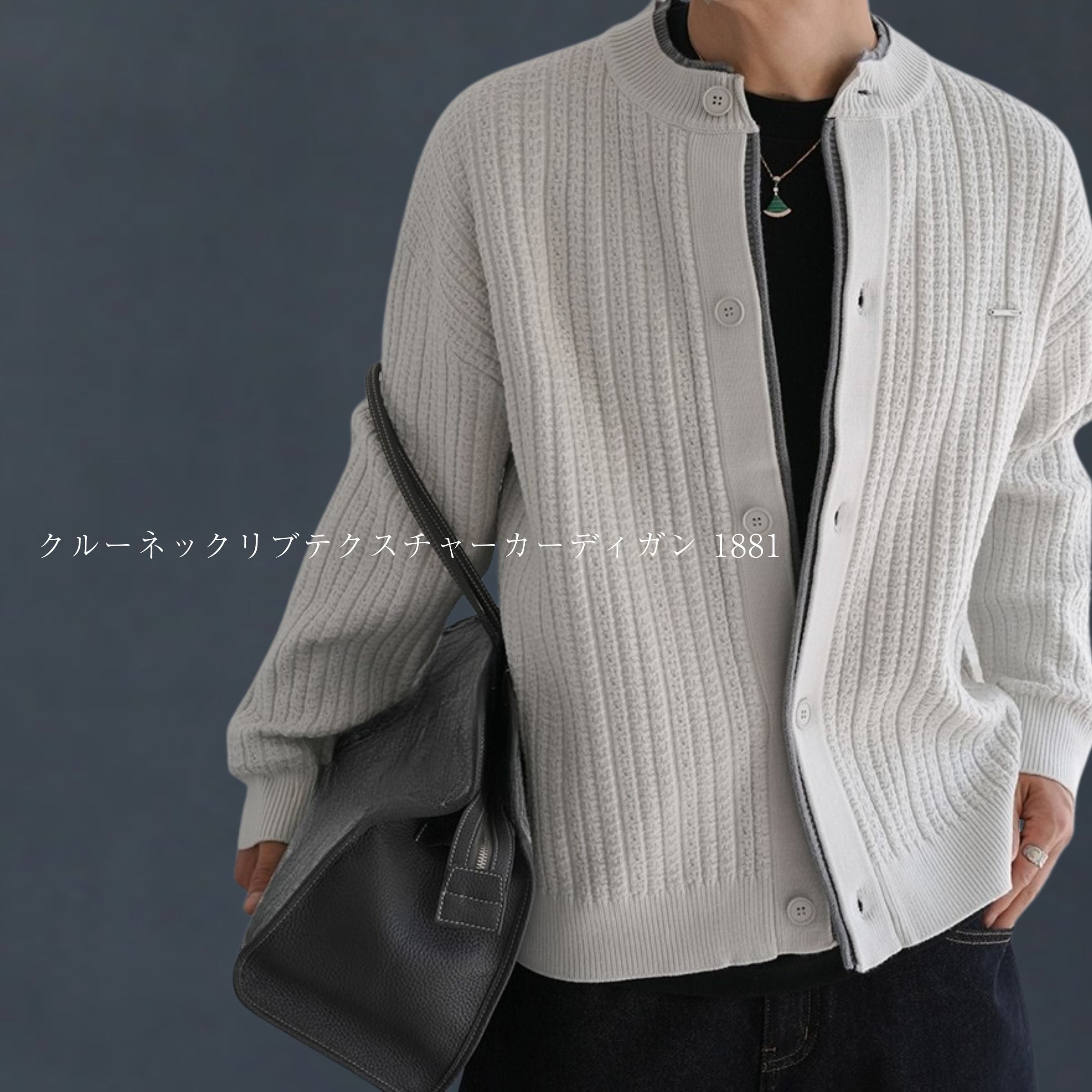 クルーネックリブテクスチャーカーディガン 1881