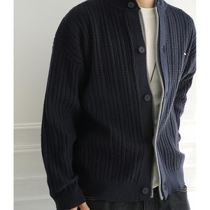 クルーネックのニットカーディガン。