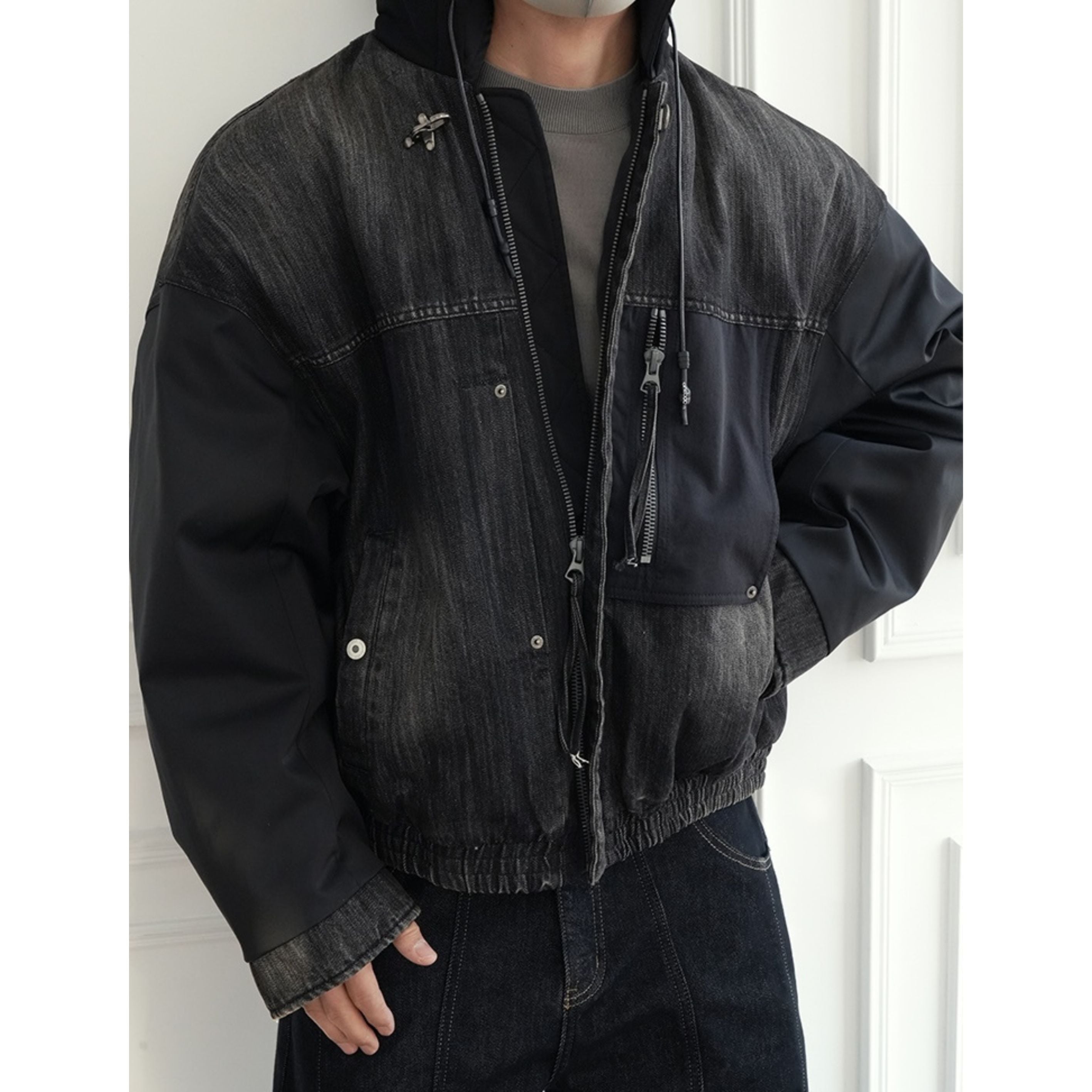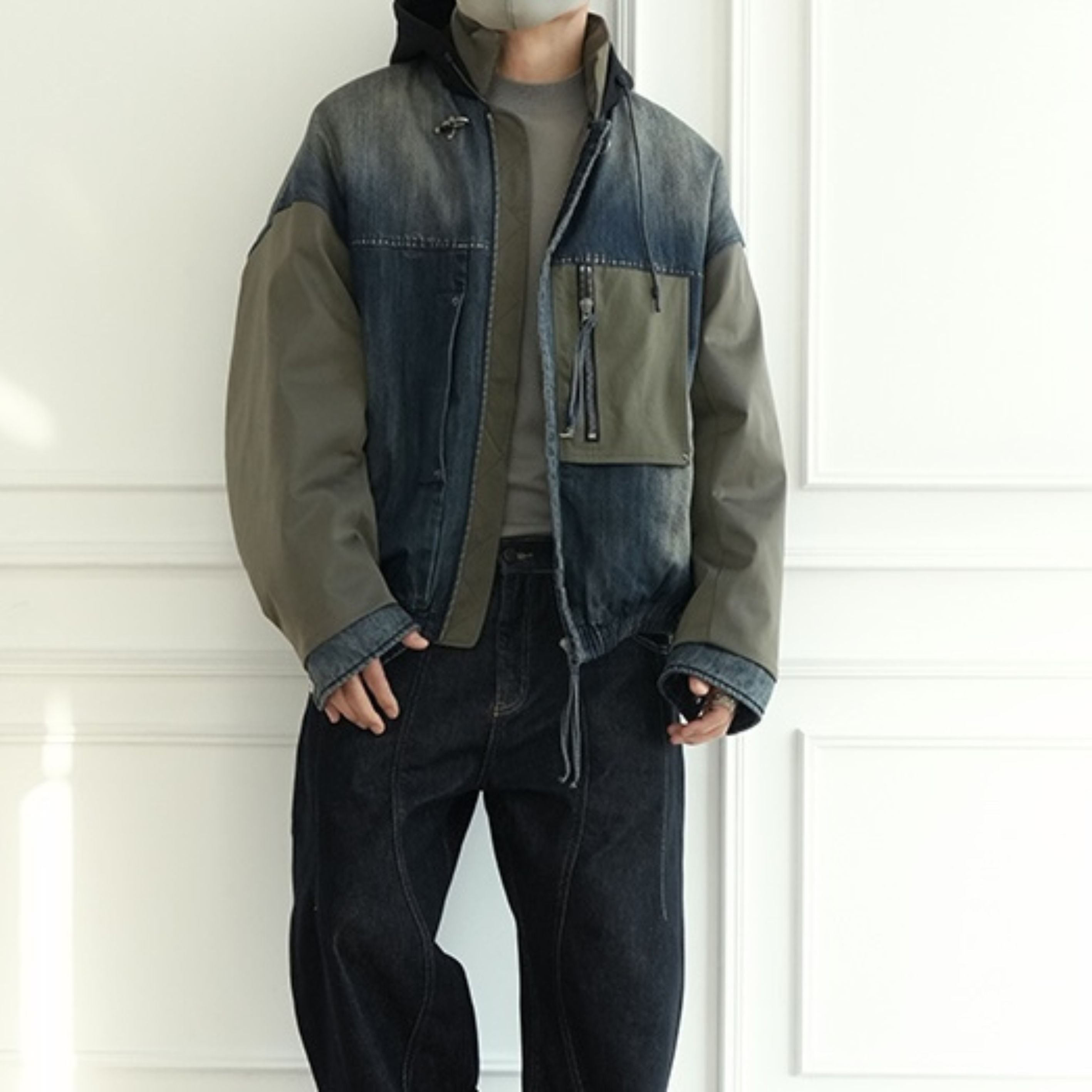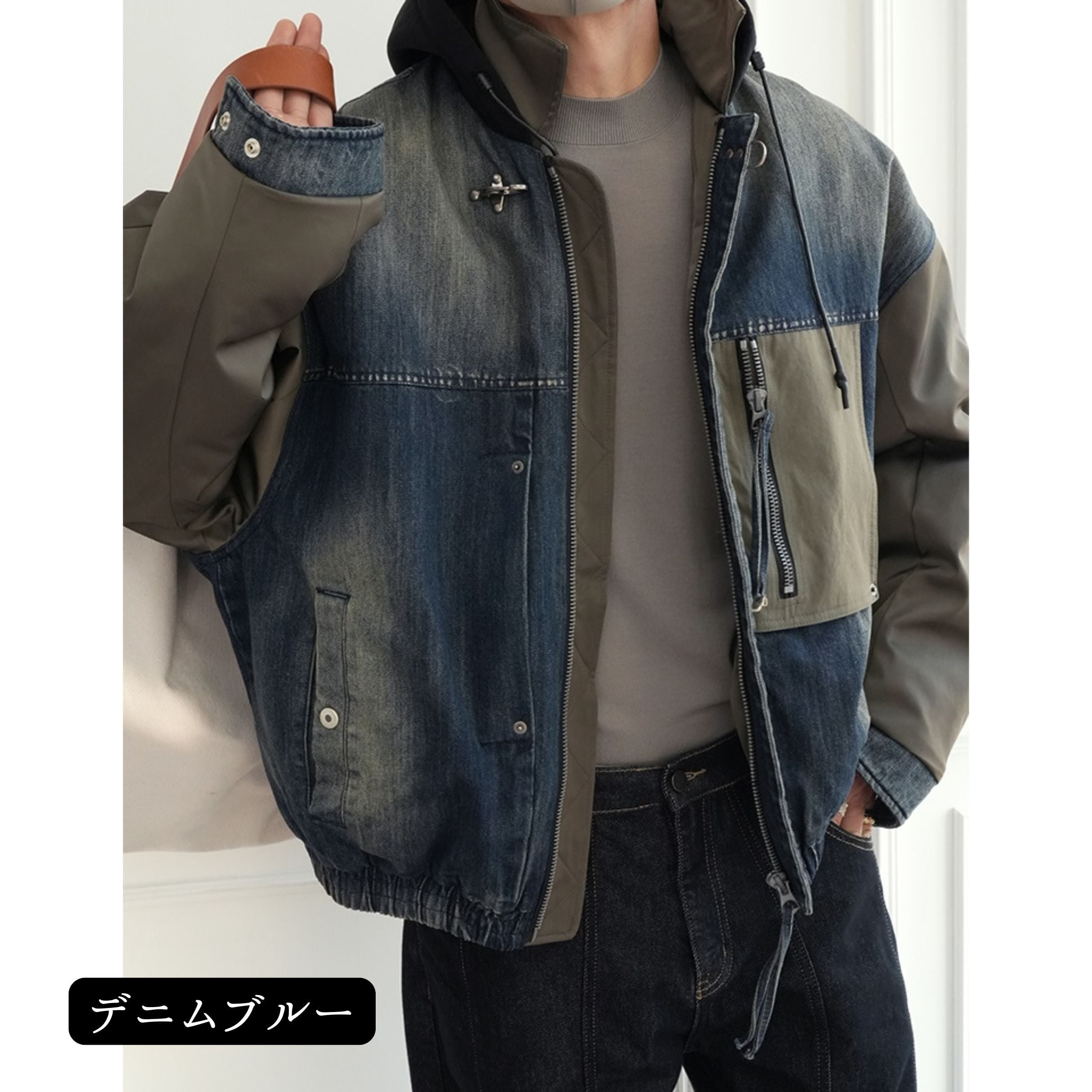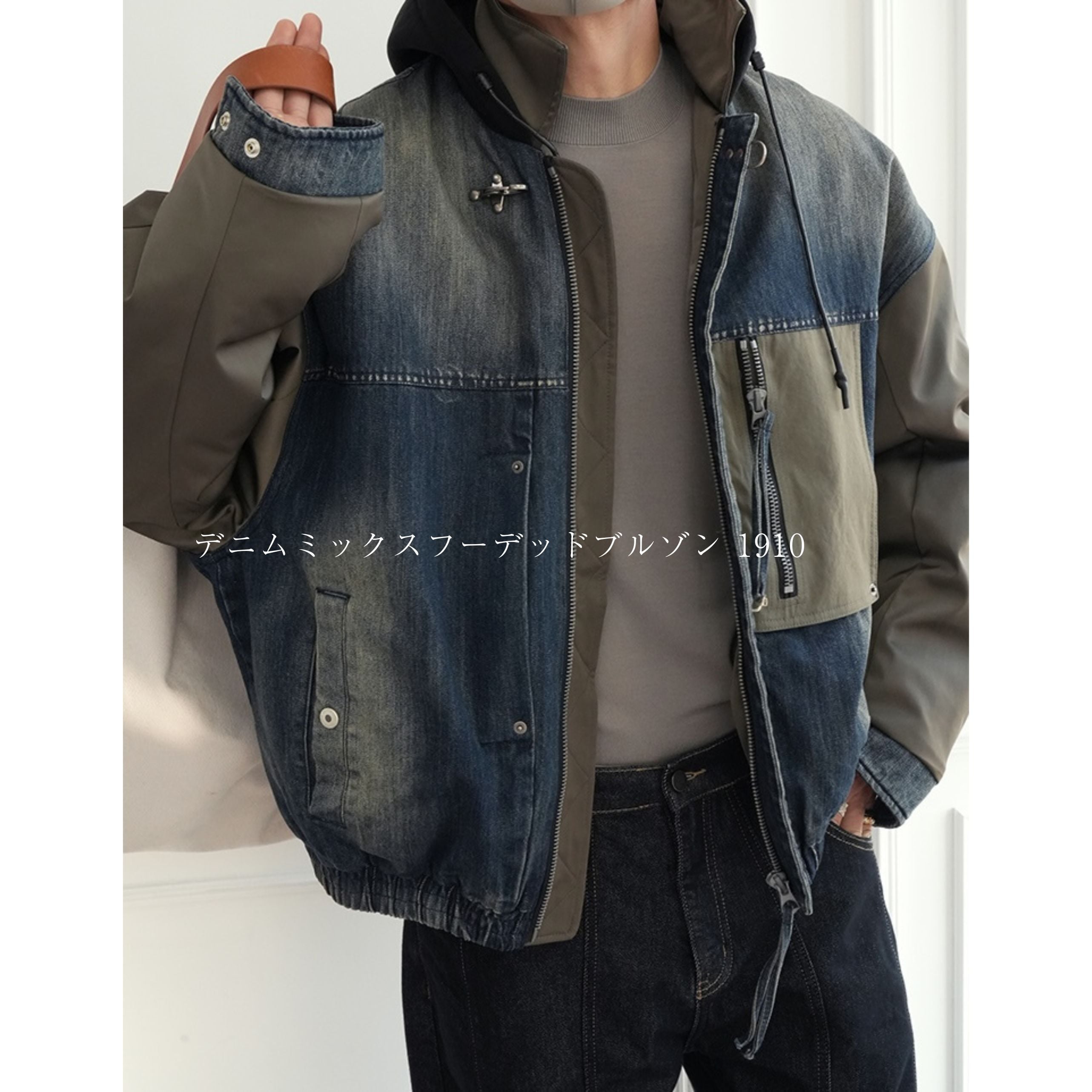 デニムミックスフーデッドブルゾン 1910