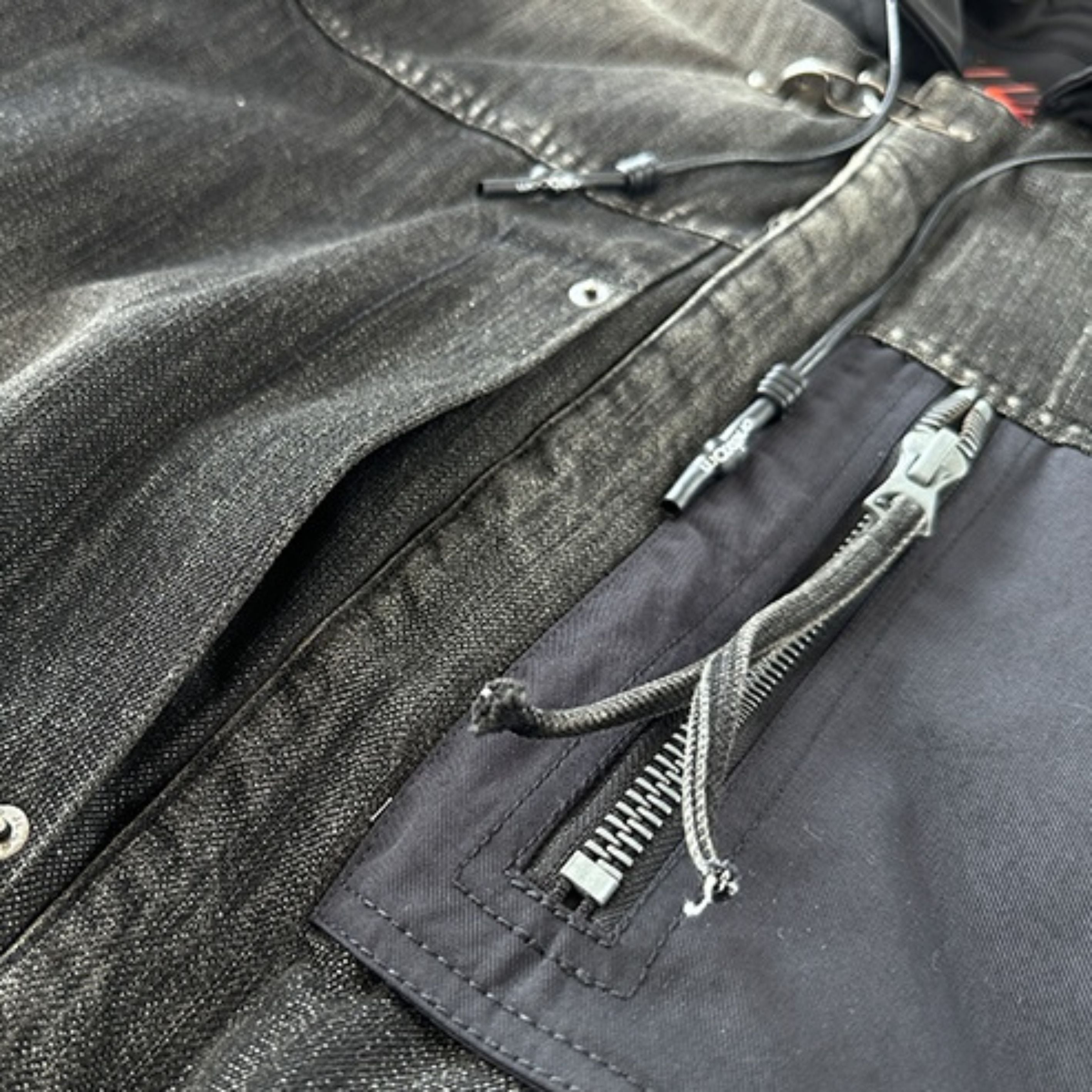 異素材ミックスの個性際立つフーデッドブルゾン。