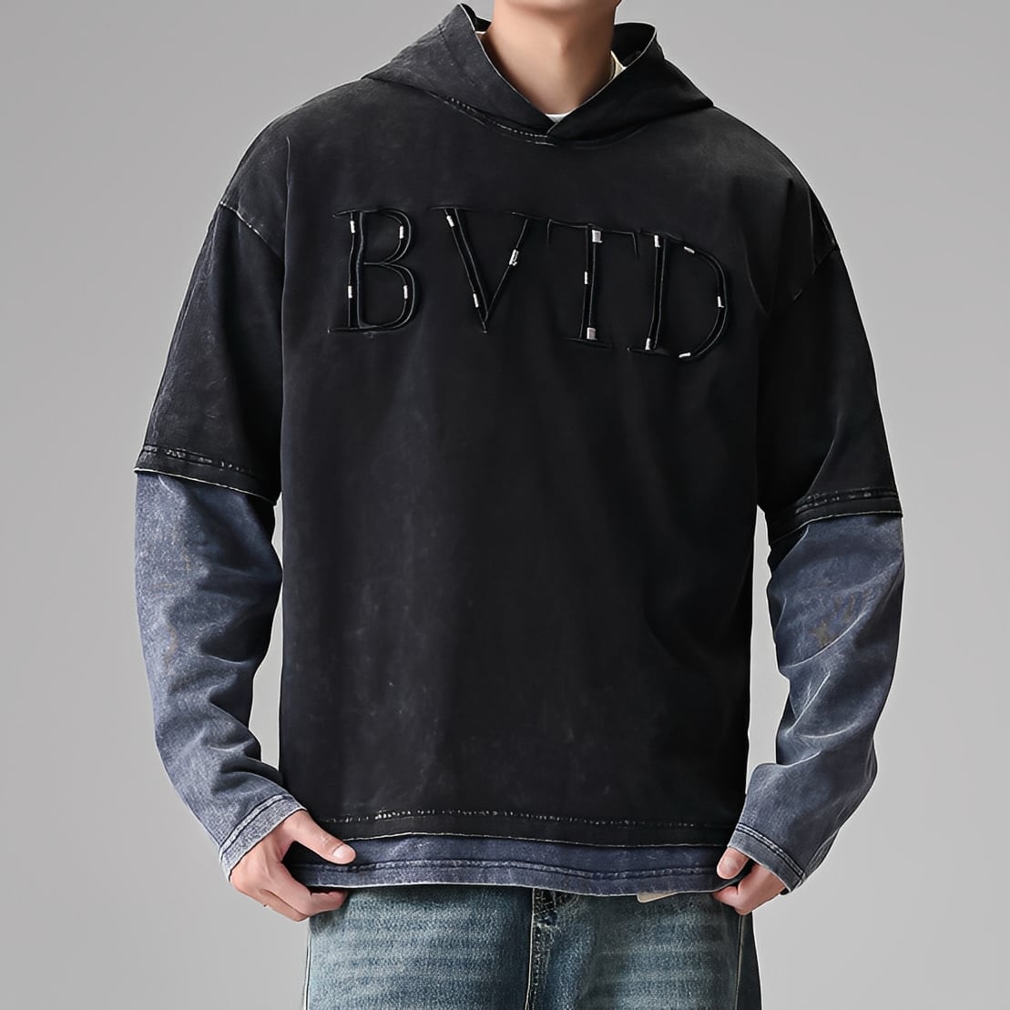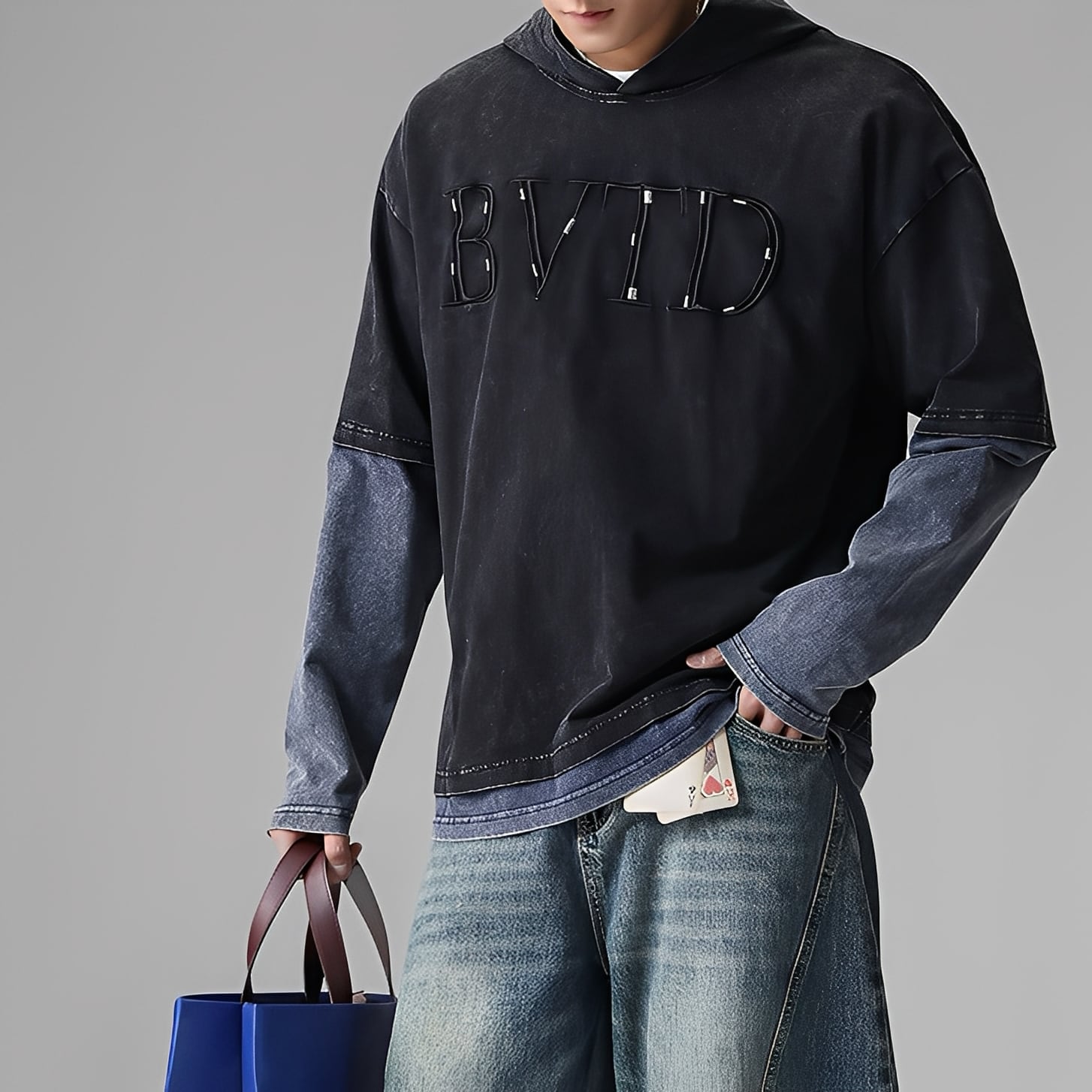 重ね着風のデザインで、1枚でスタイリングが決まります。