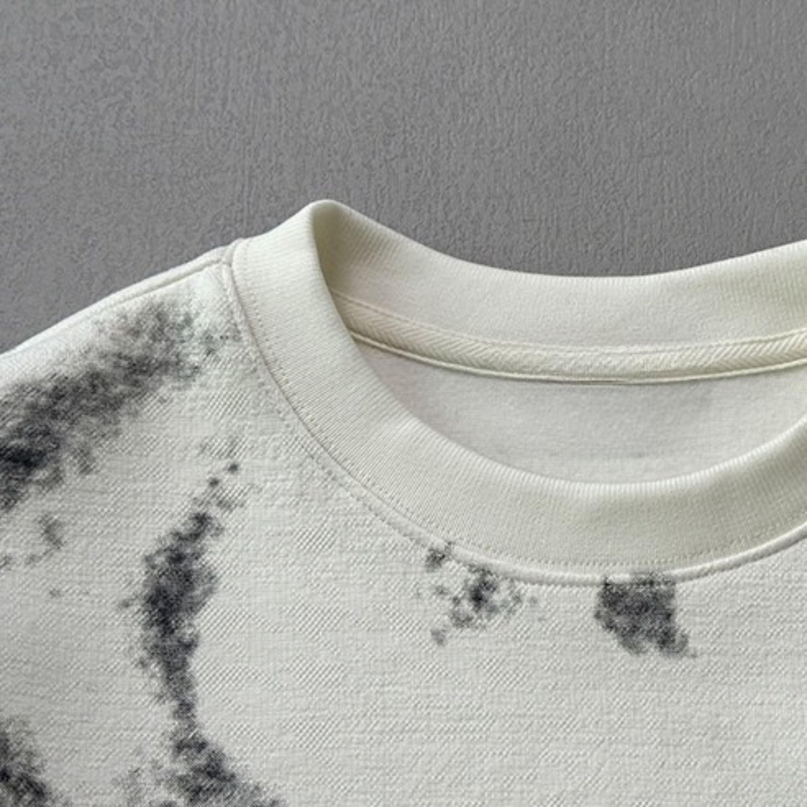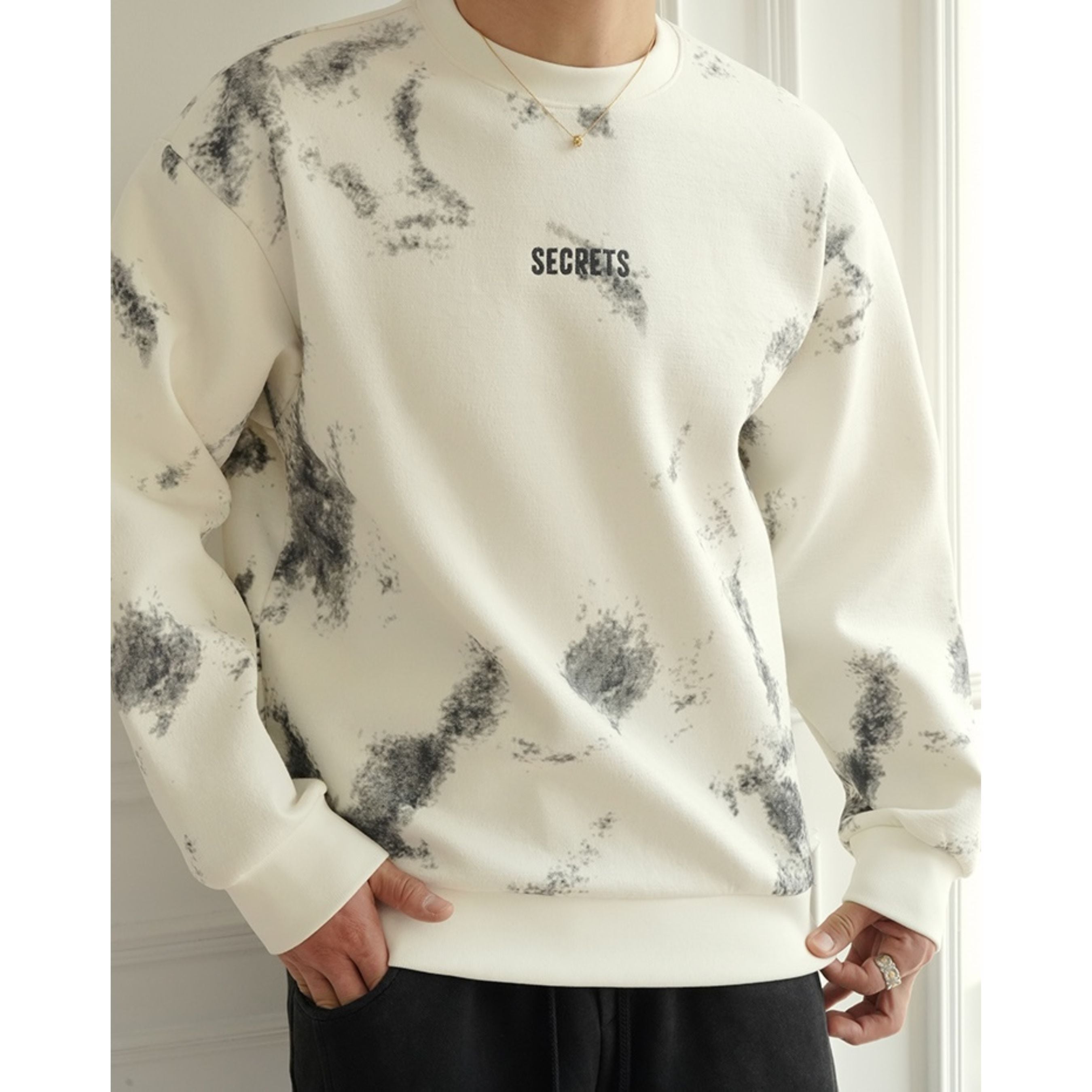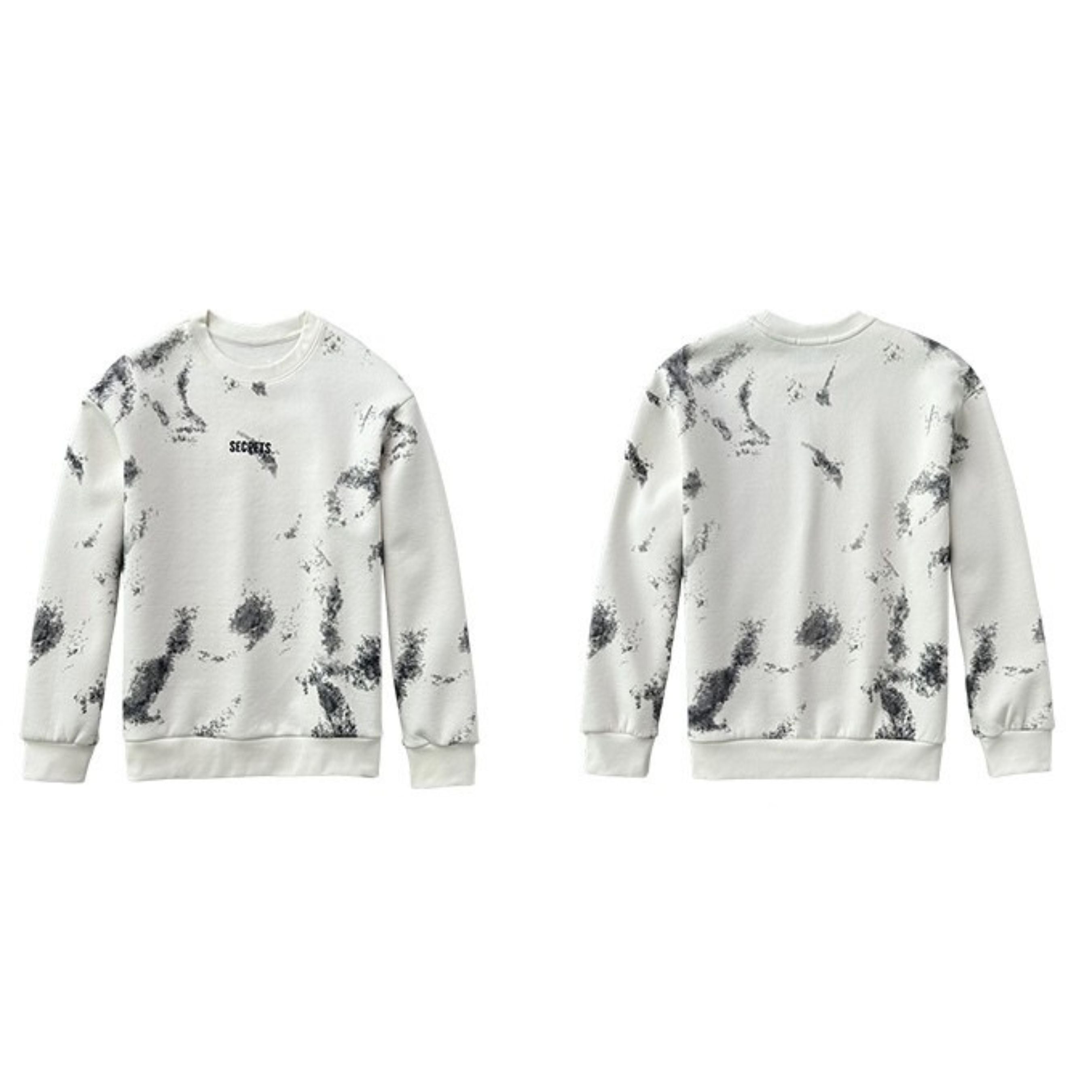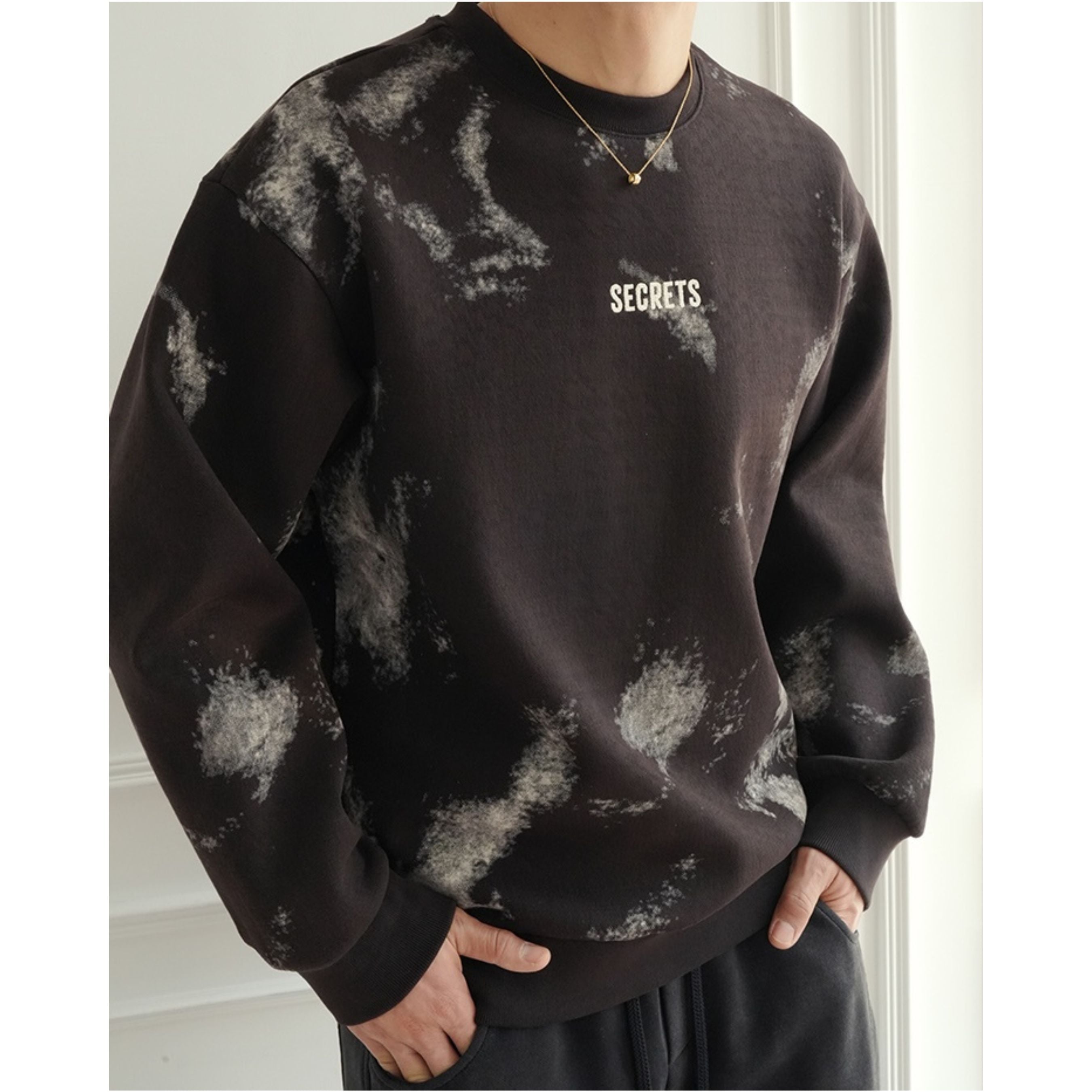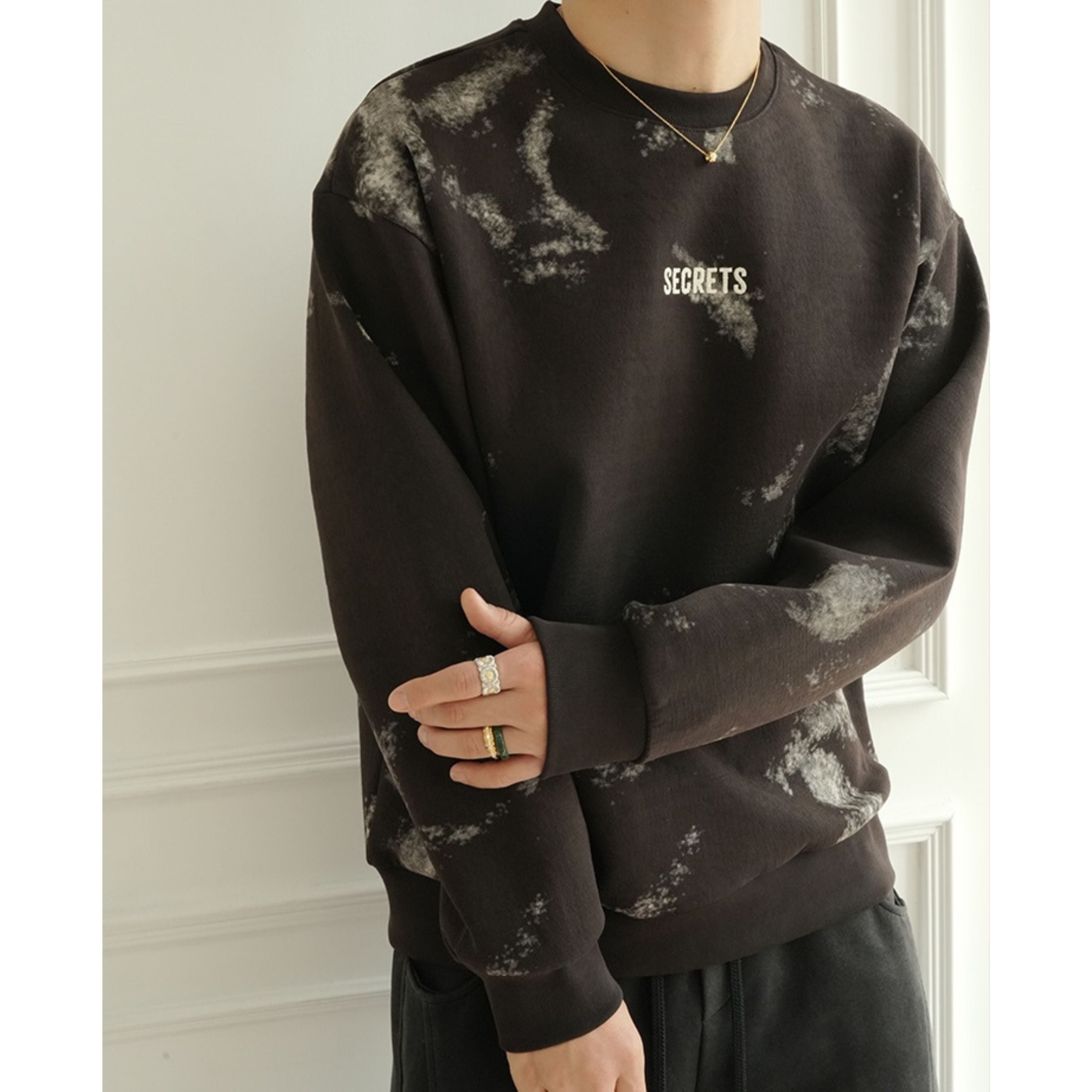 ヴィンテージ感漂うブリーチ風デザインが印象的なクルーネックスウェット。