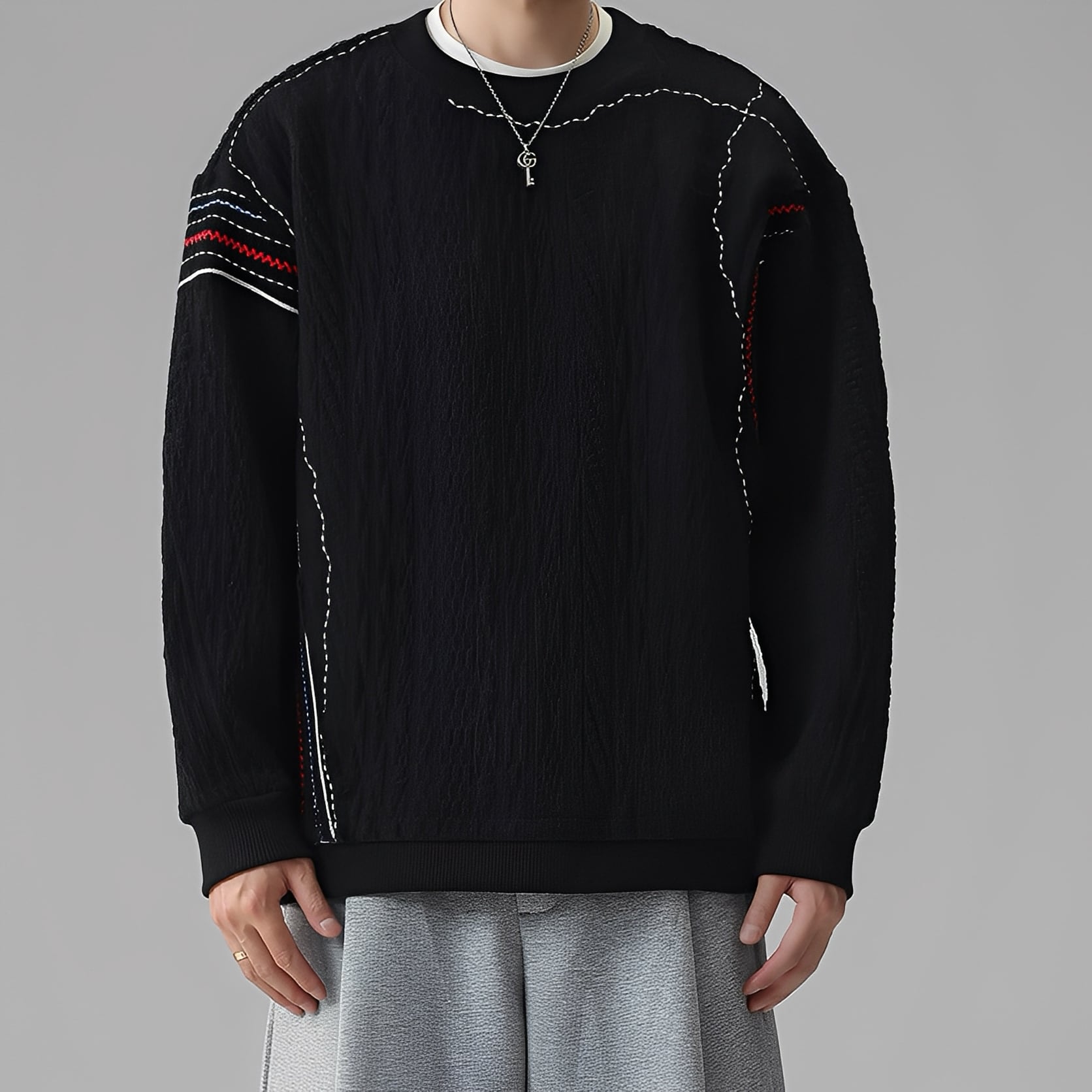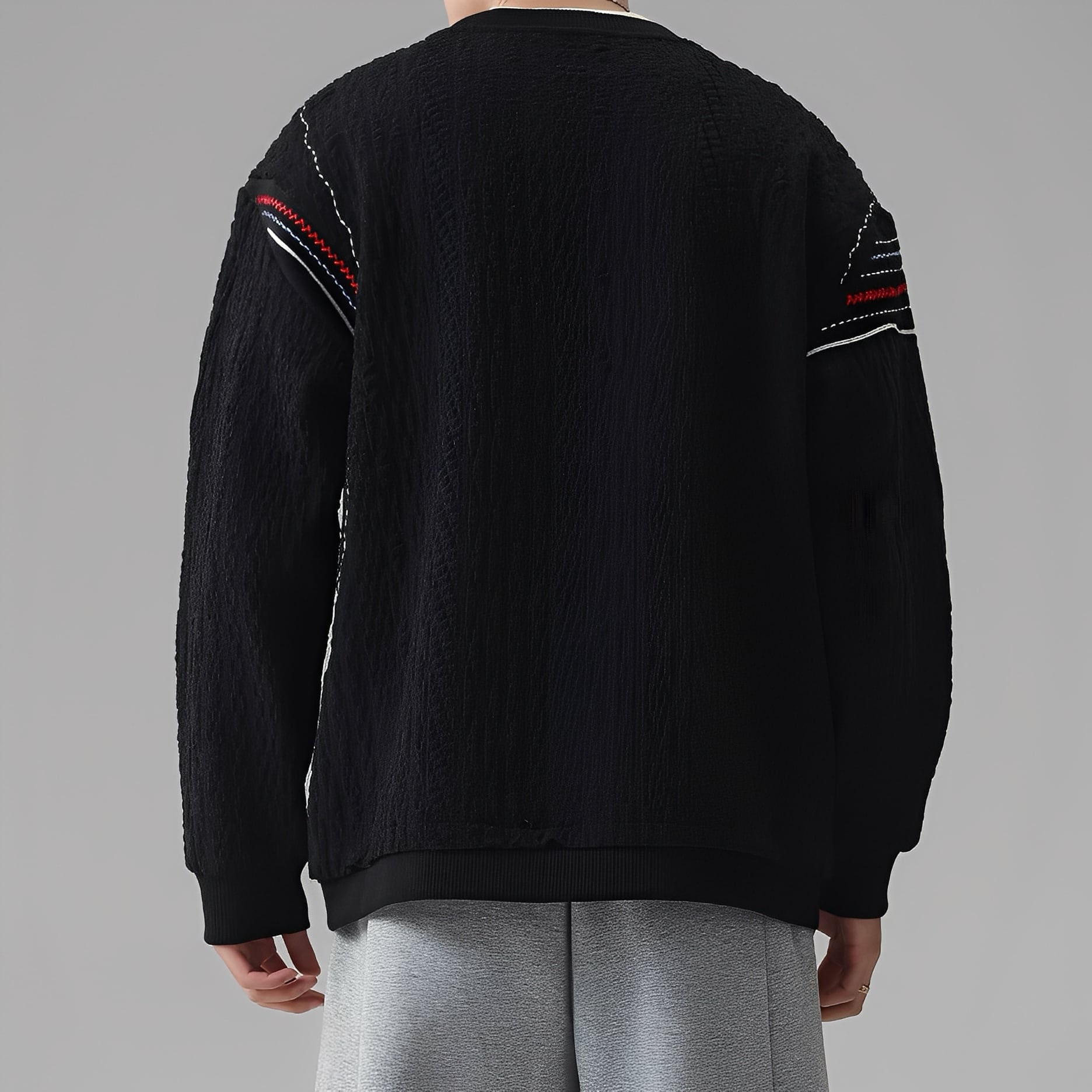 ホワイト・レッド・ブルーのステッチをあしらったデザインニット。