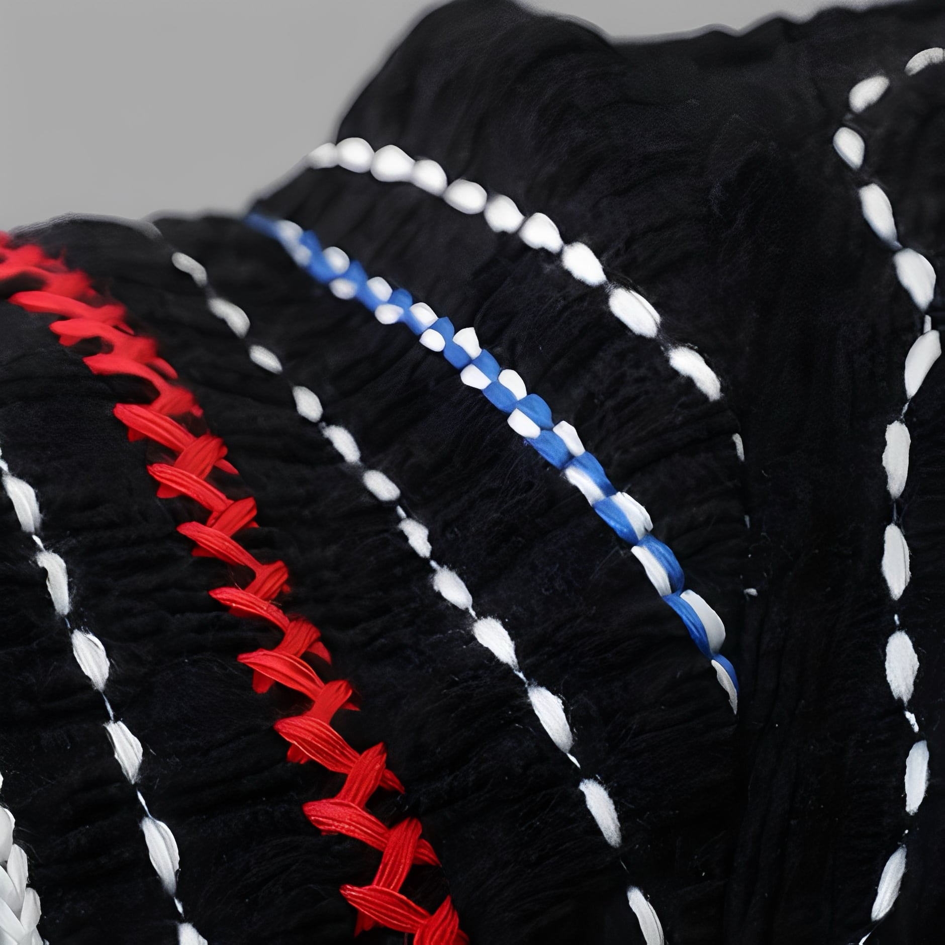 不規則なステッチワークが個性とモード感を兼ね備えた印象を与えます。