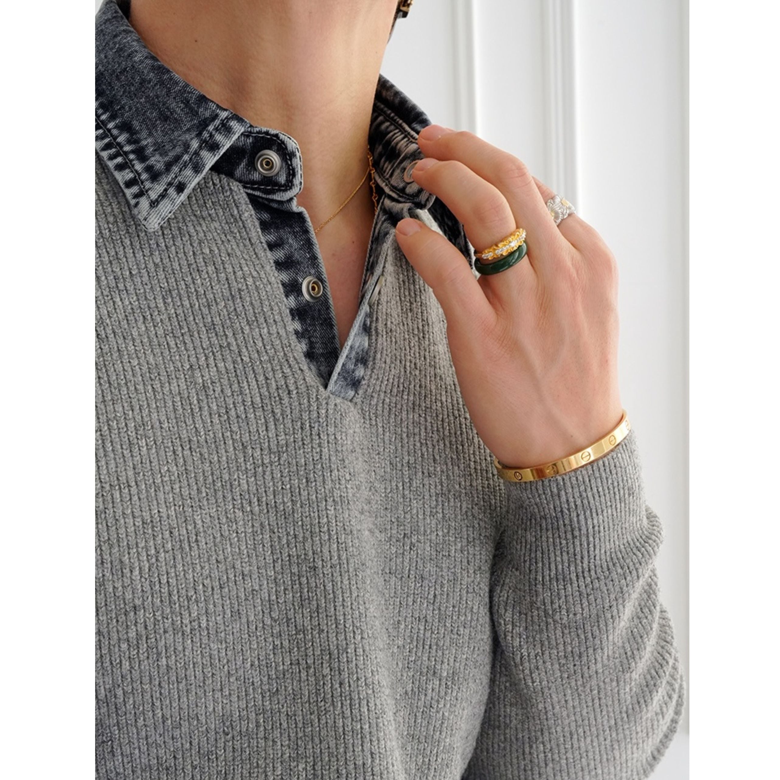 襟元のアクセントがコーデに立体感を生み、1枚でコーデが仕上がります。