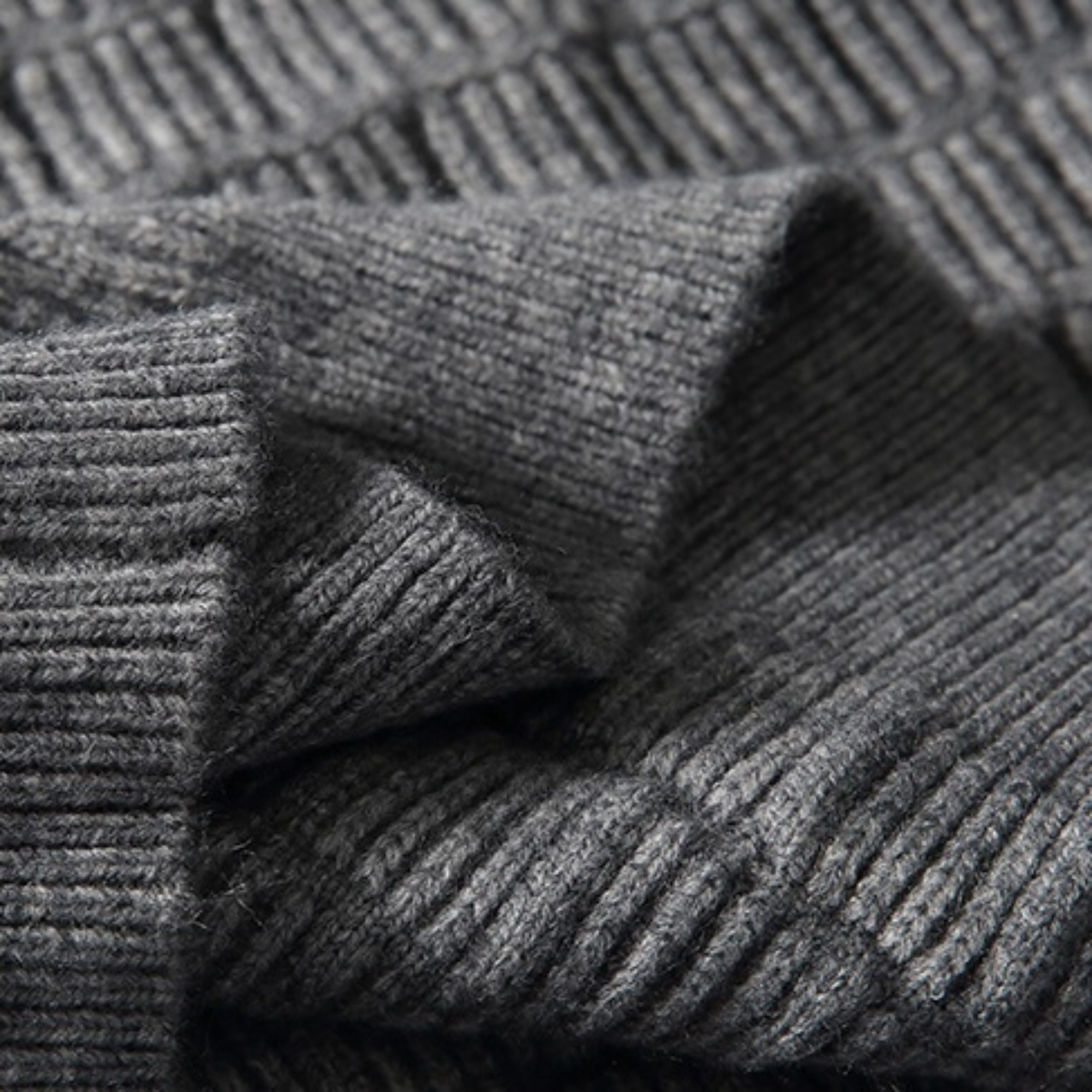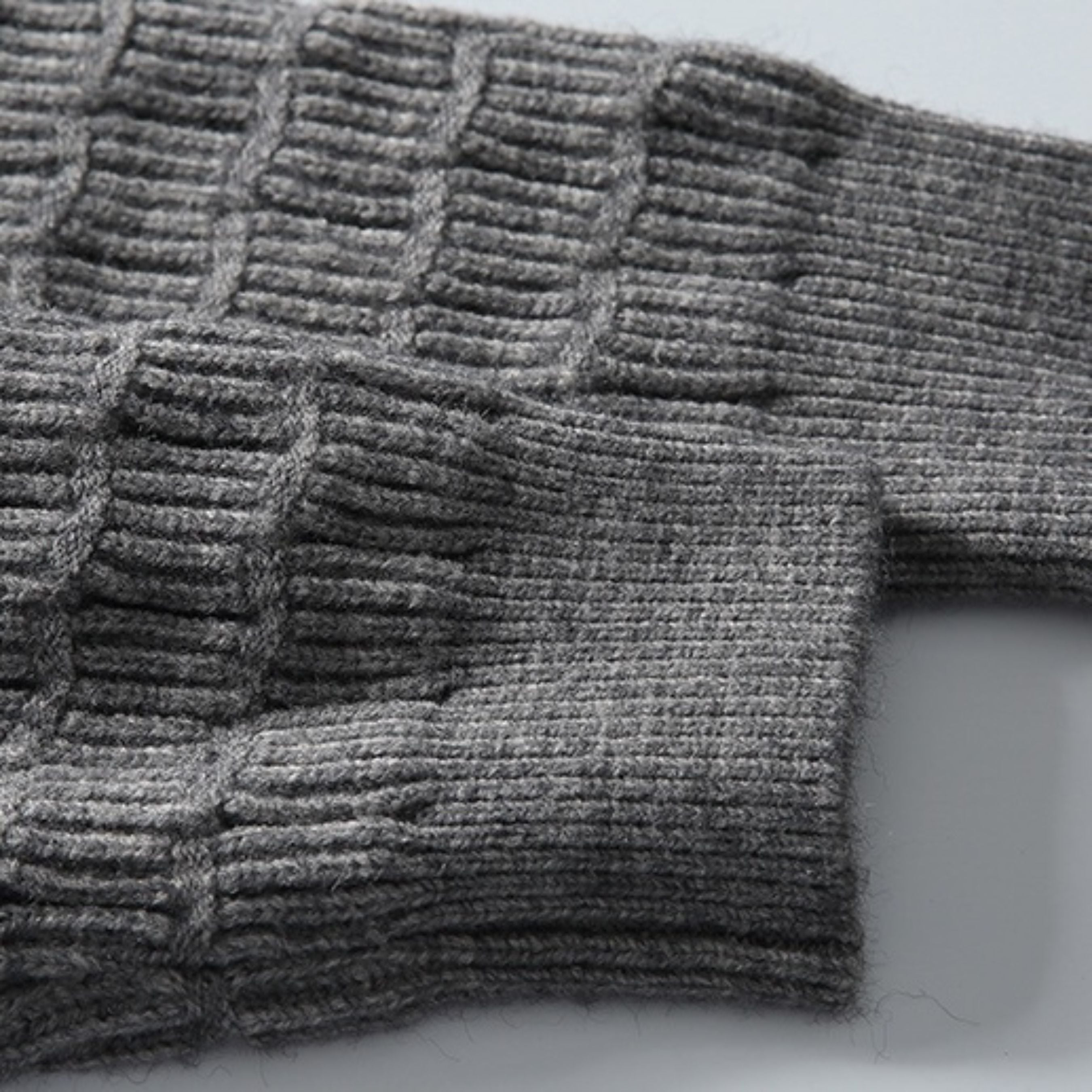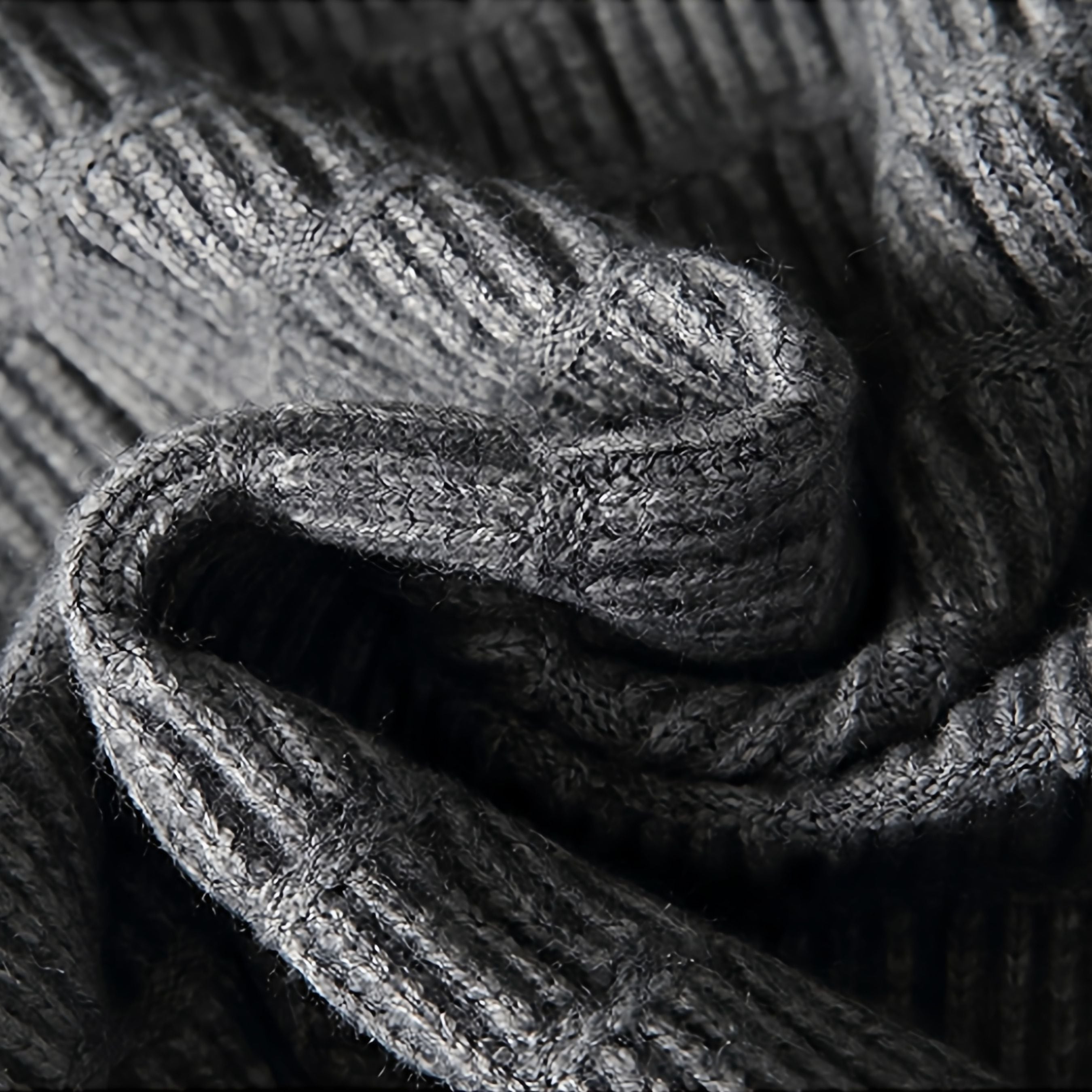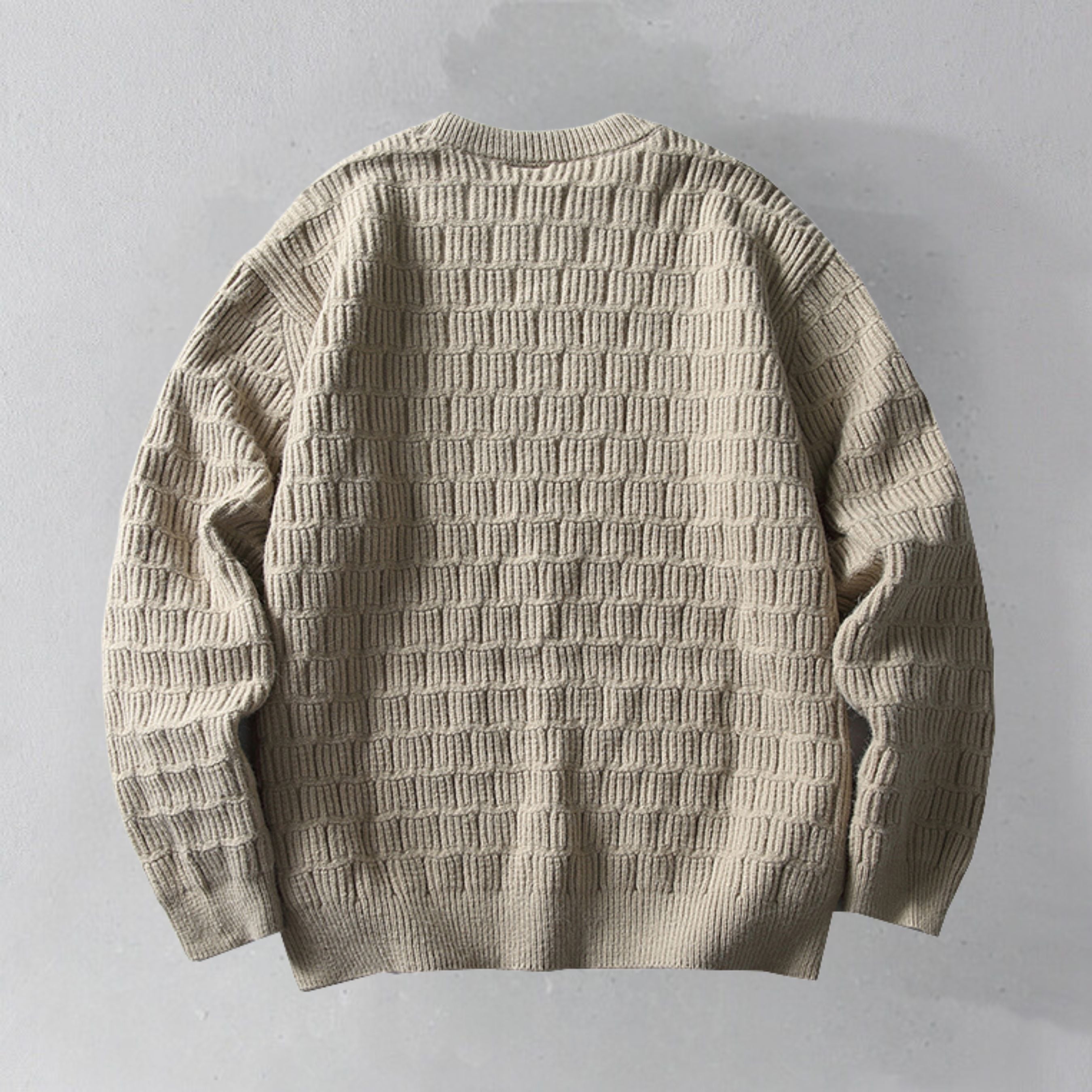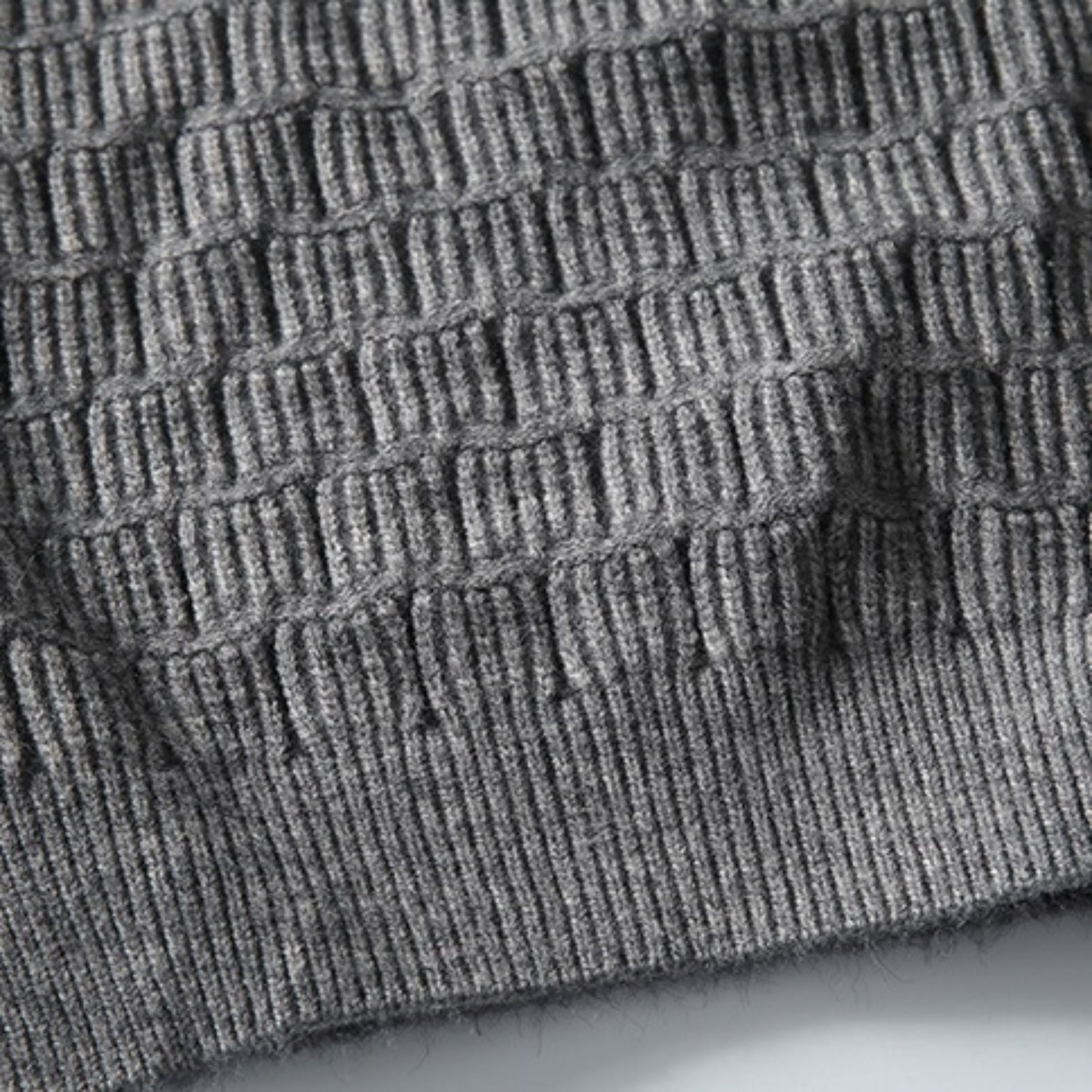 立体感のあるリブ編みのデザインが特徴的なクルーネックニット。