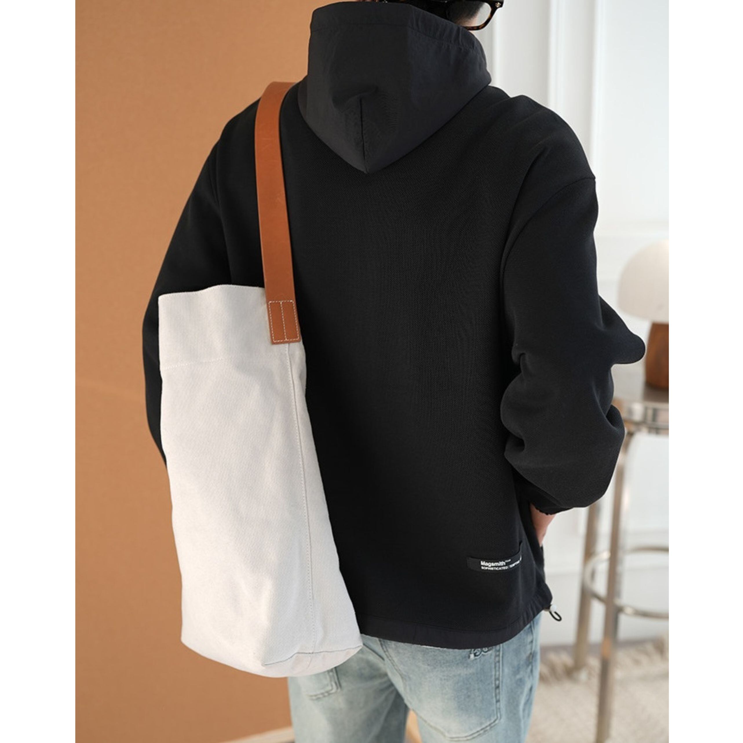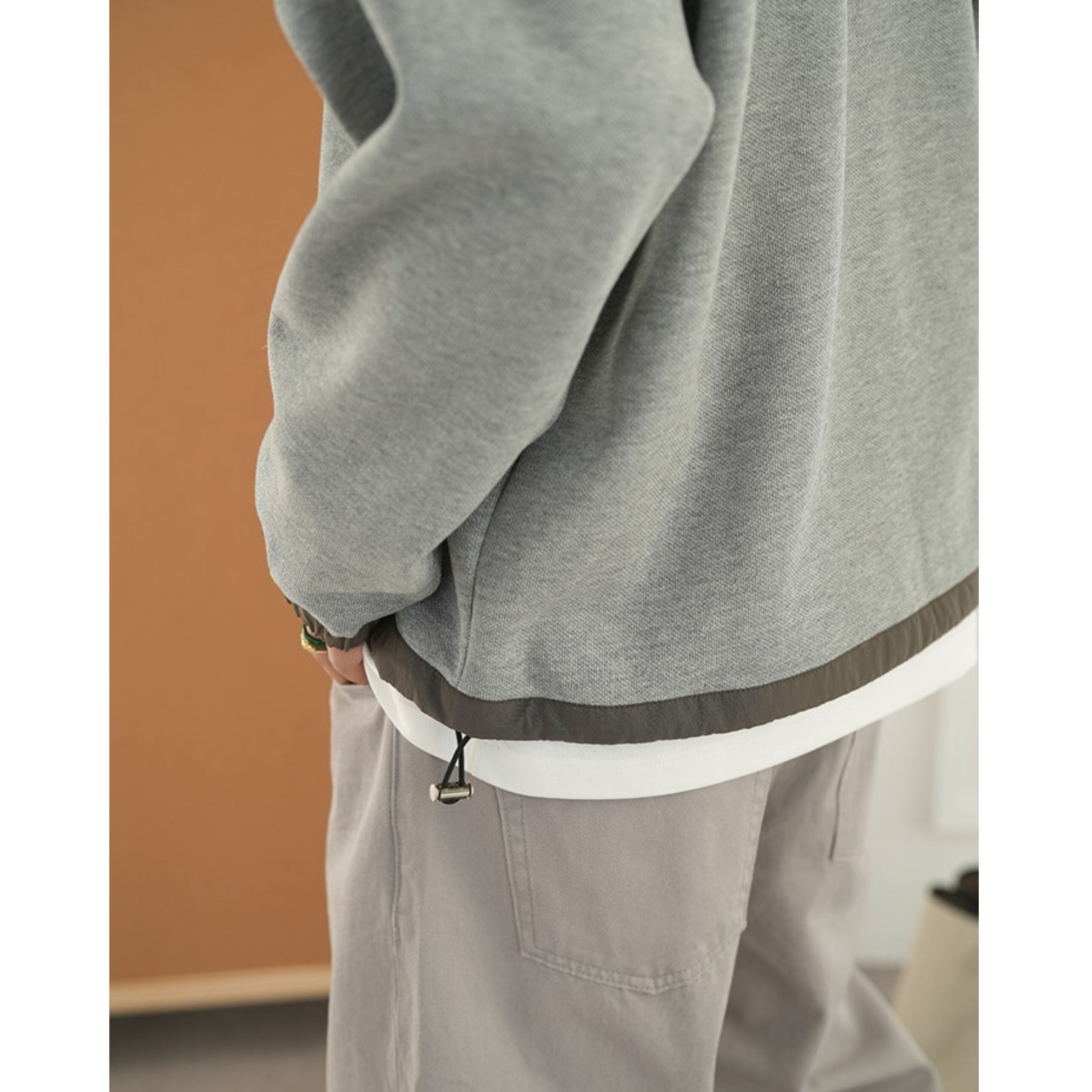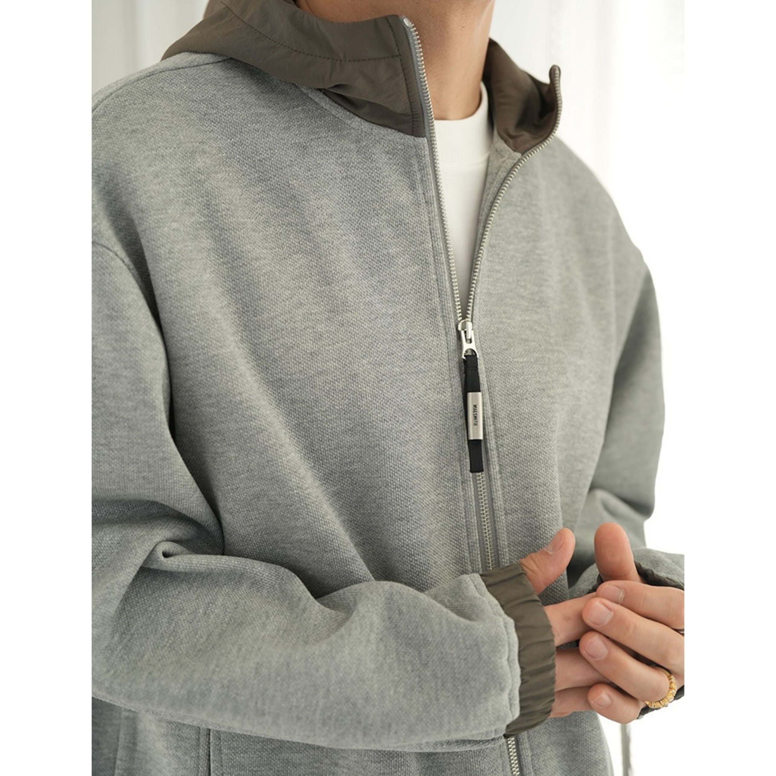 フードの配色が洗練されたアクセントをプラスする一枚。