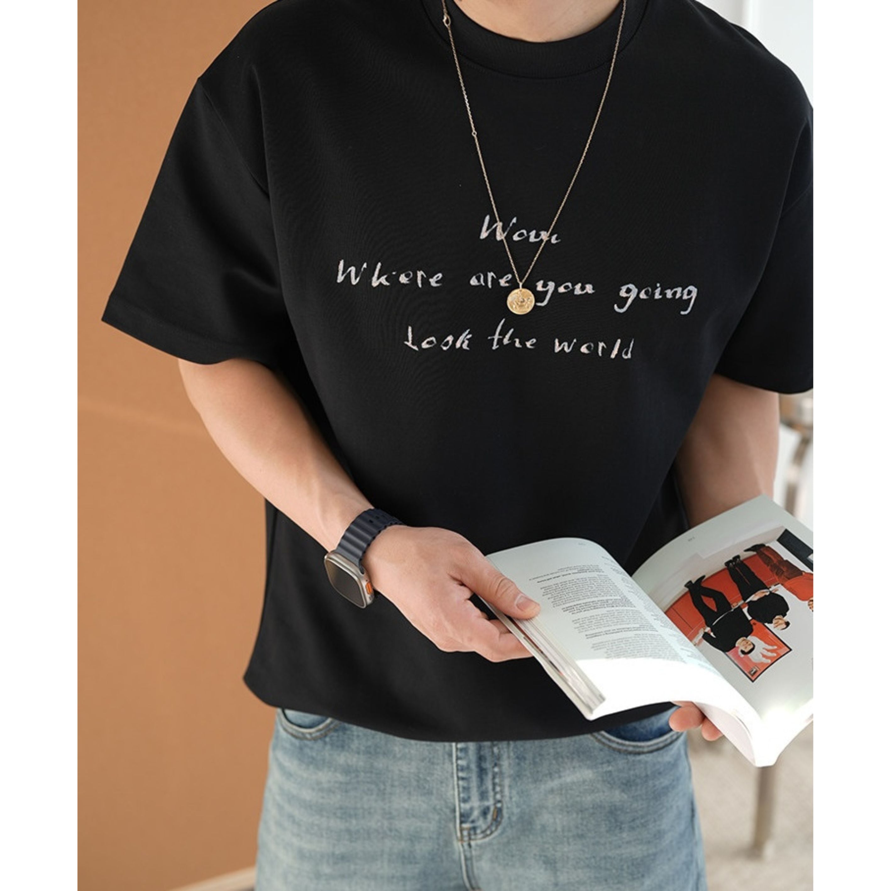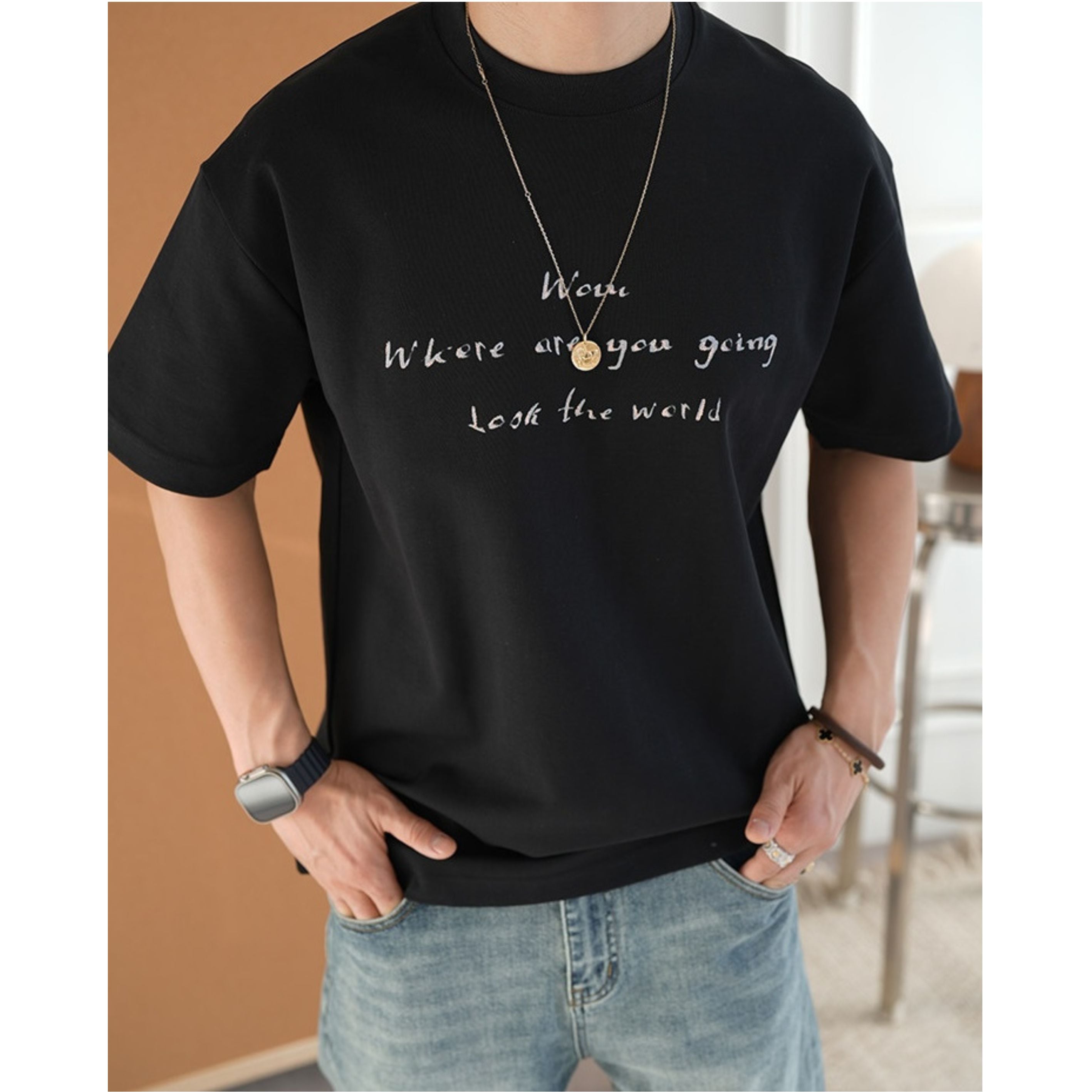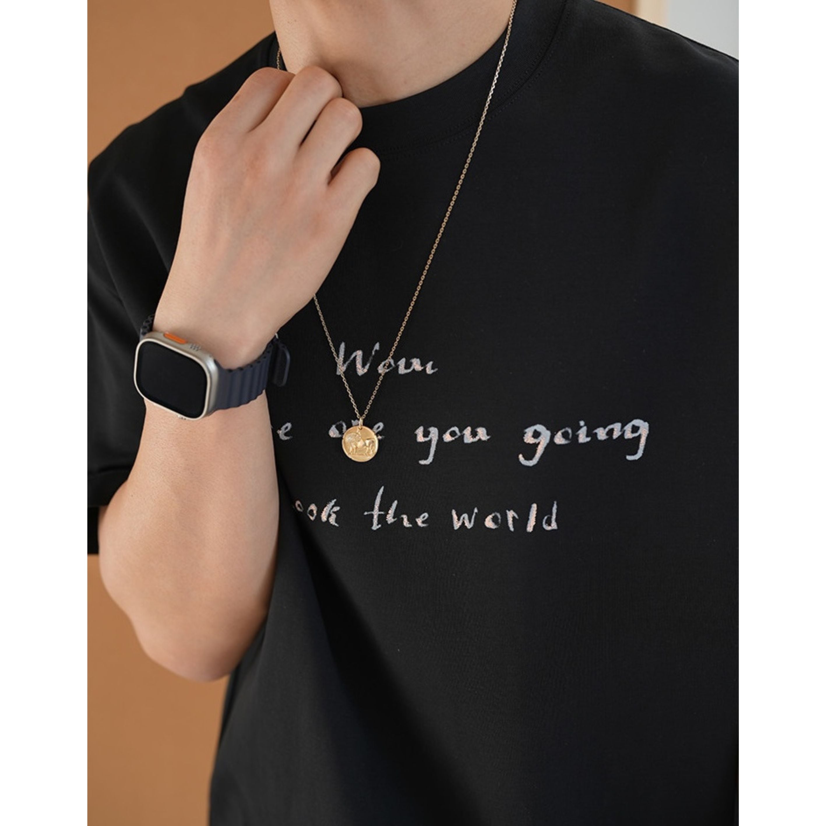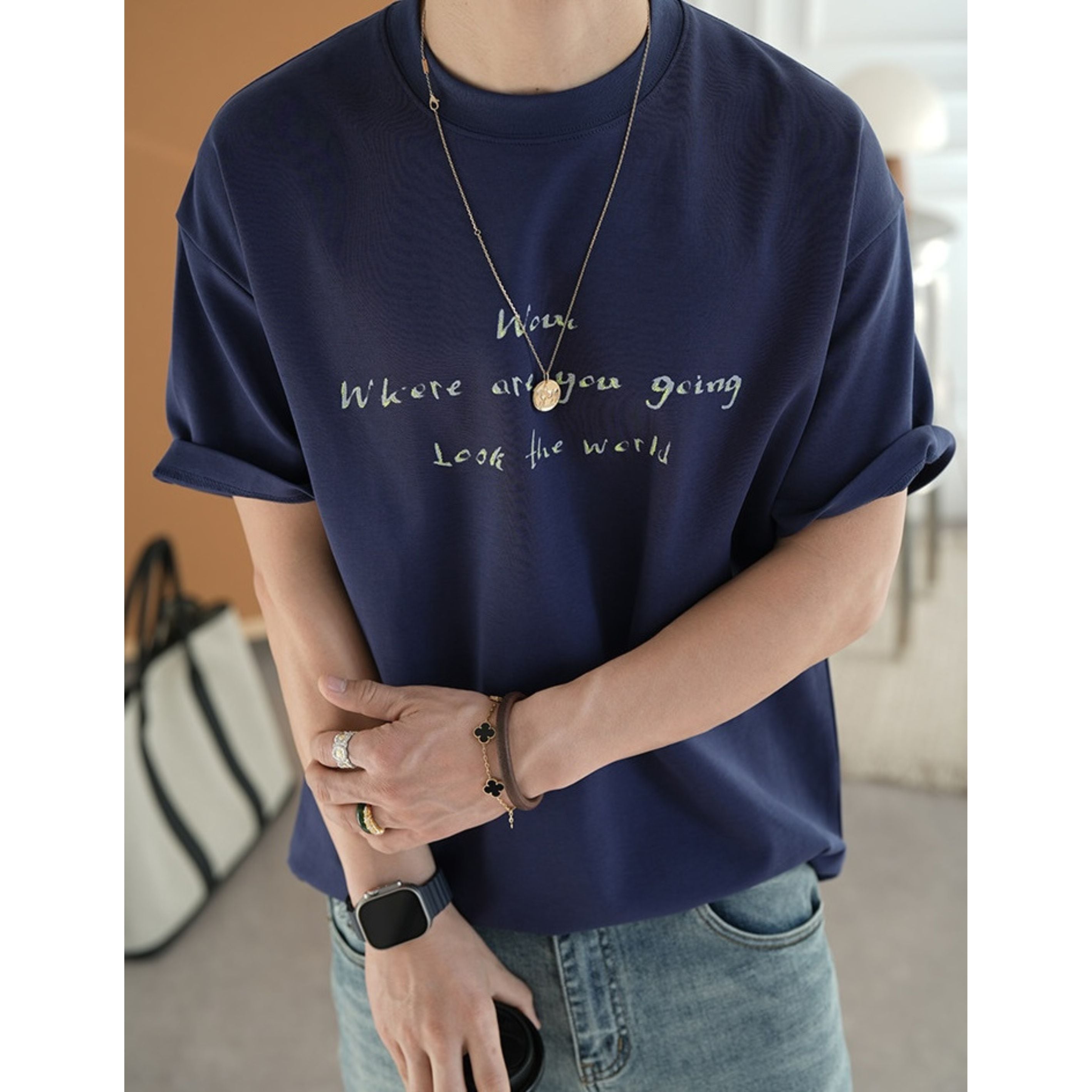 主張しすぎないフォントと落ち着いた配色により大人のカジュアルスタイルにも自然に馴染みます。