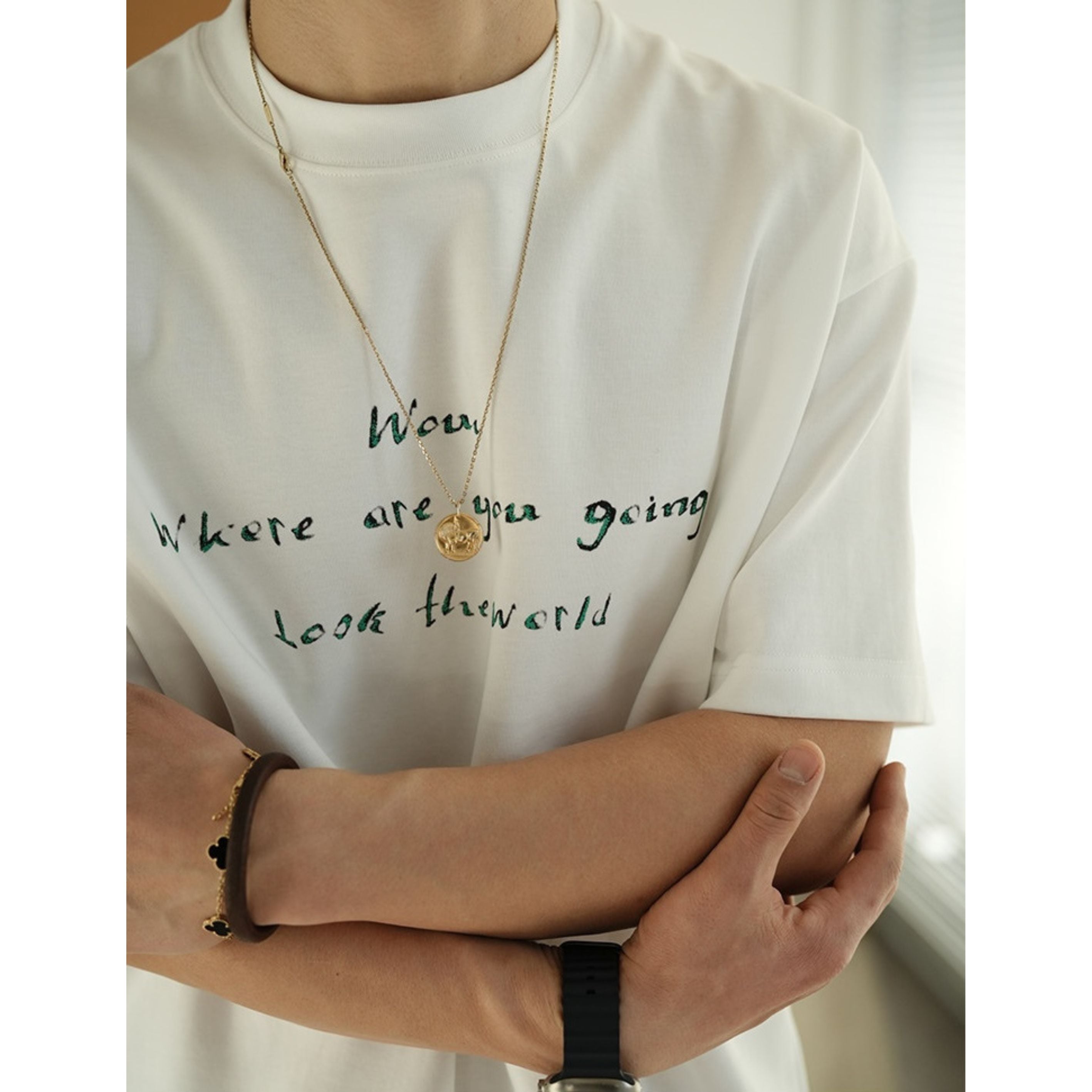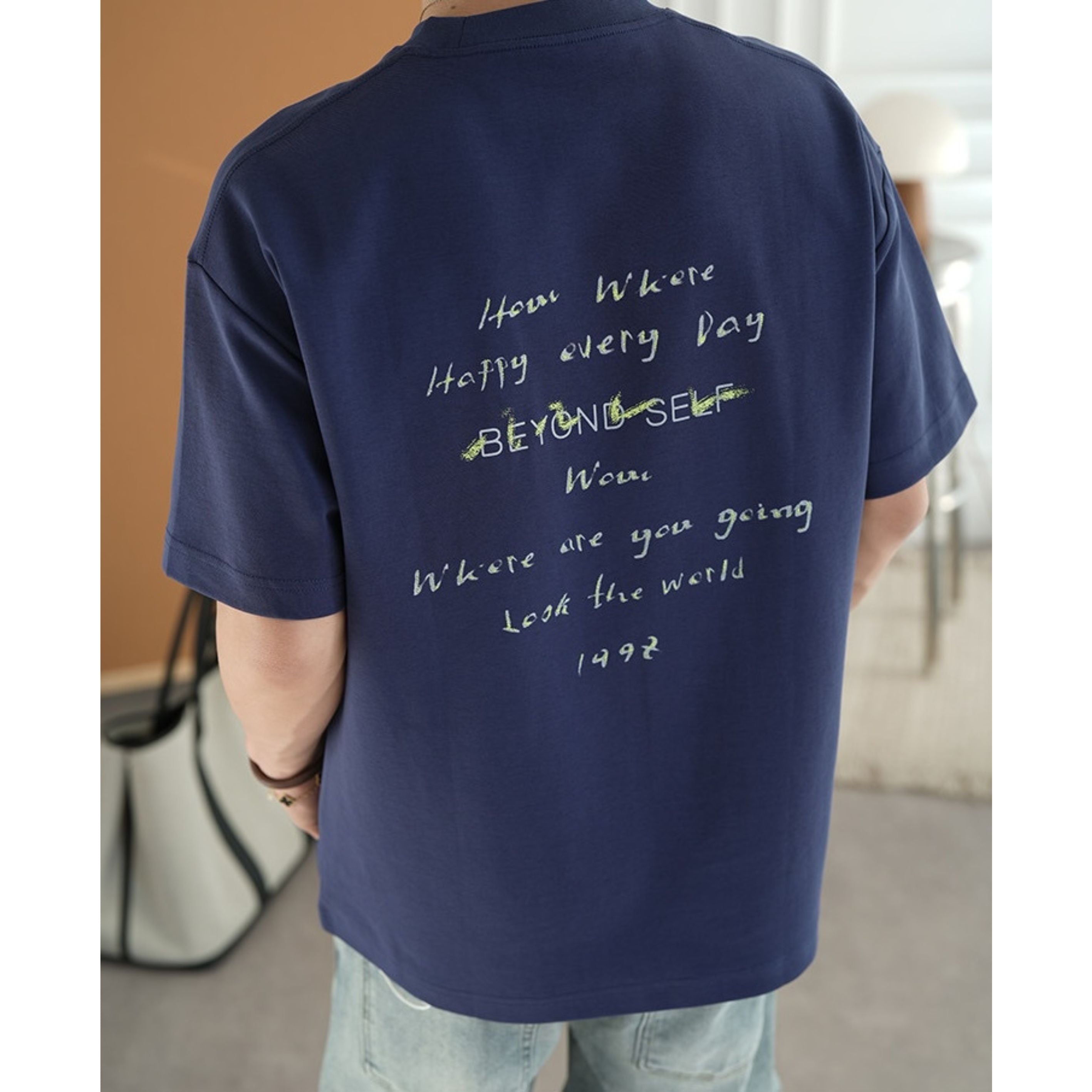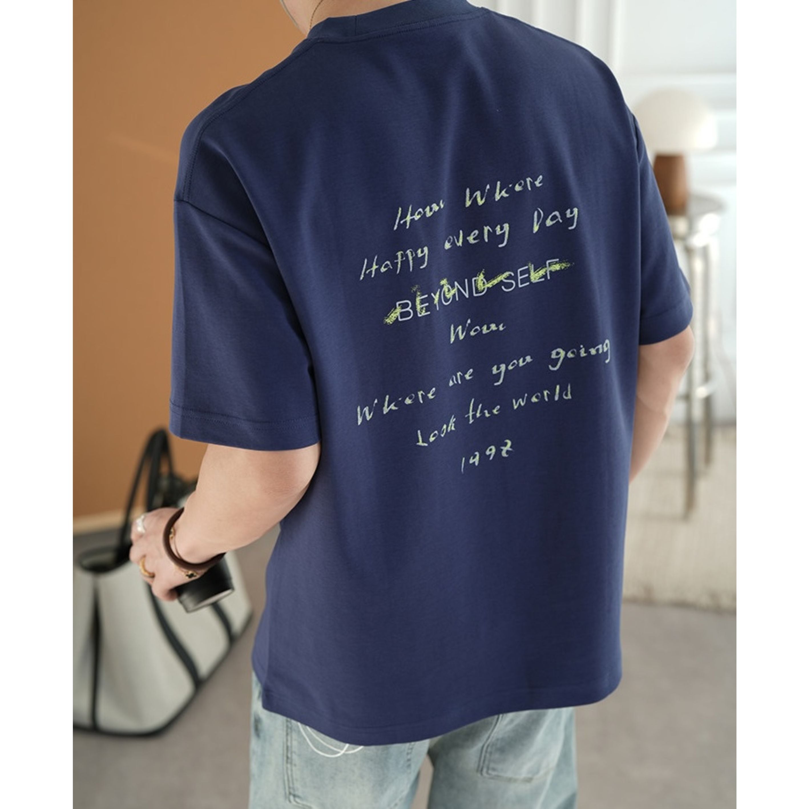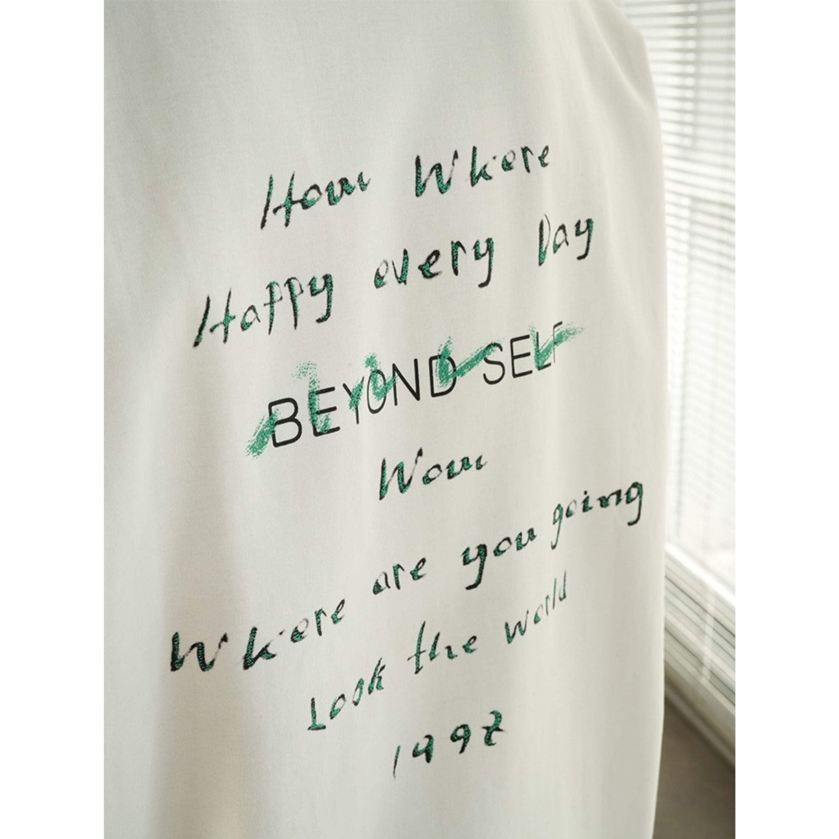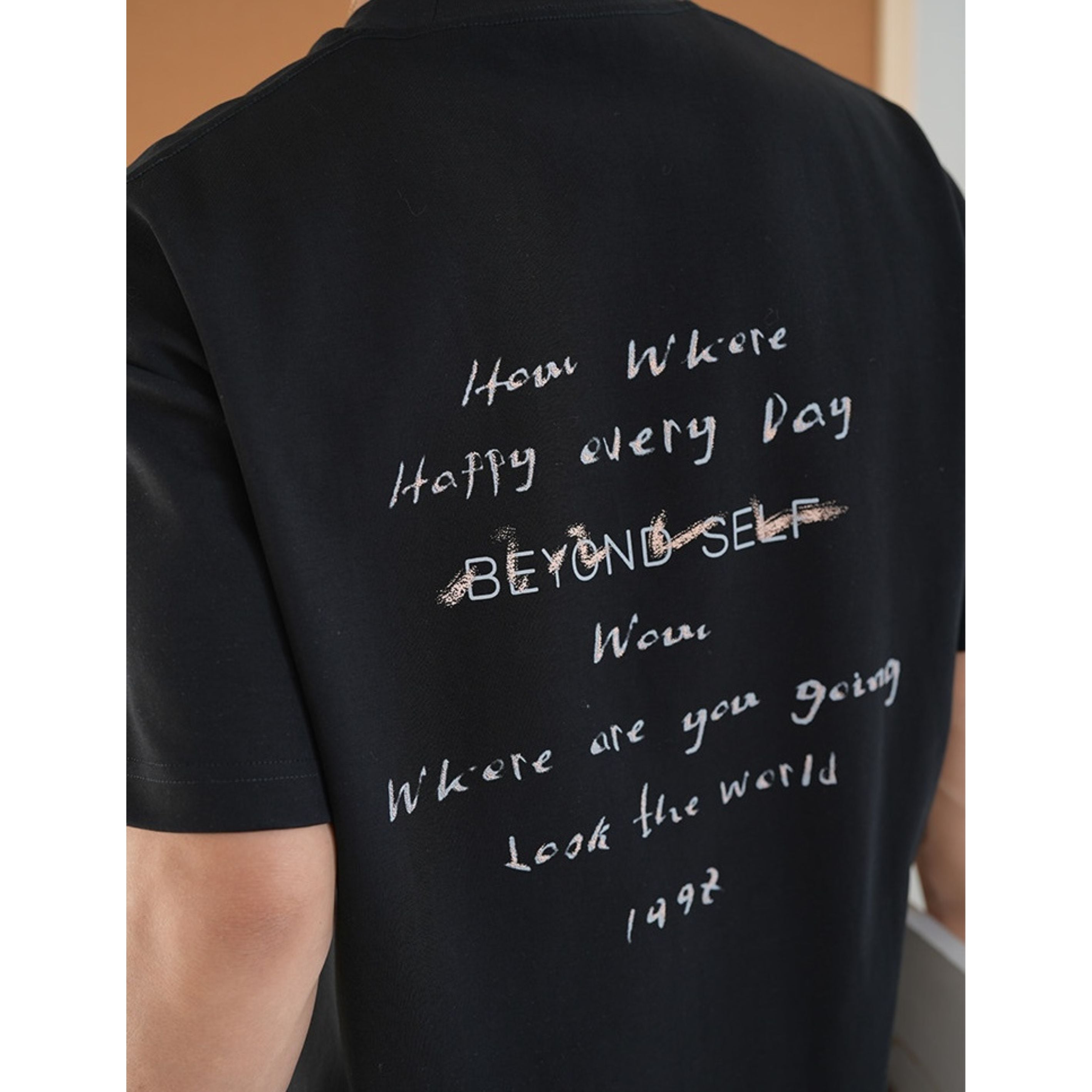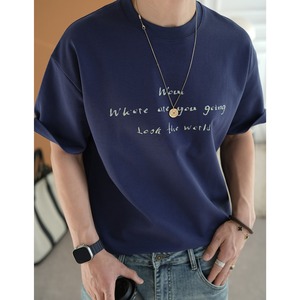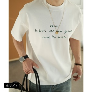 手書き風のレタープリントが印象的なクルーネックTシャツ。