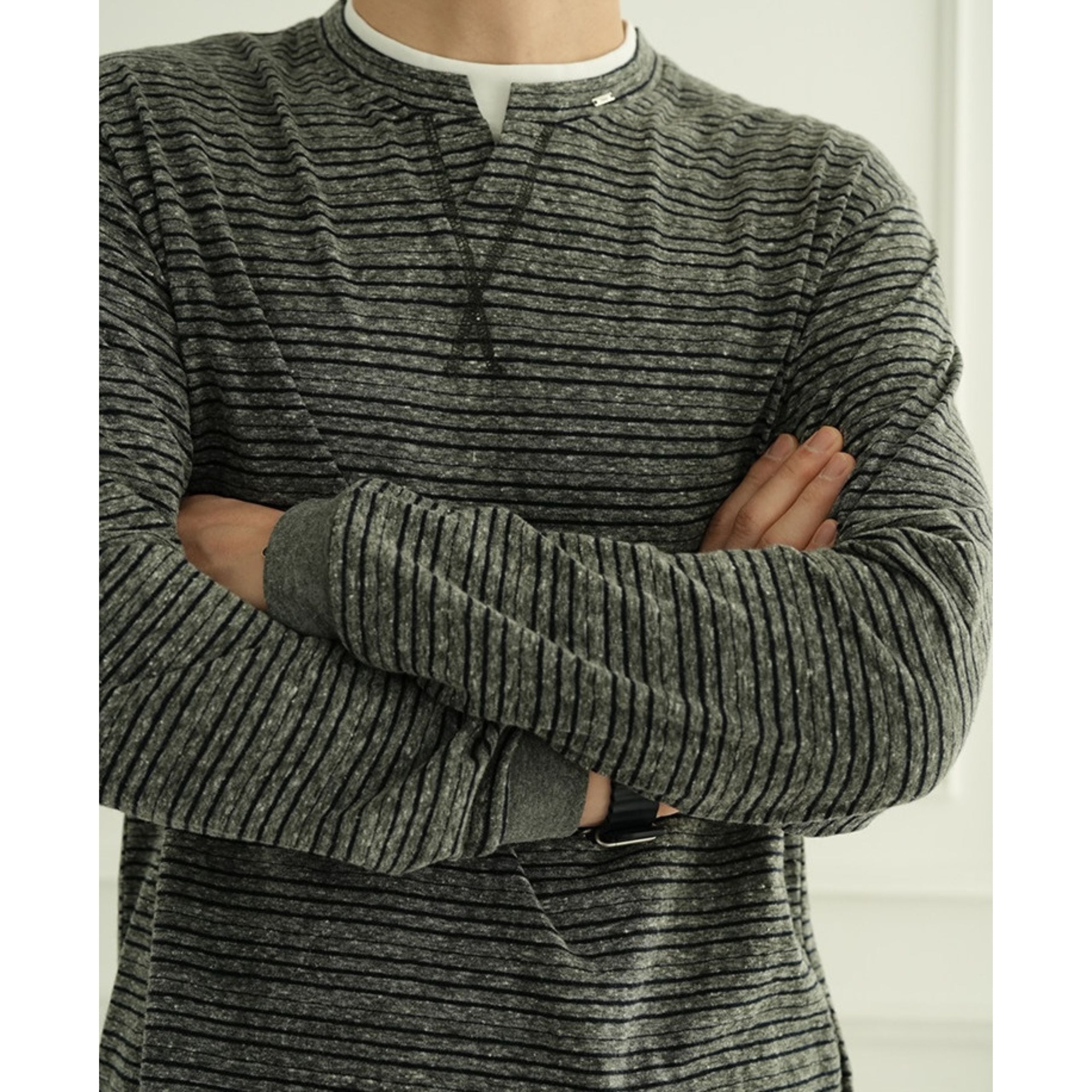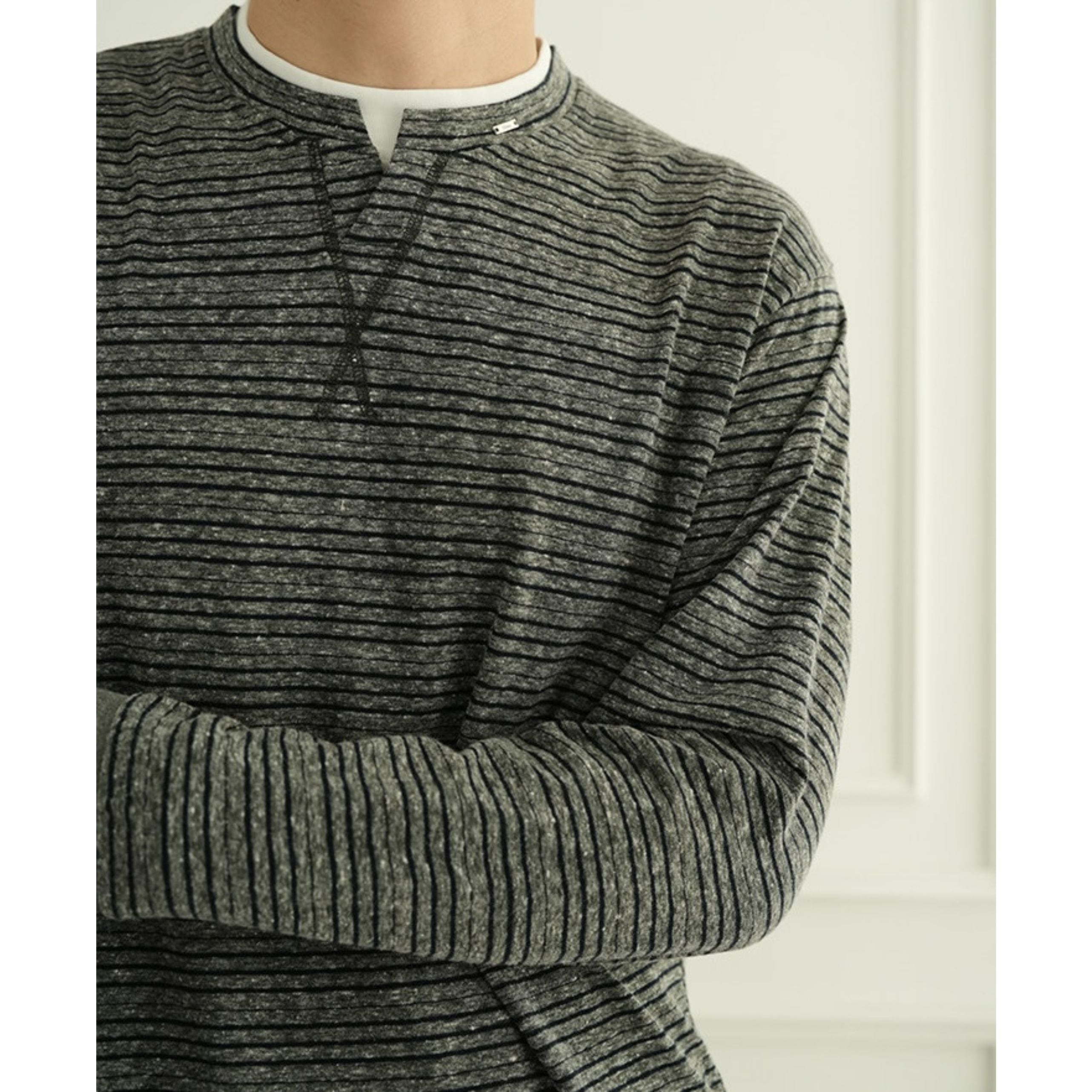 首元は程よい抜け感を演出するキーネックデザインで、