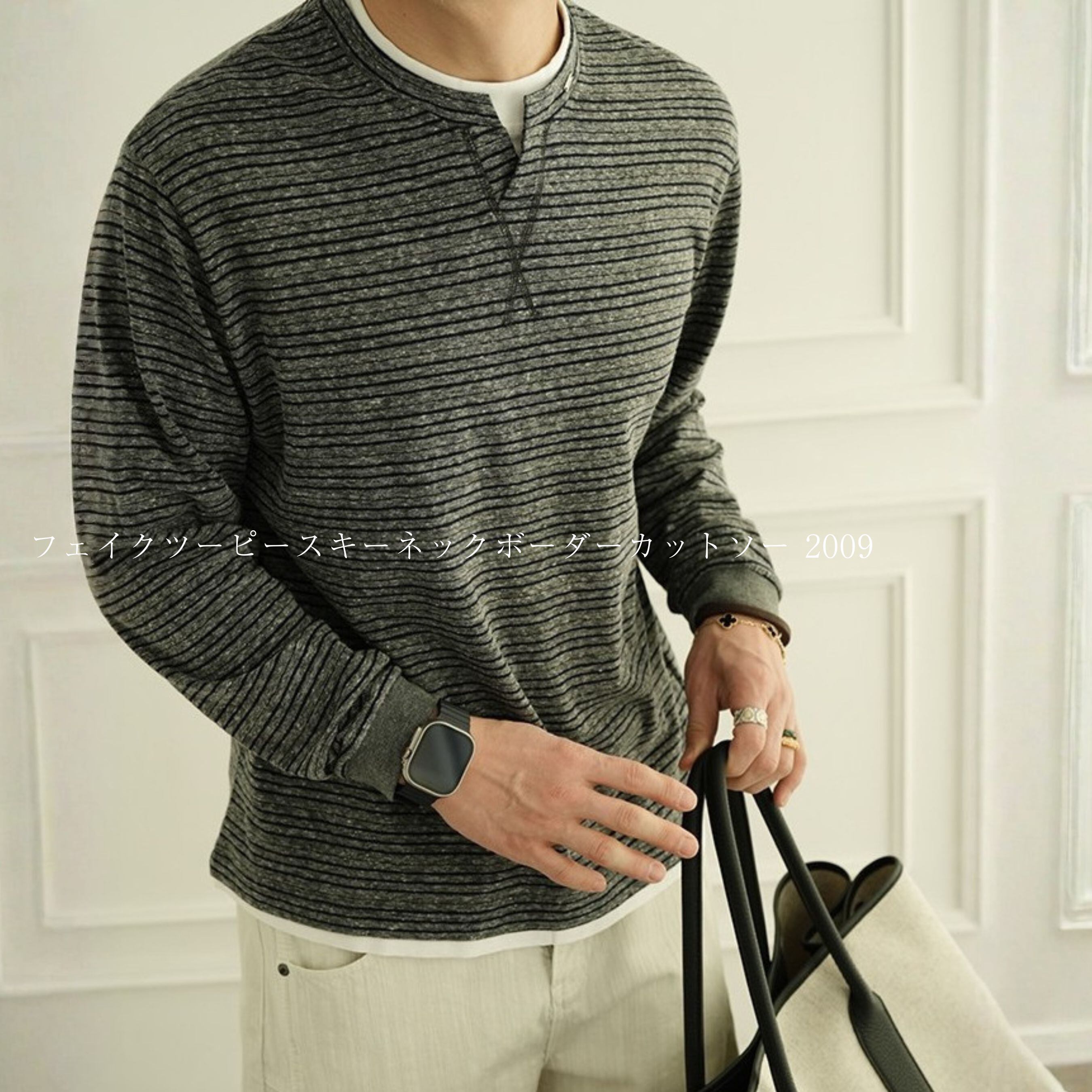 フェイクツーピースキーネックボーダーカットソー 2009