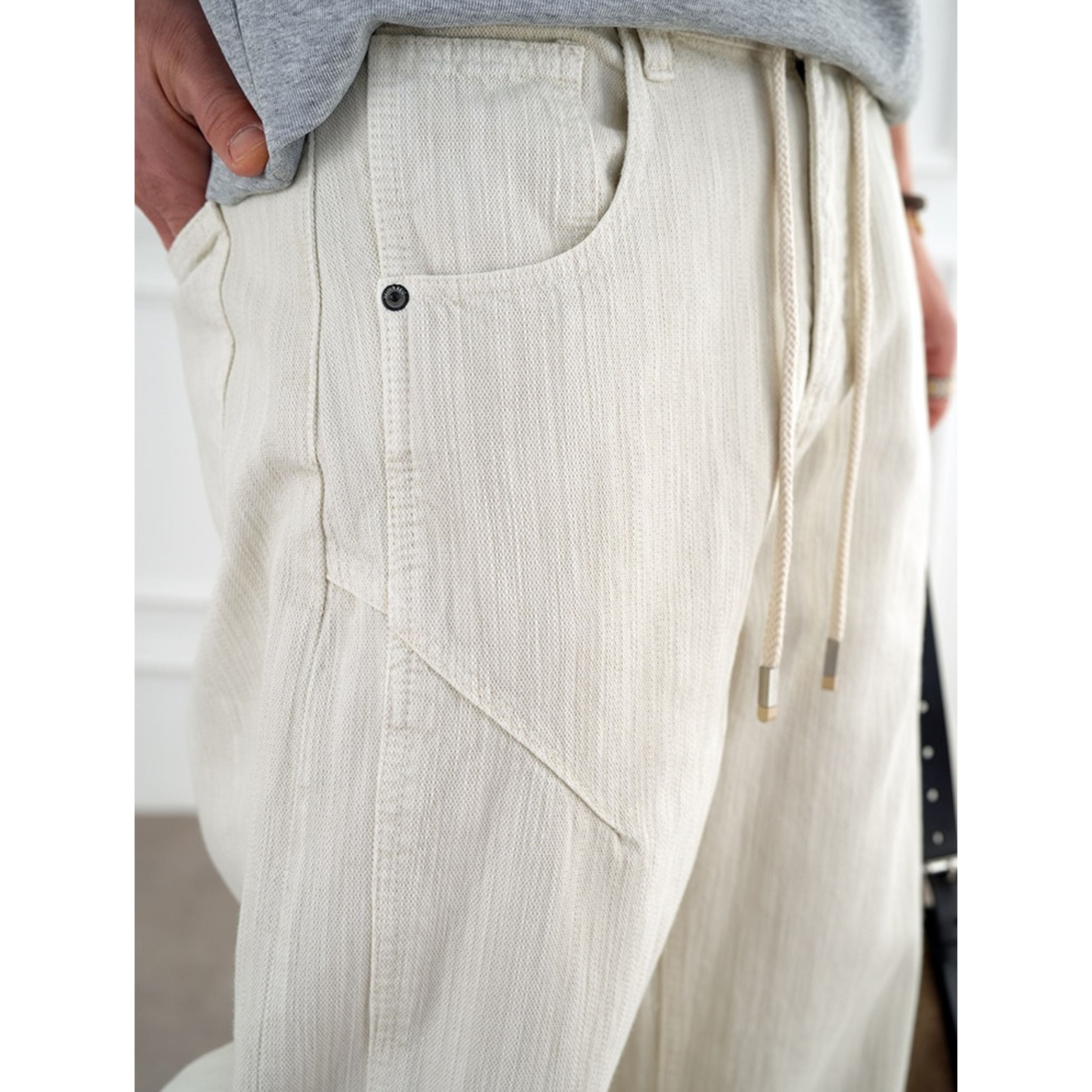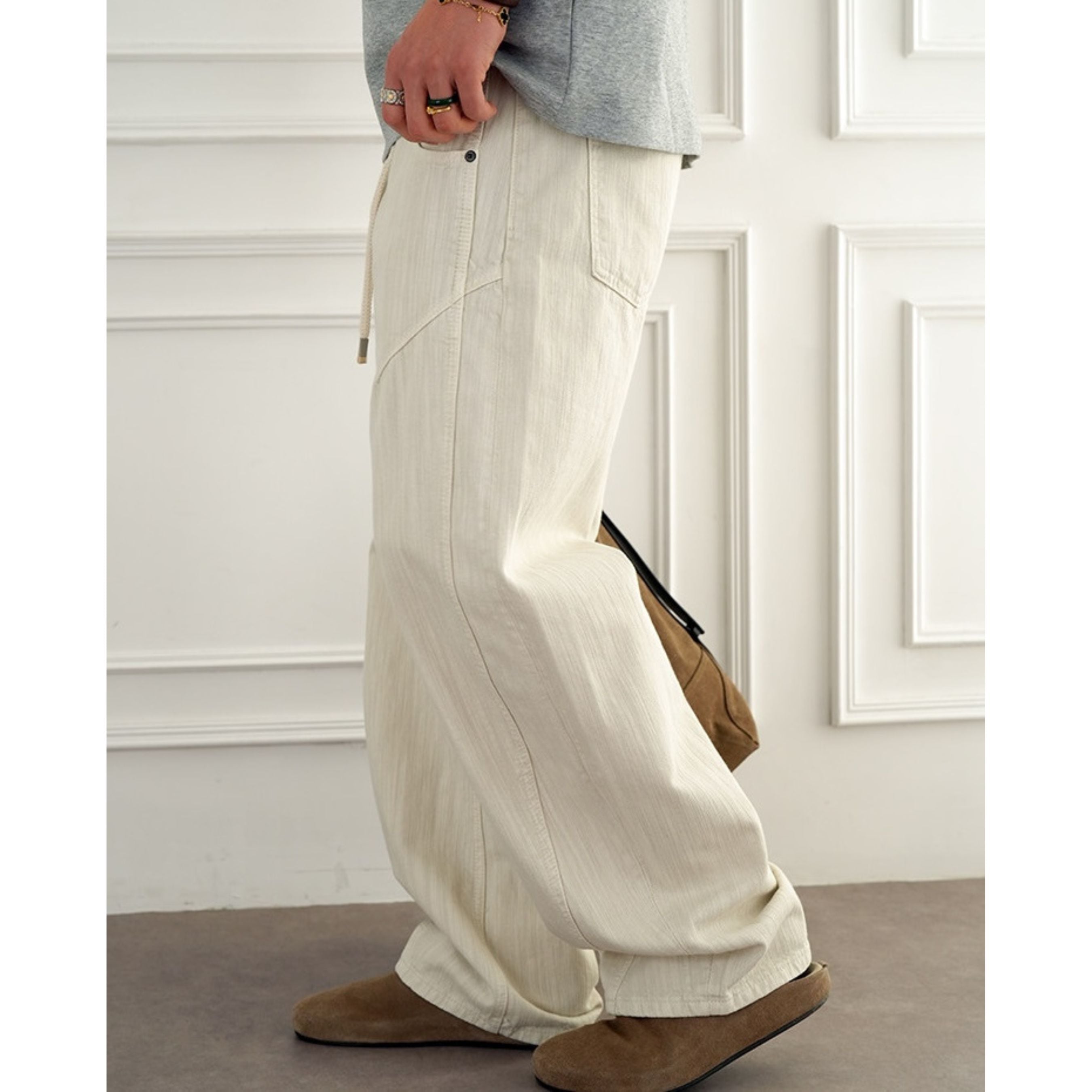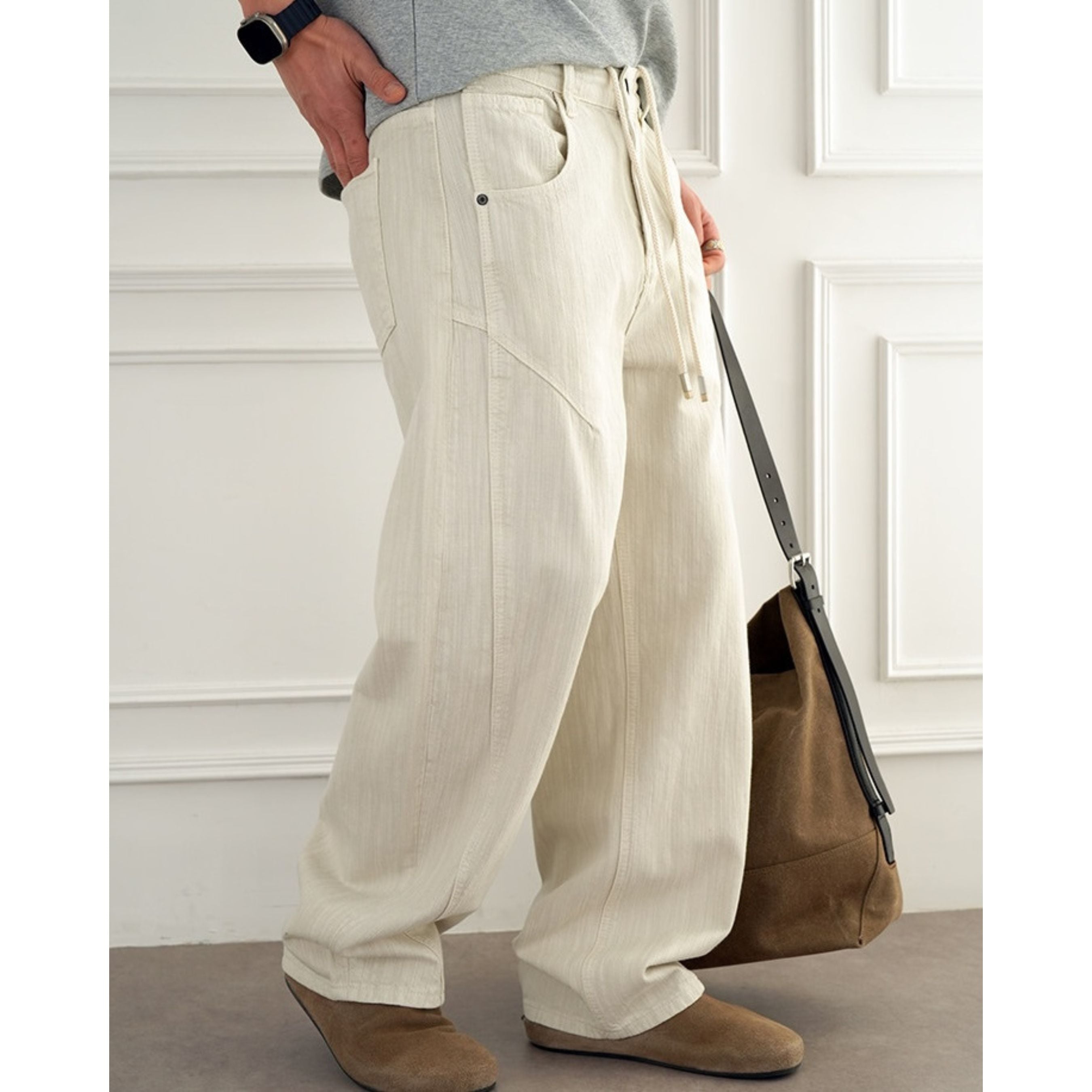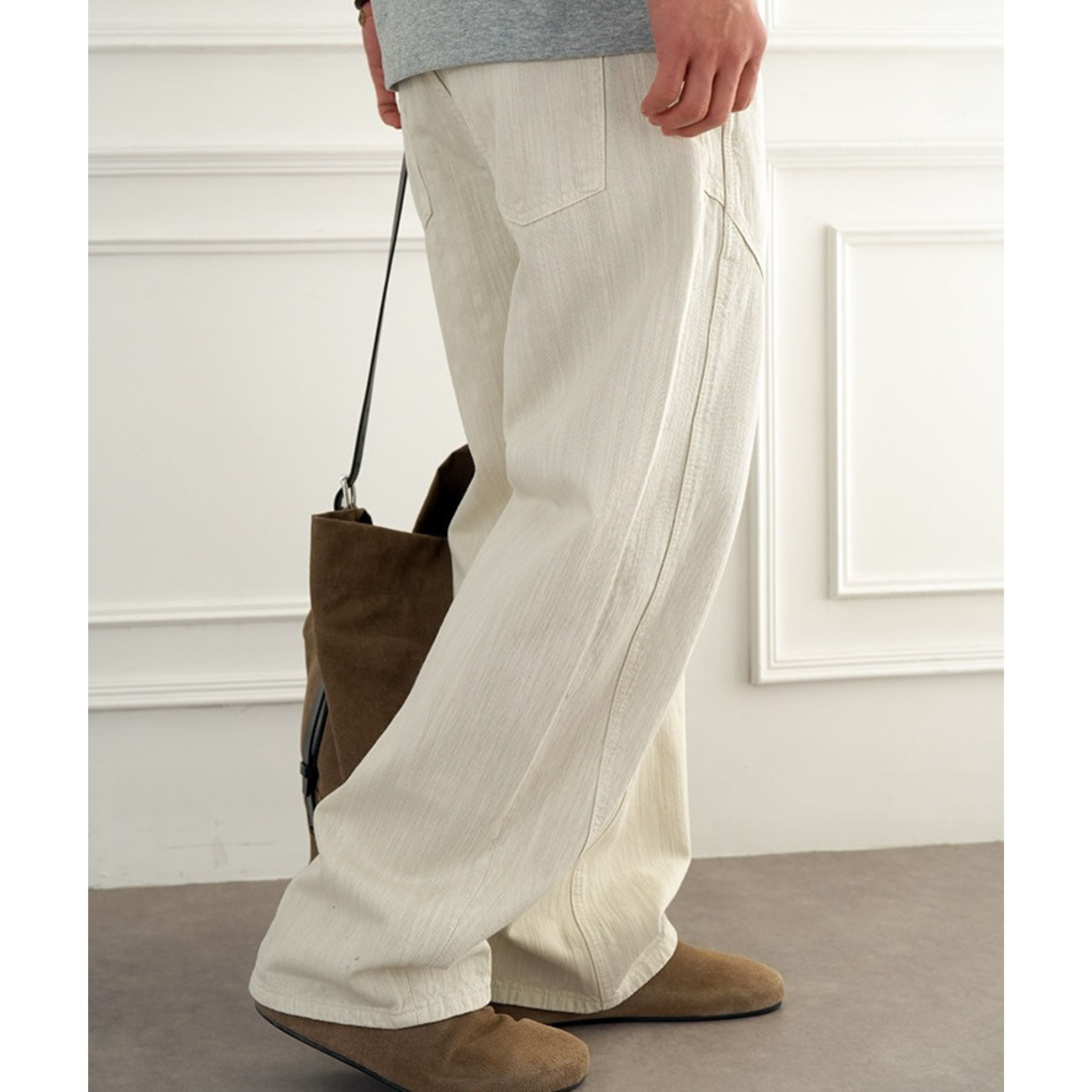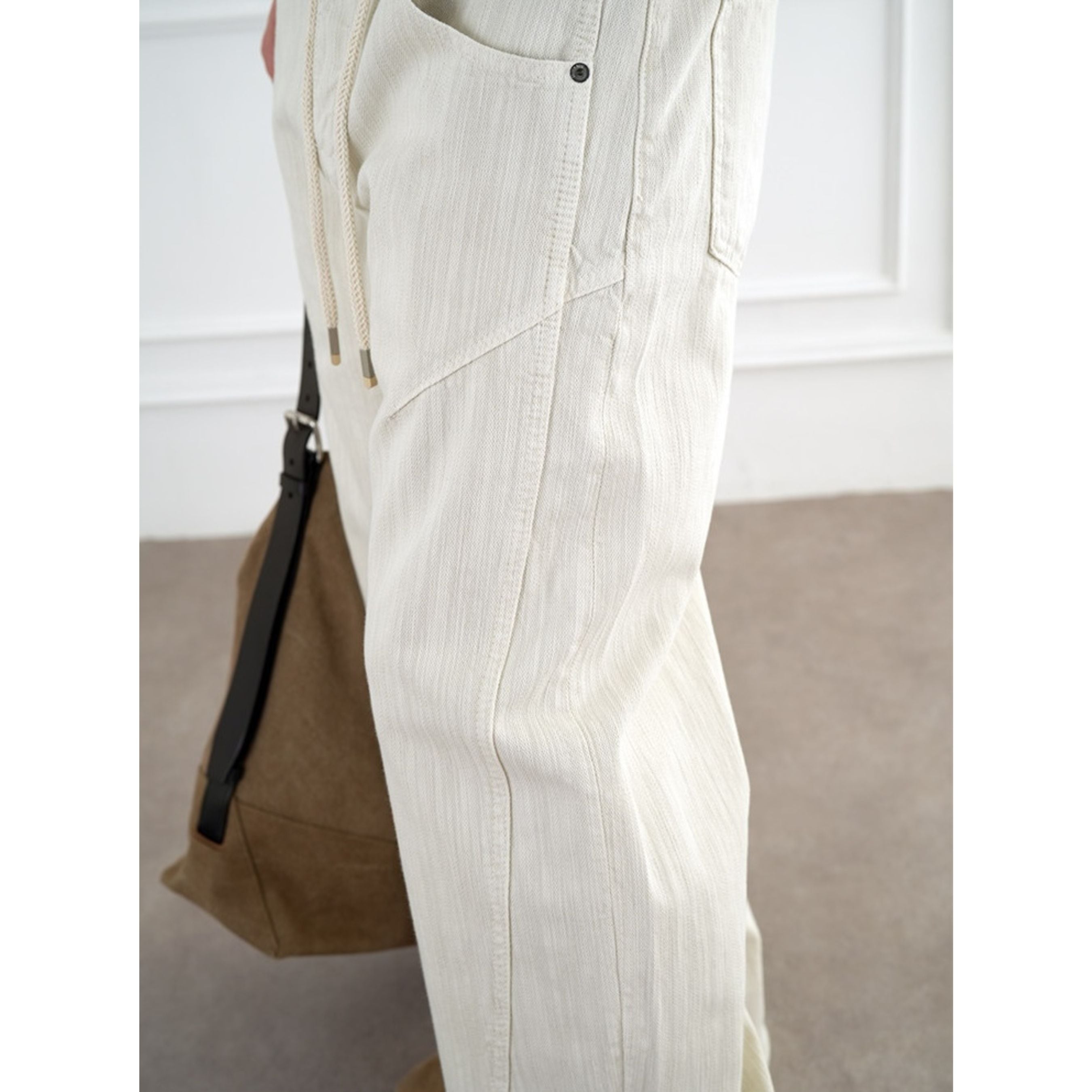 縦畝のある素材感が特徴のナチュラルテイストなパンツ。