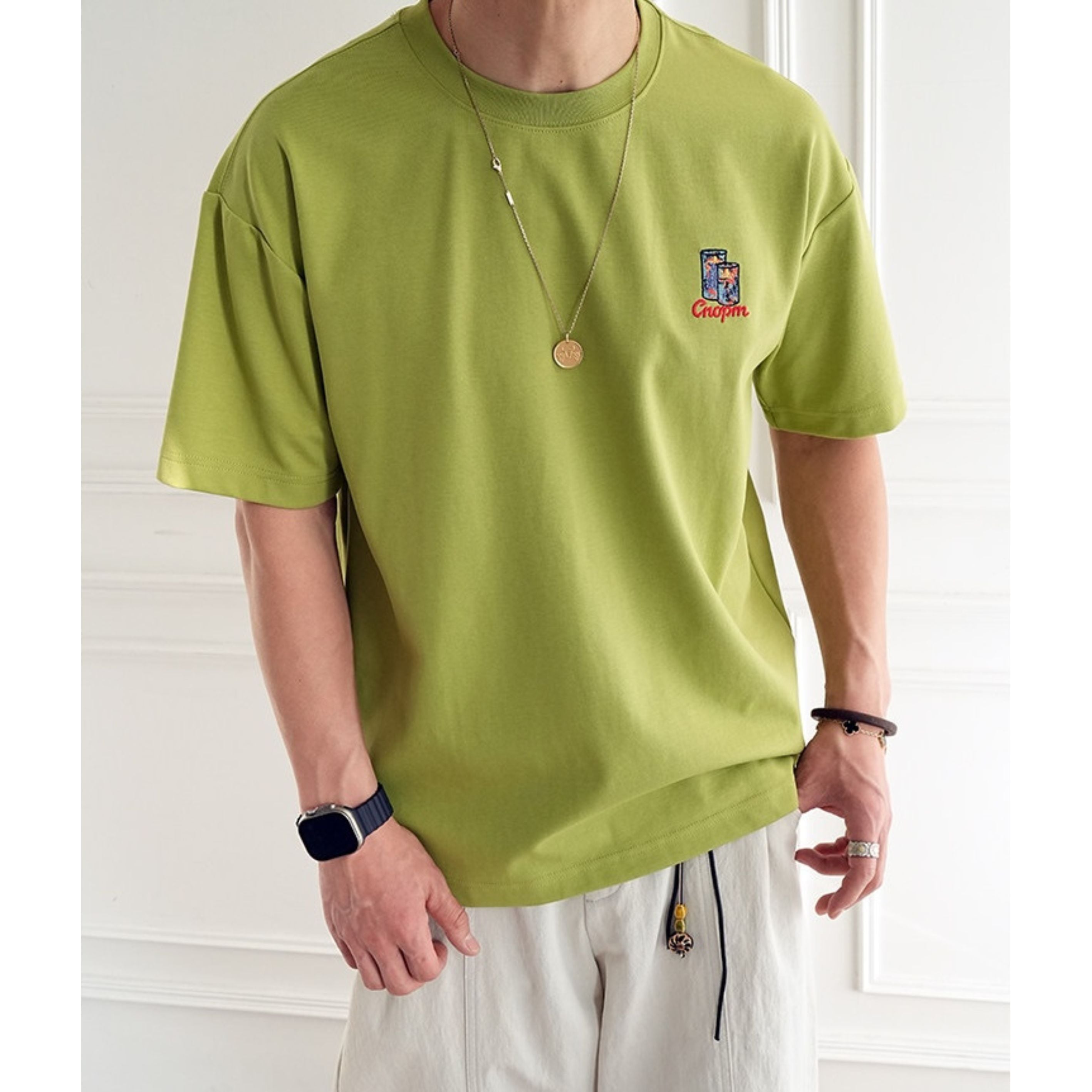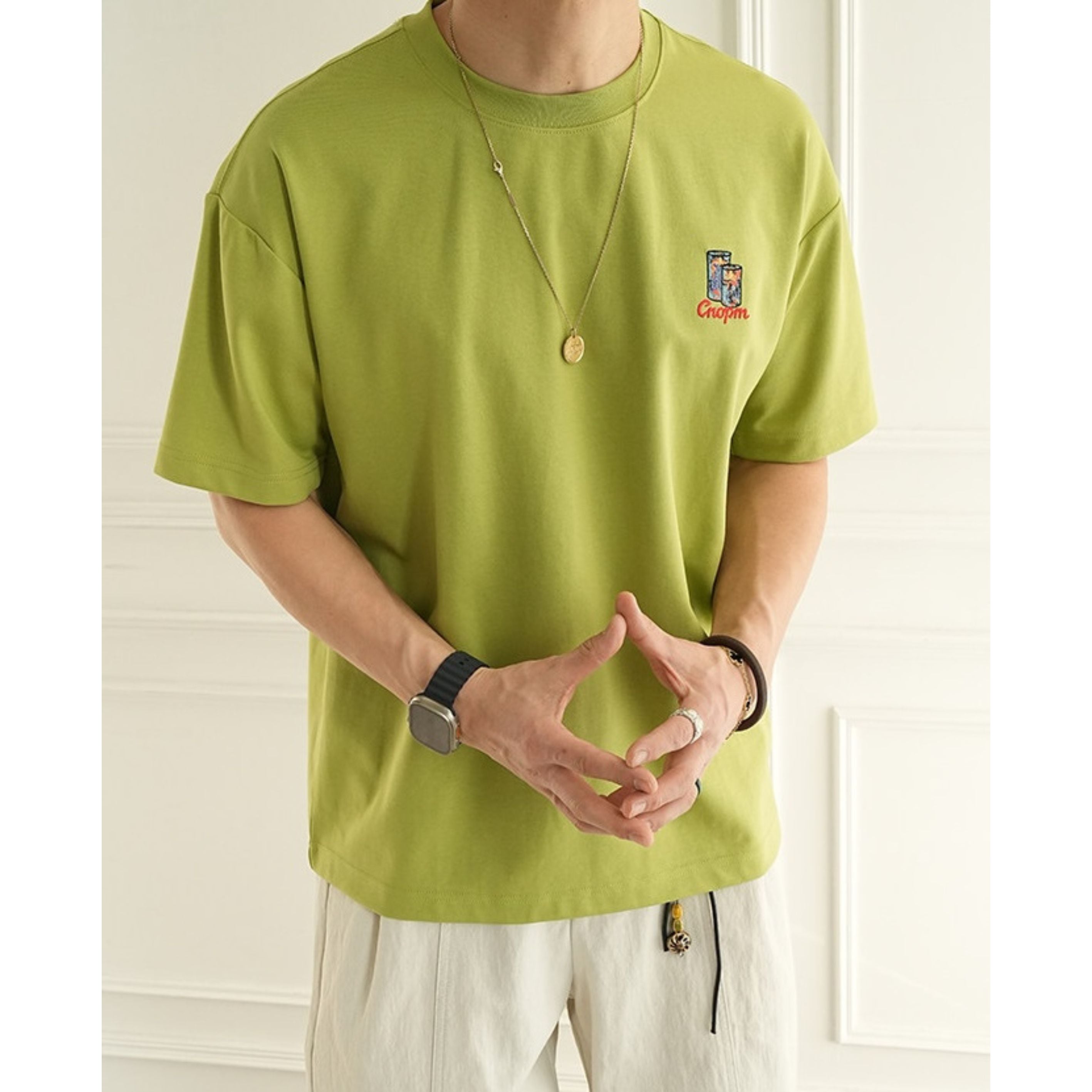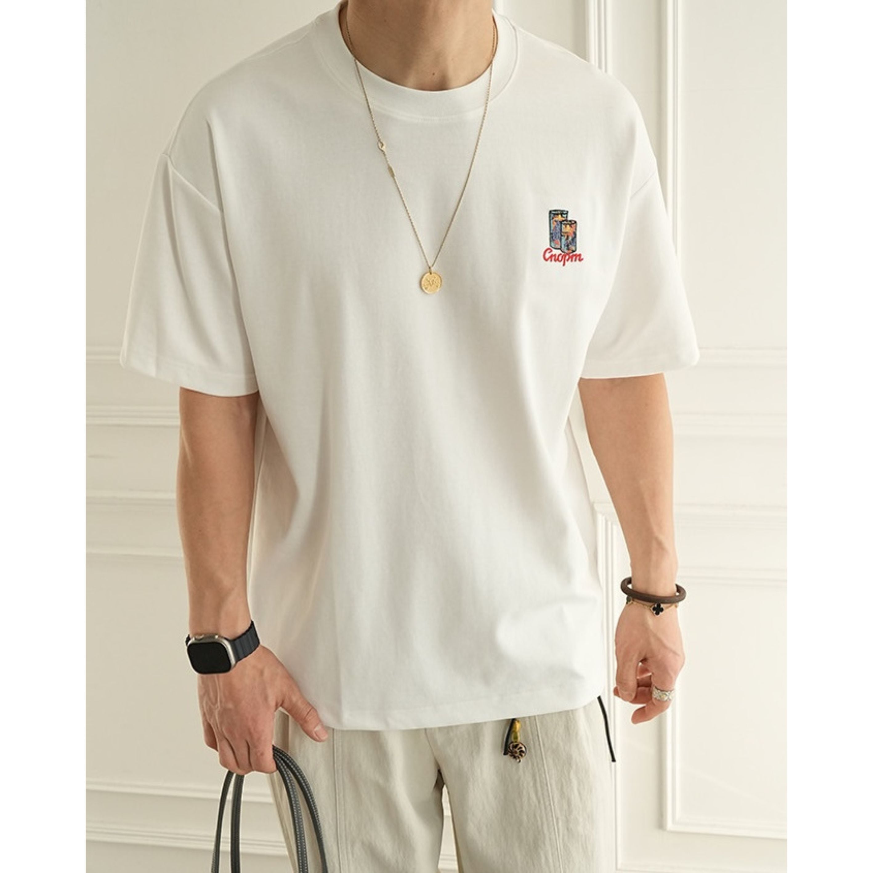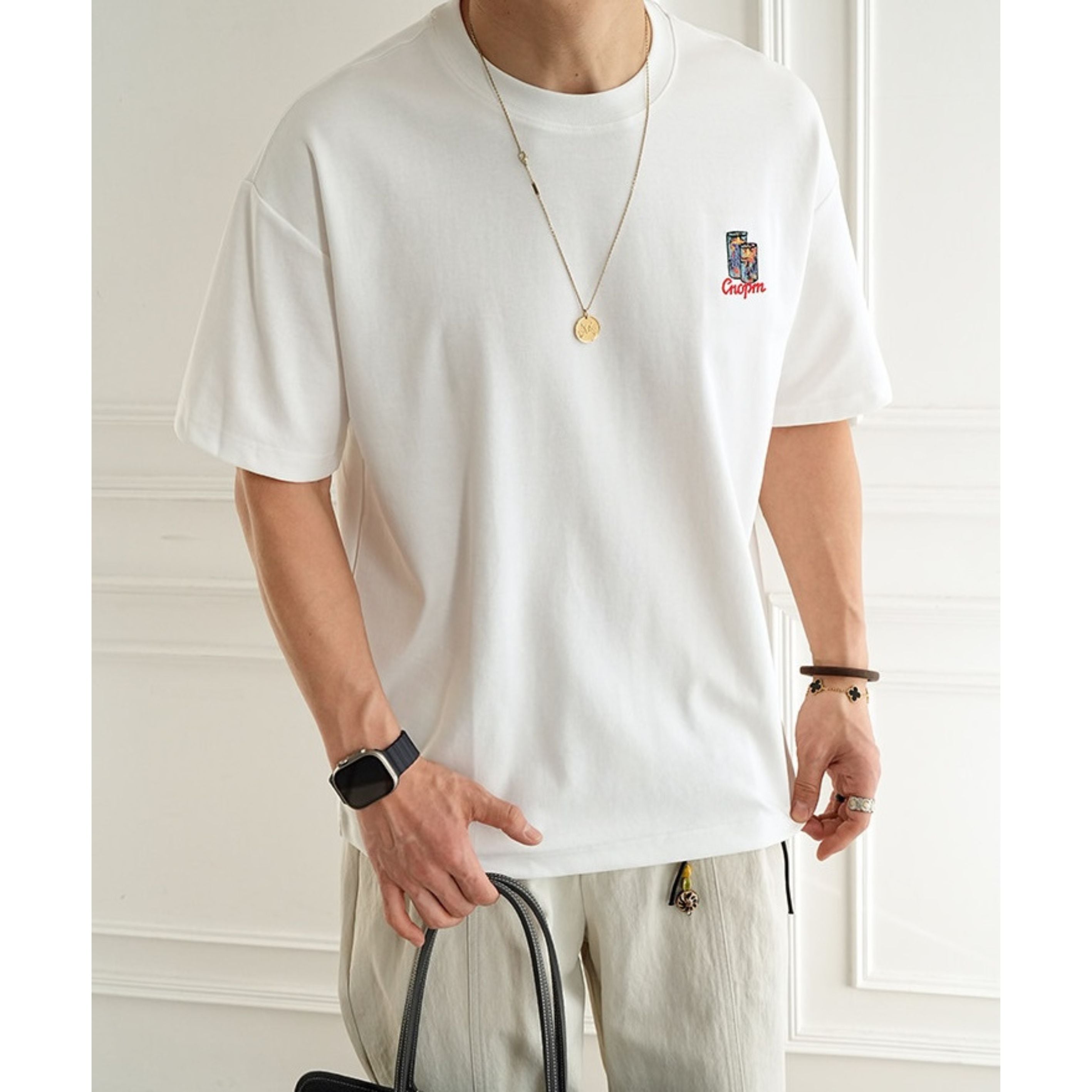 フロントはワンポイント刺繍でシンプルにまとめ、