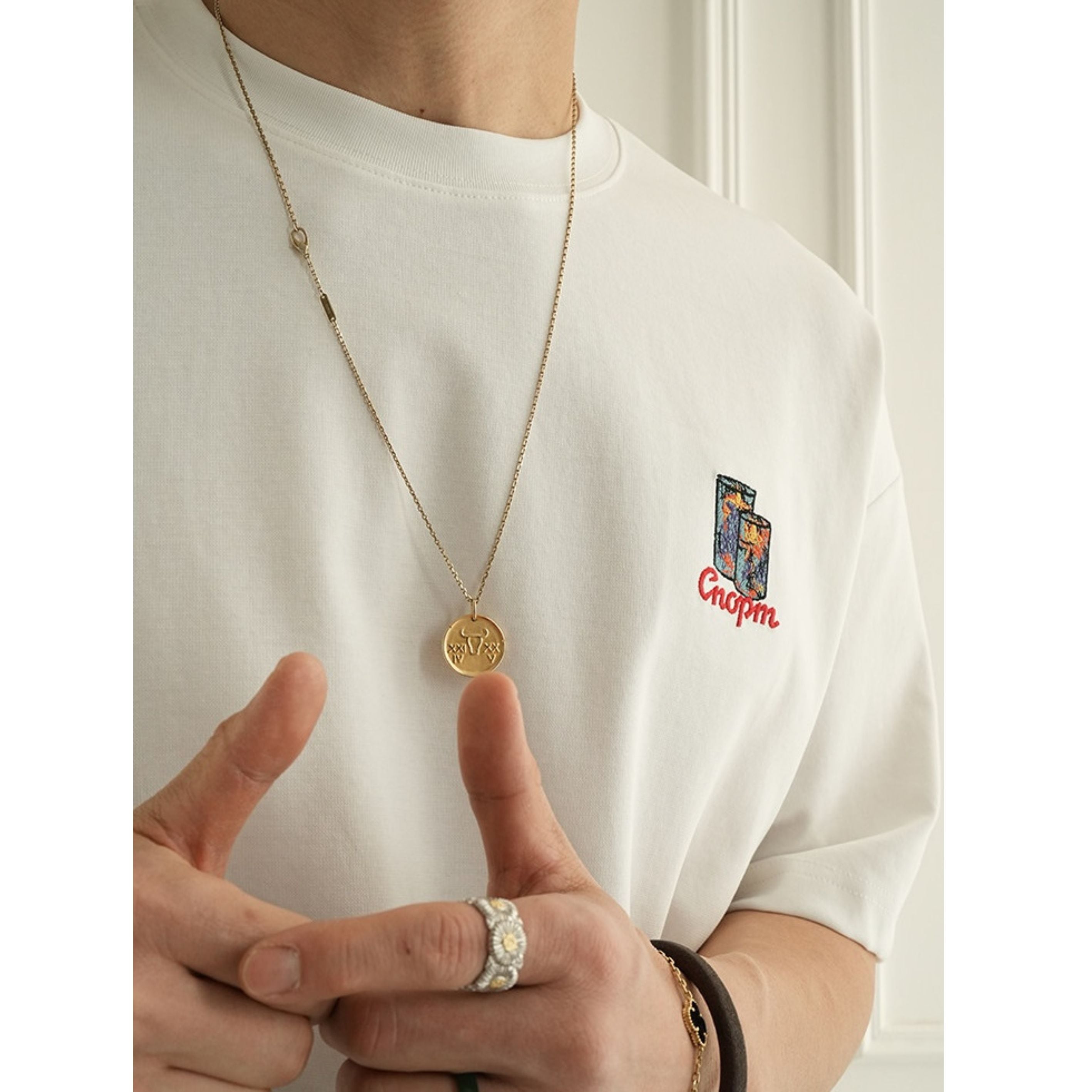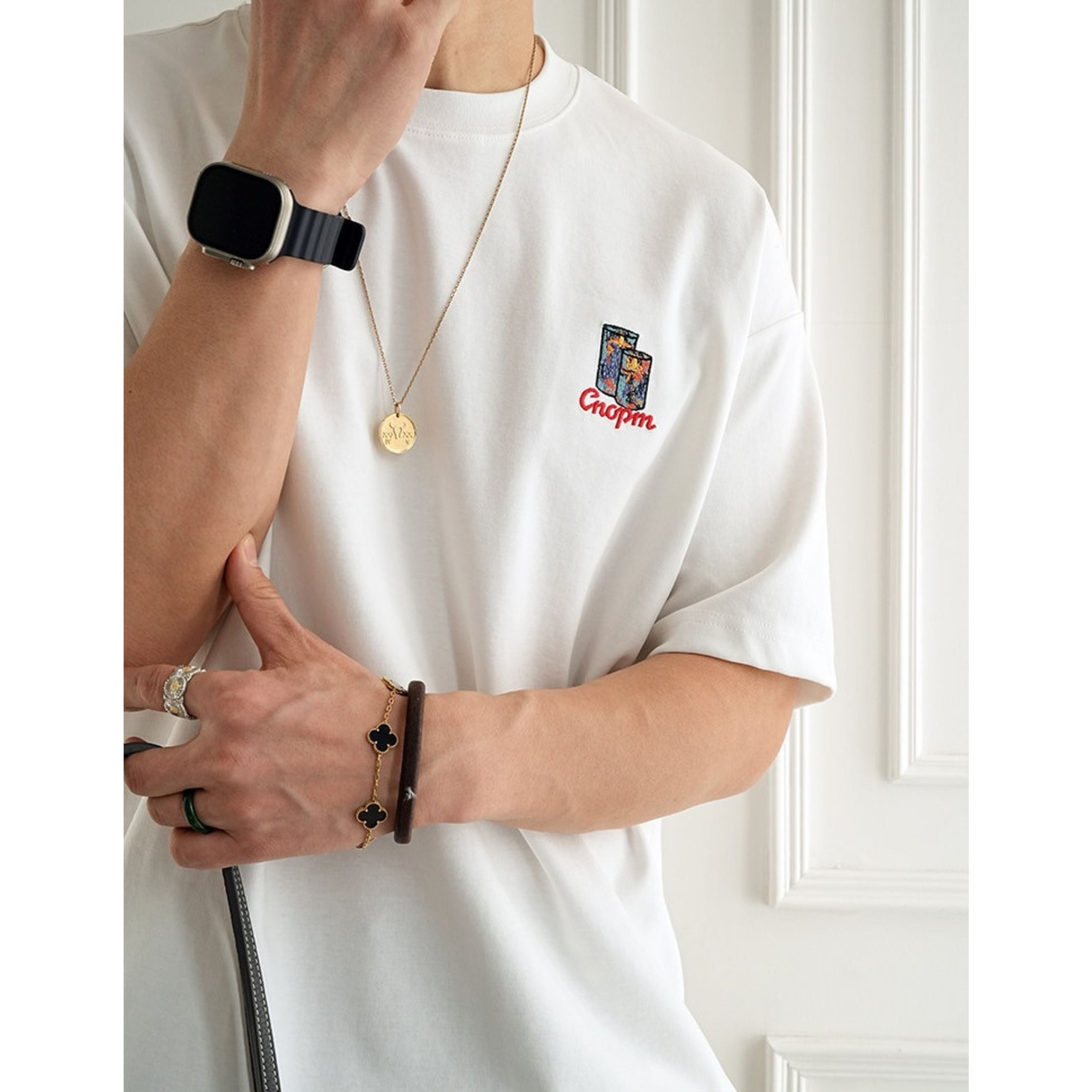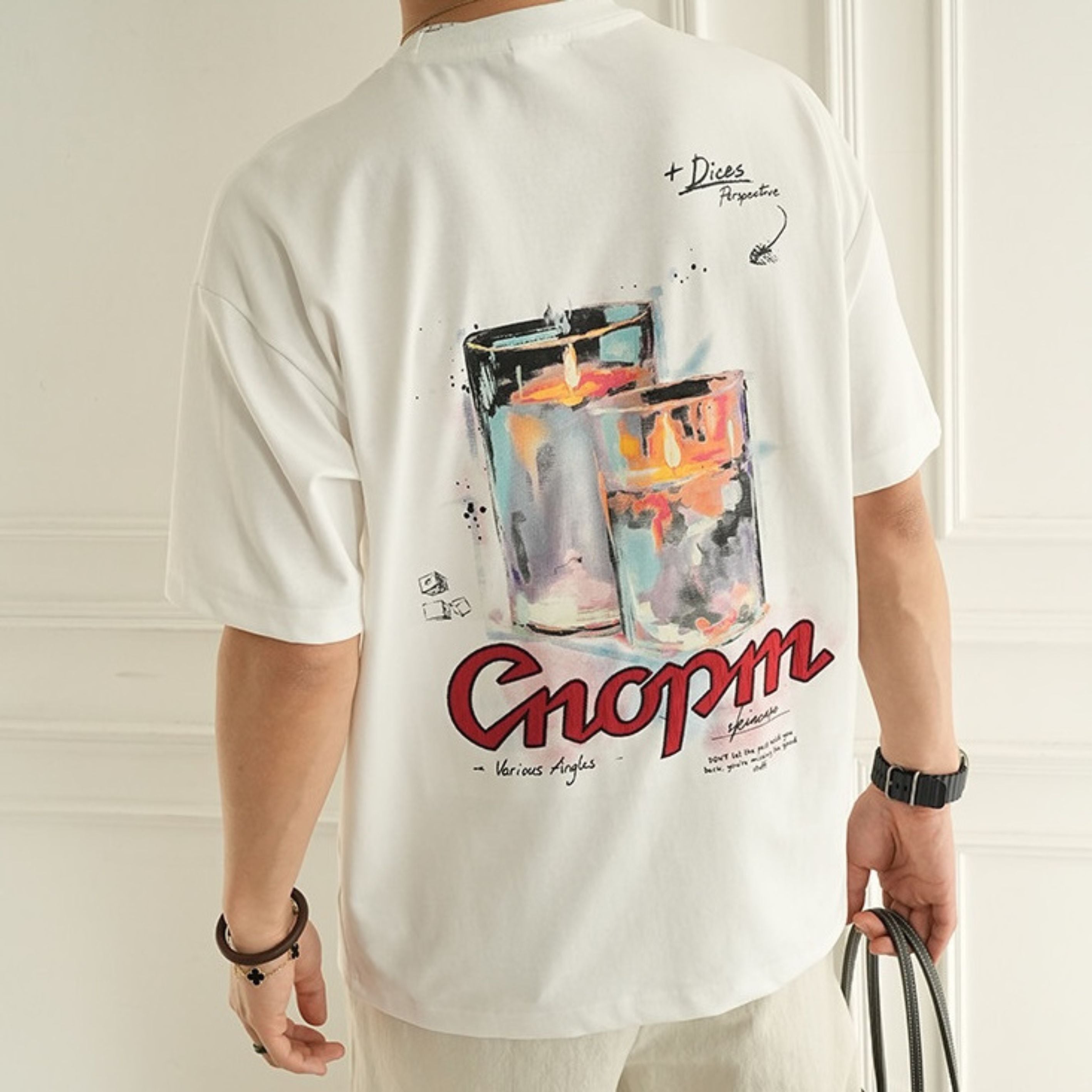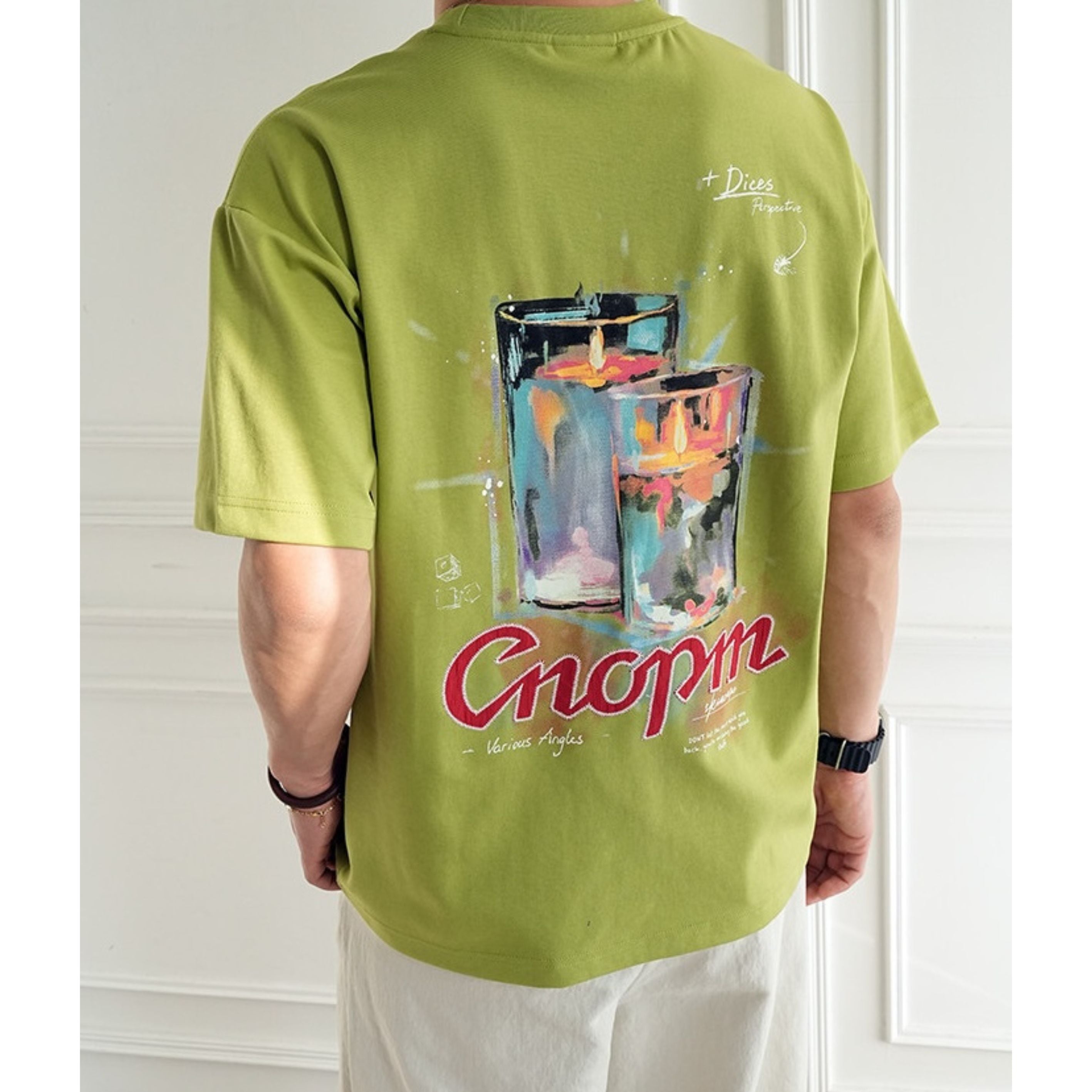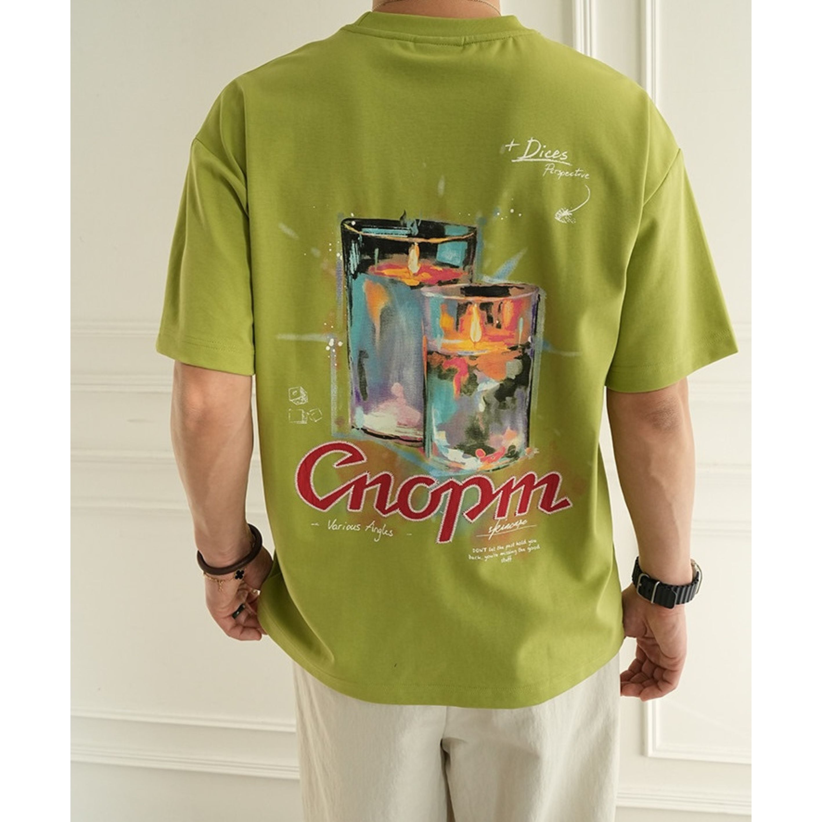 バックに大胆なキャンドルアートを描いた存在感抜群のグラフィックTEE。
