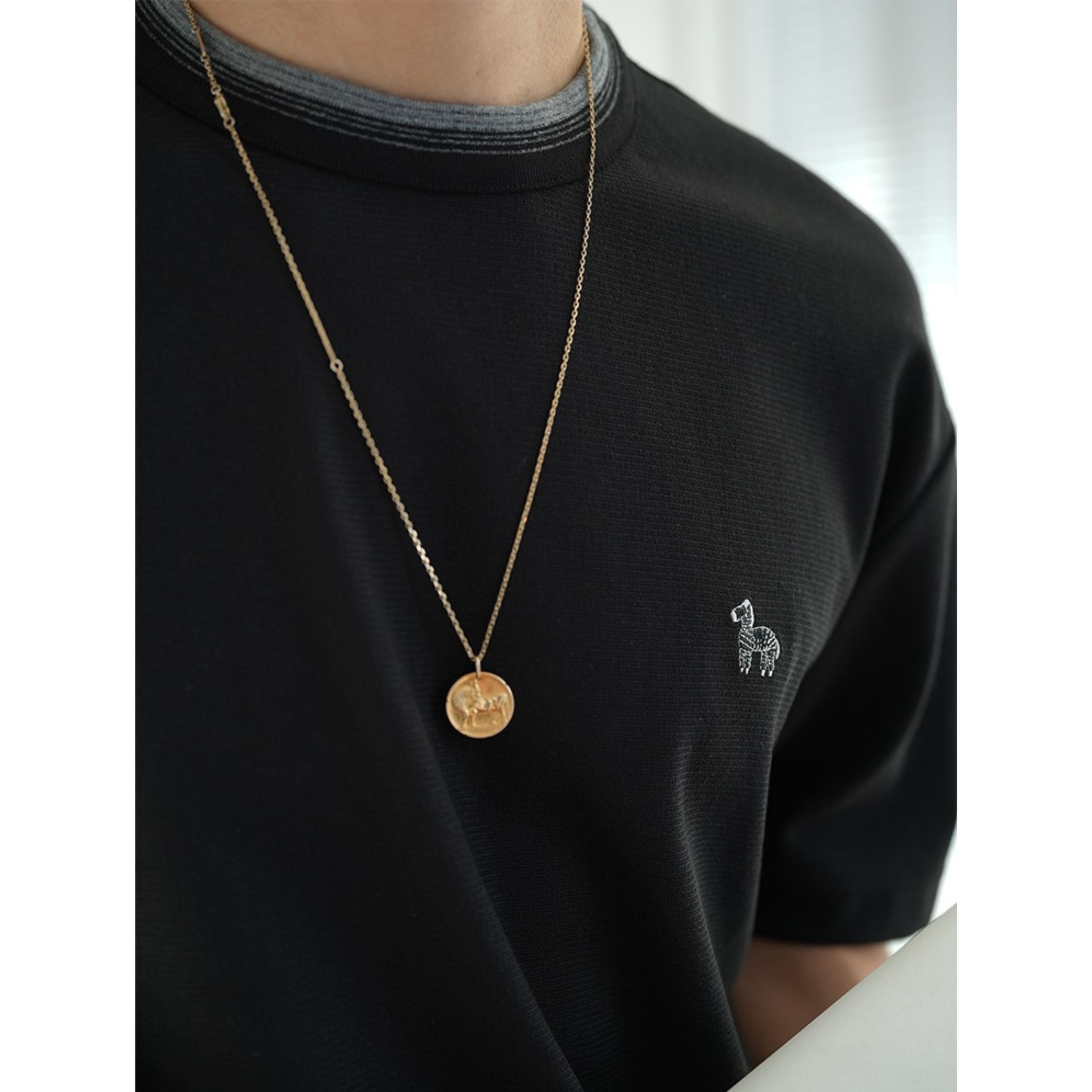 胸元にさりげなく施したゼブラ刺繍が