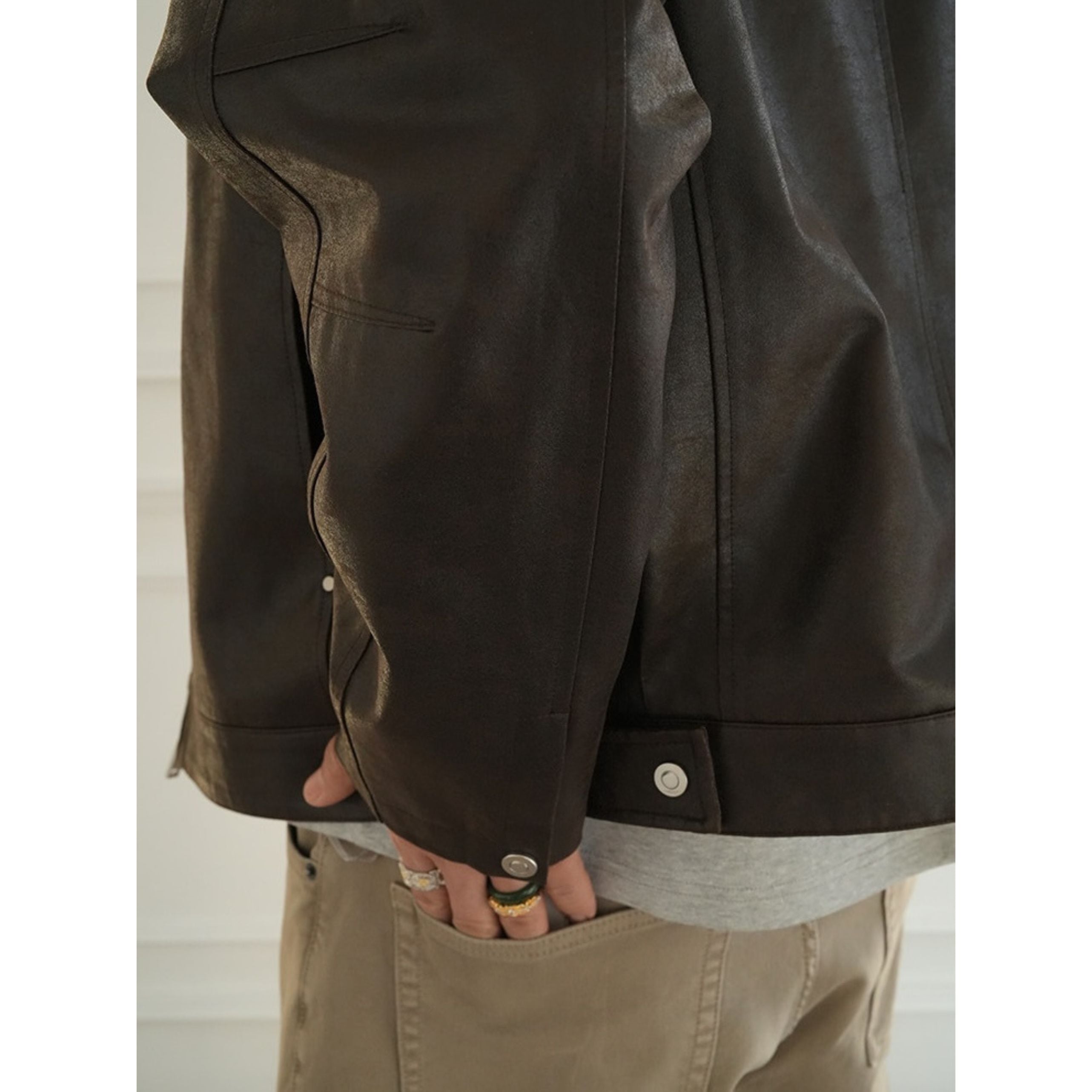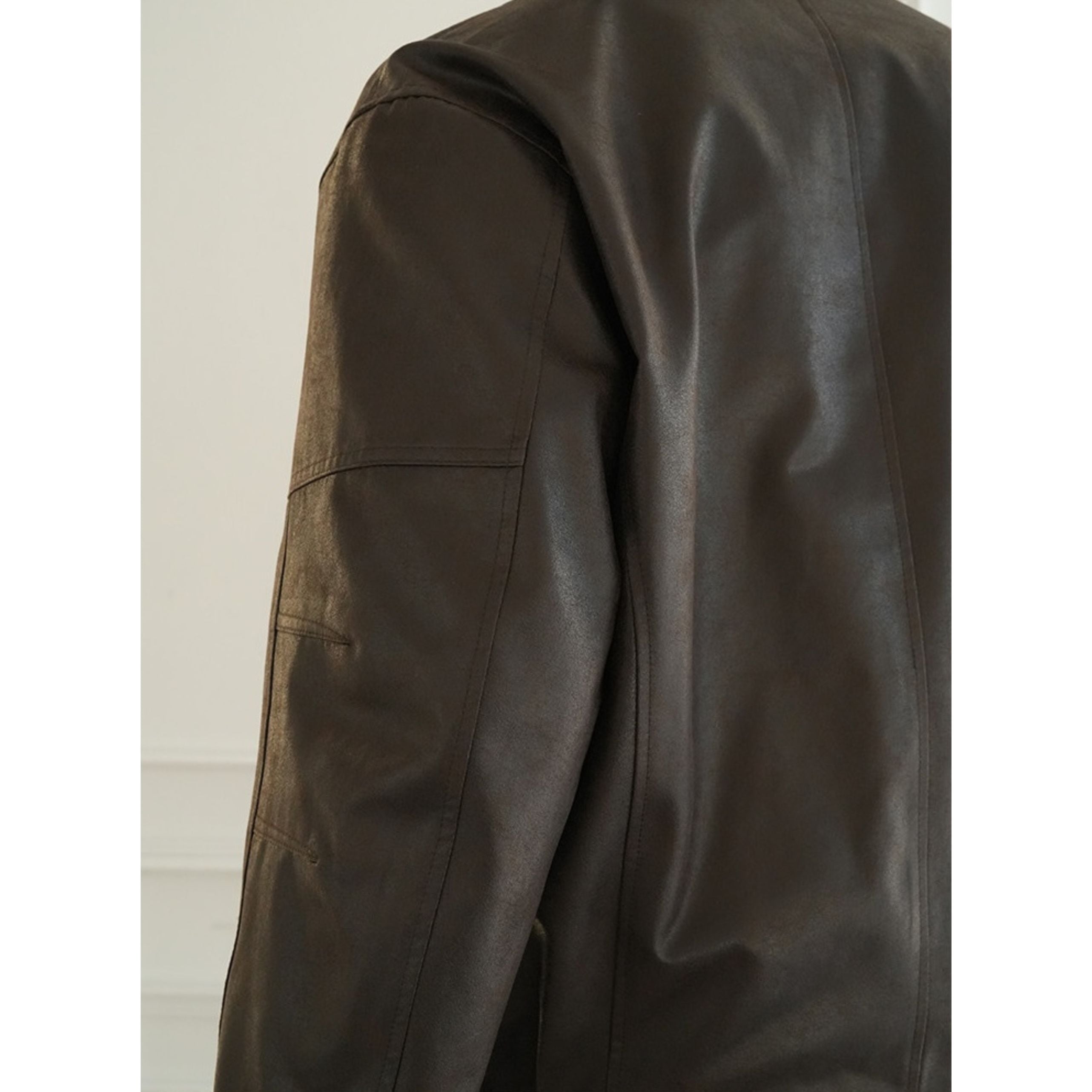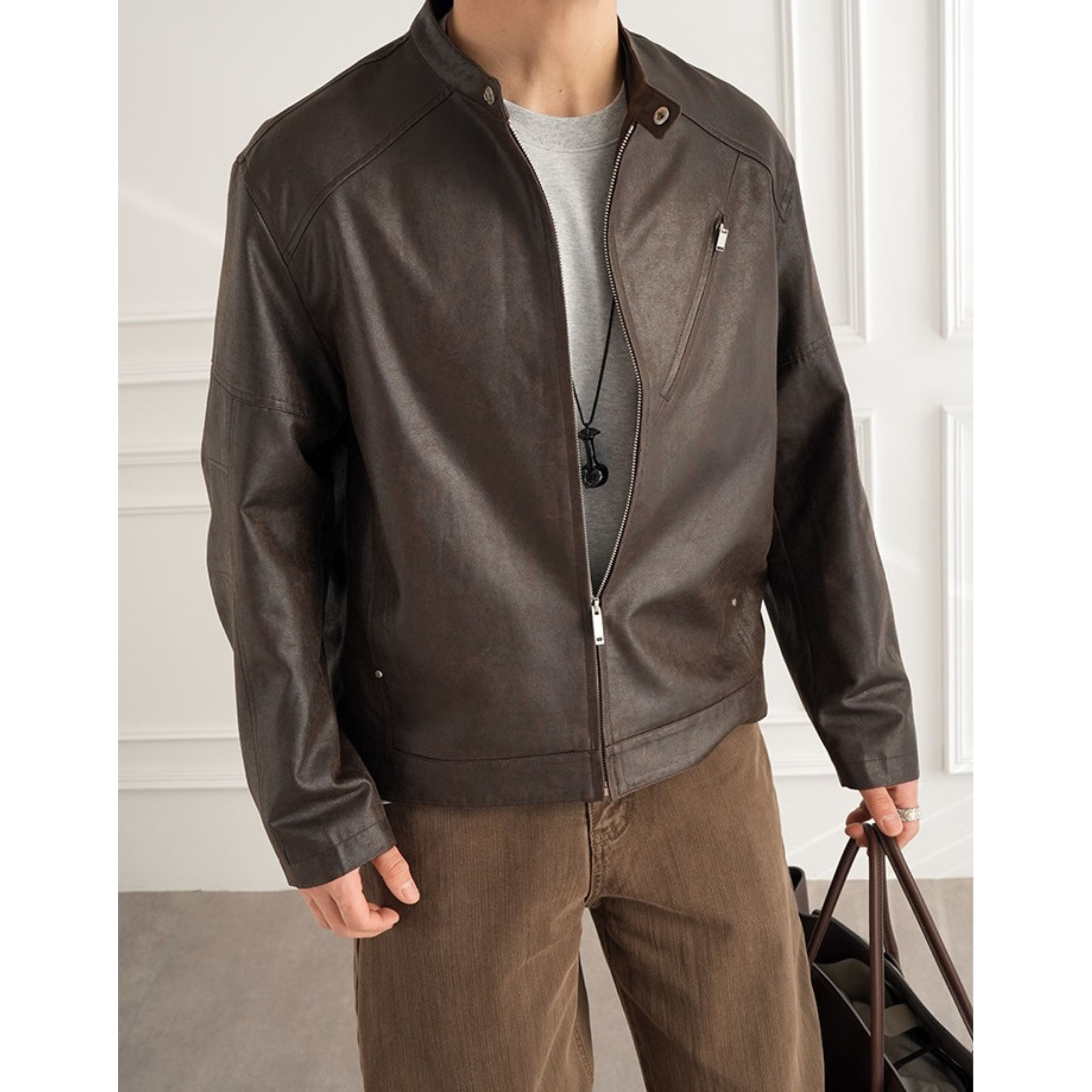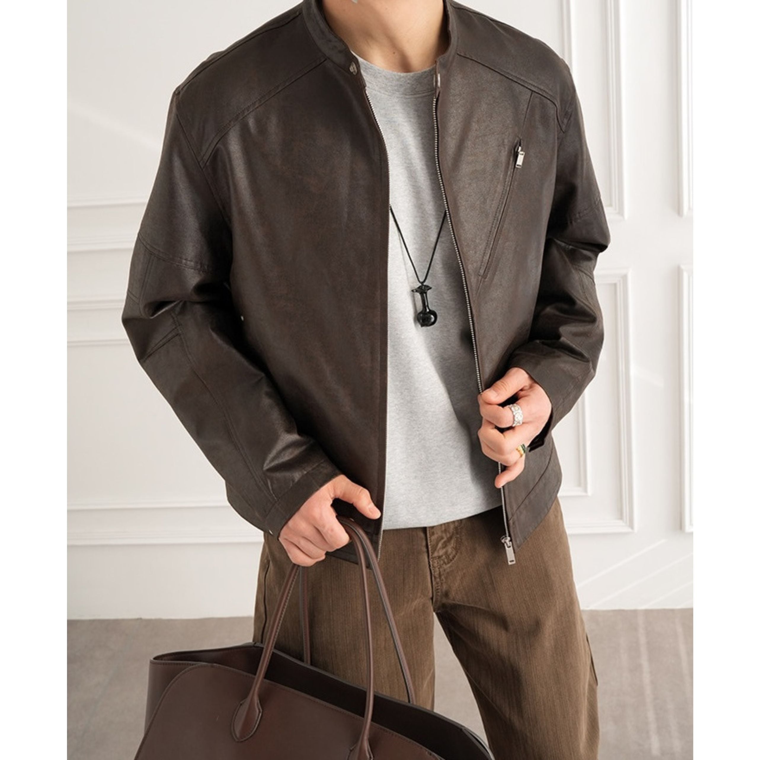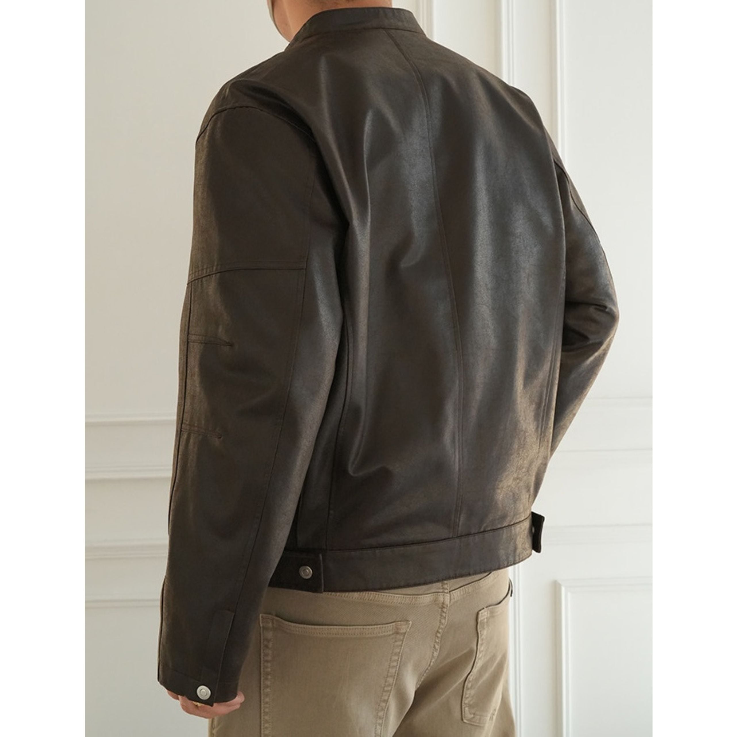 落ち着いたブラウンの風合いが魅力のシングルレザージャケット。