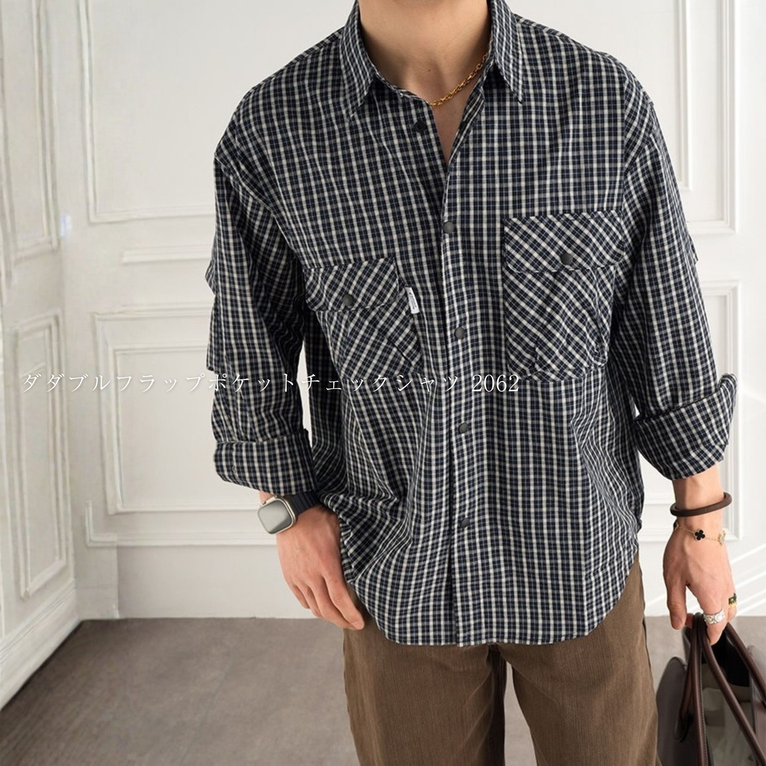 ダブルフラップポケットチェックシャツ 2062