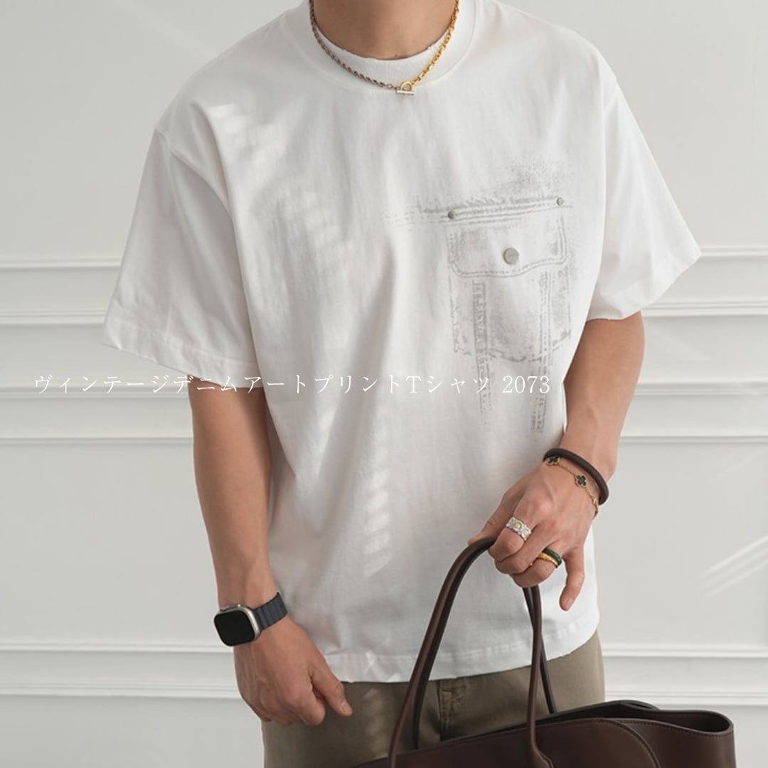 ヴィンテージデニムアートプリントTシャツ 2073