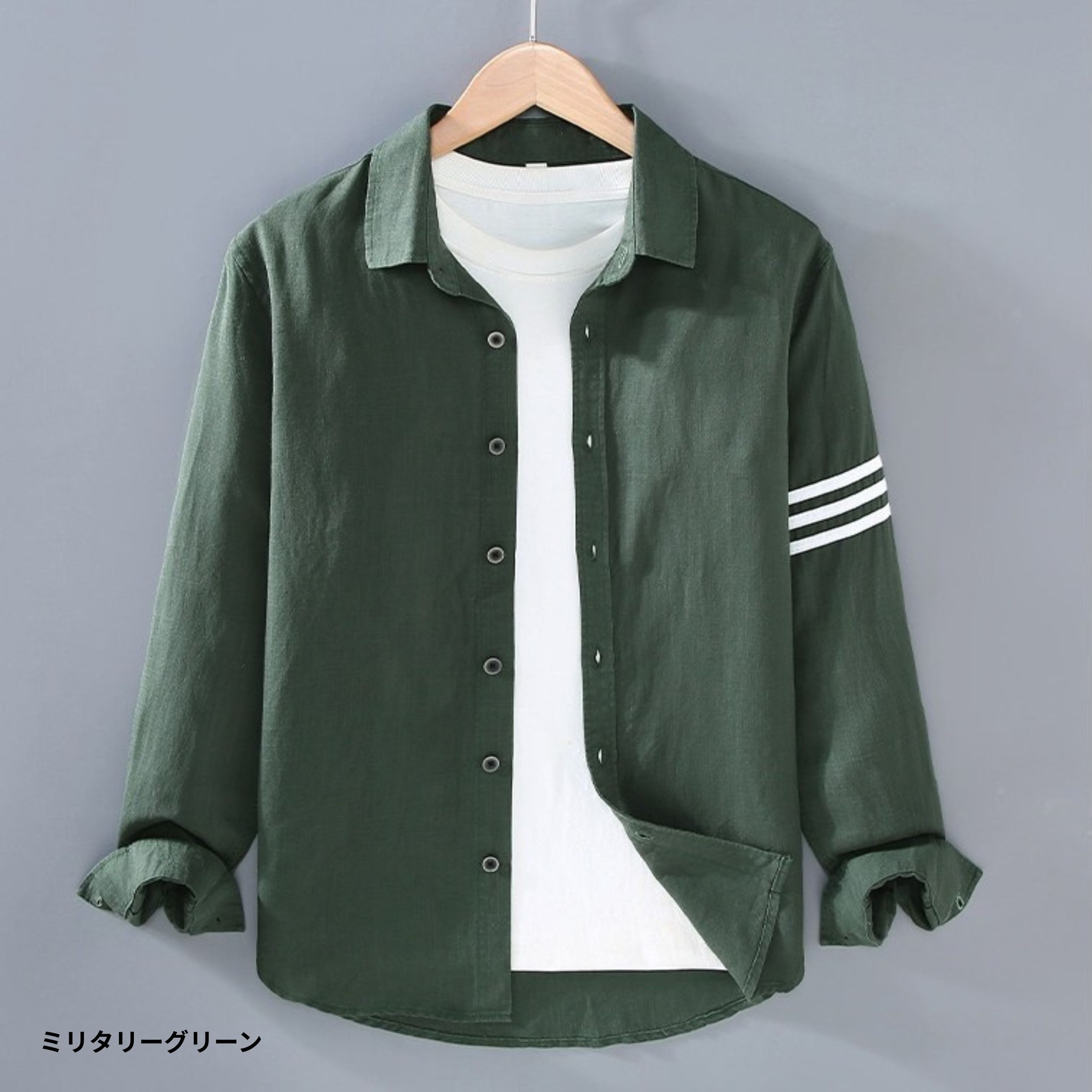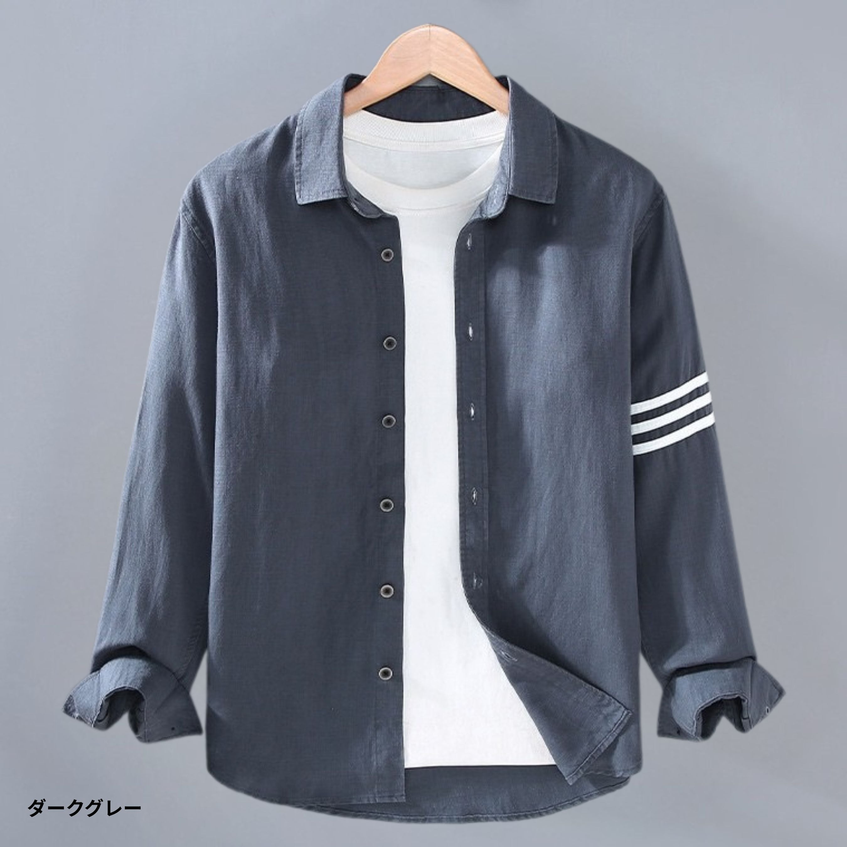 Tシャツの上からさらっと羽織るだけで、季節感のあるカジュアルスタイルが完成します。