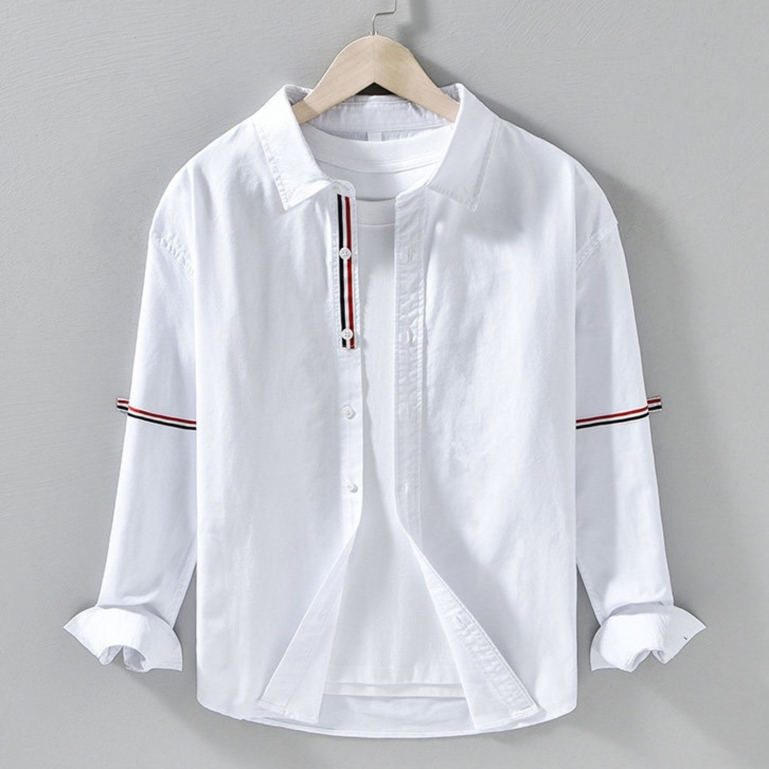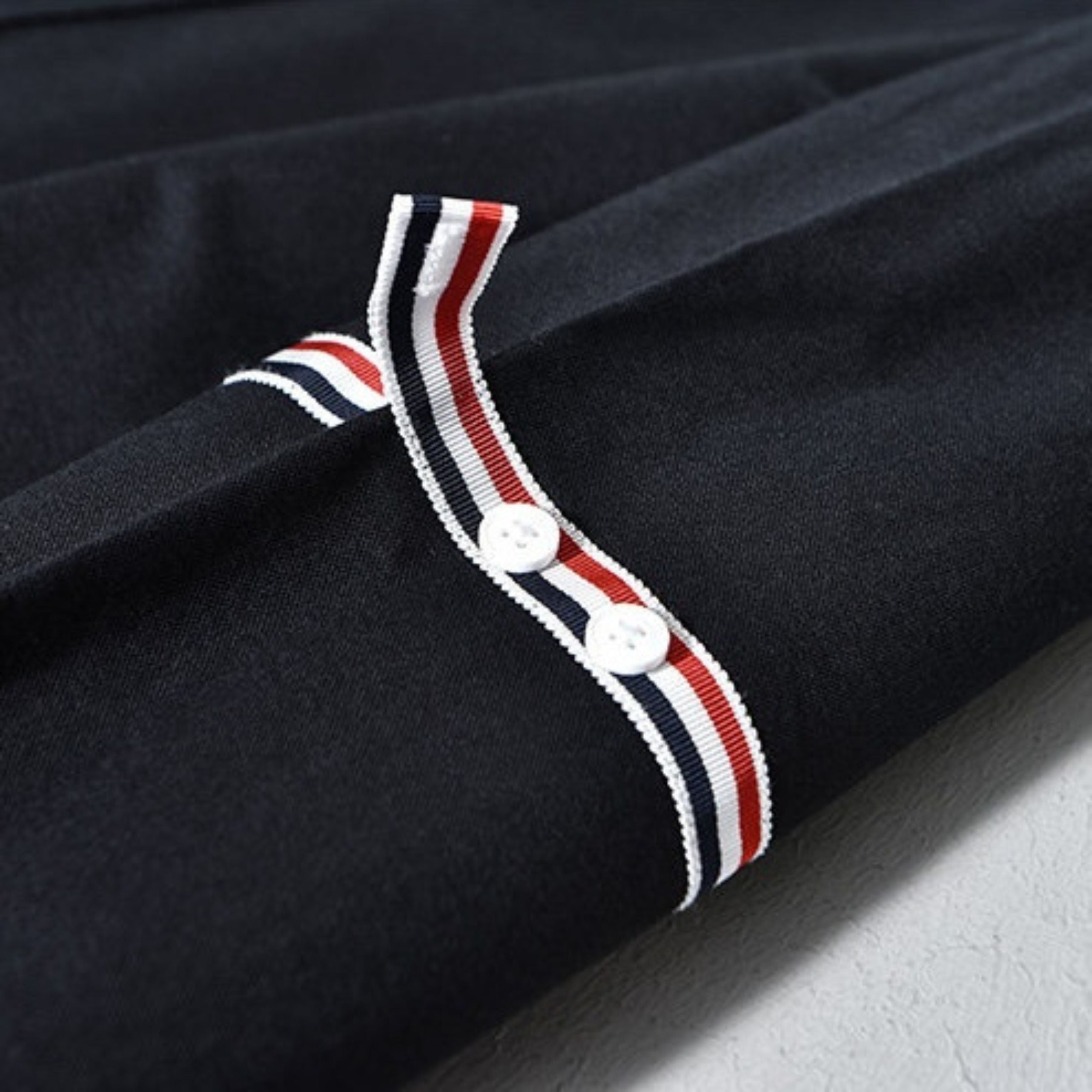 シンプルなデザインにトリコロールラインのアクセントを取り入れた一枚。