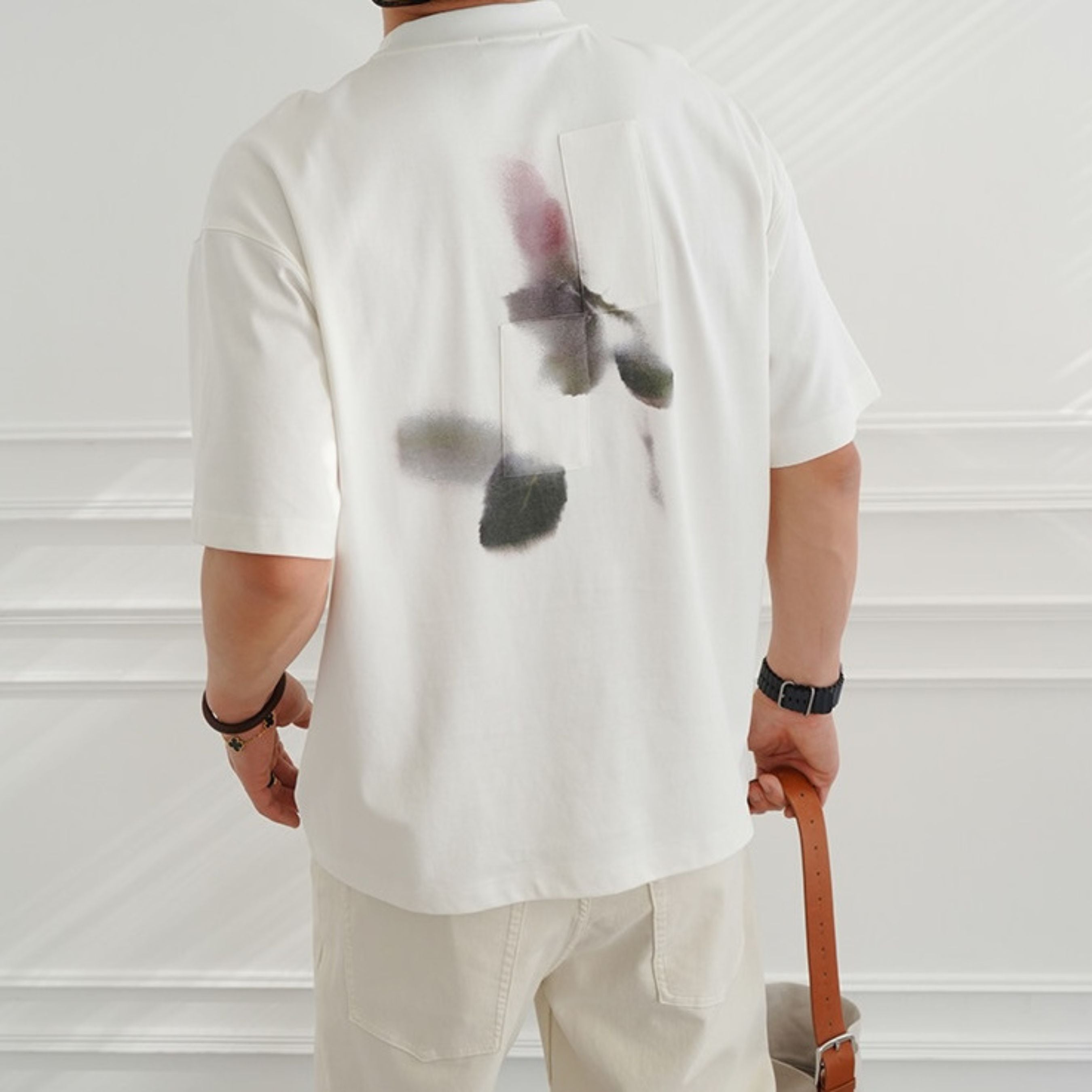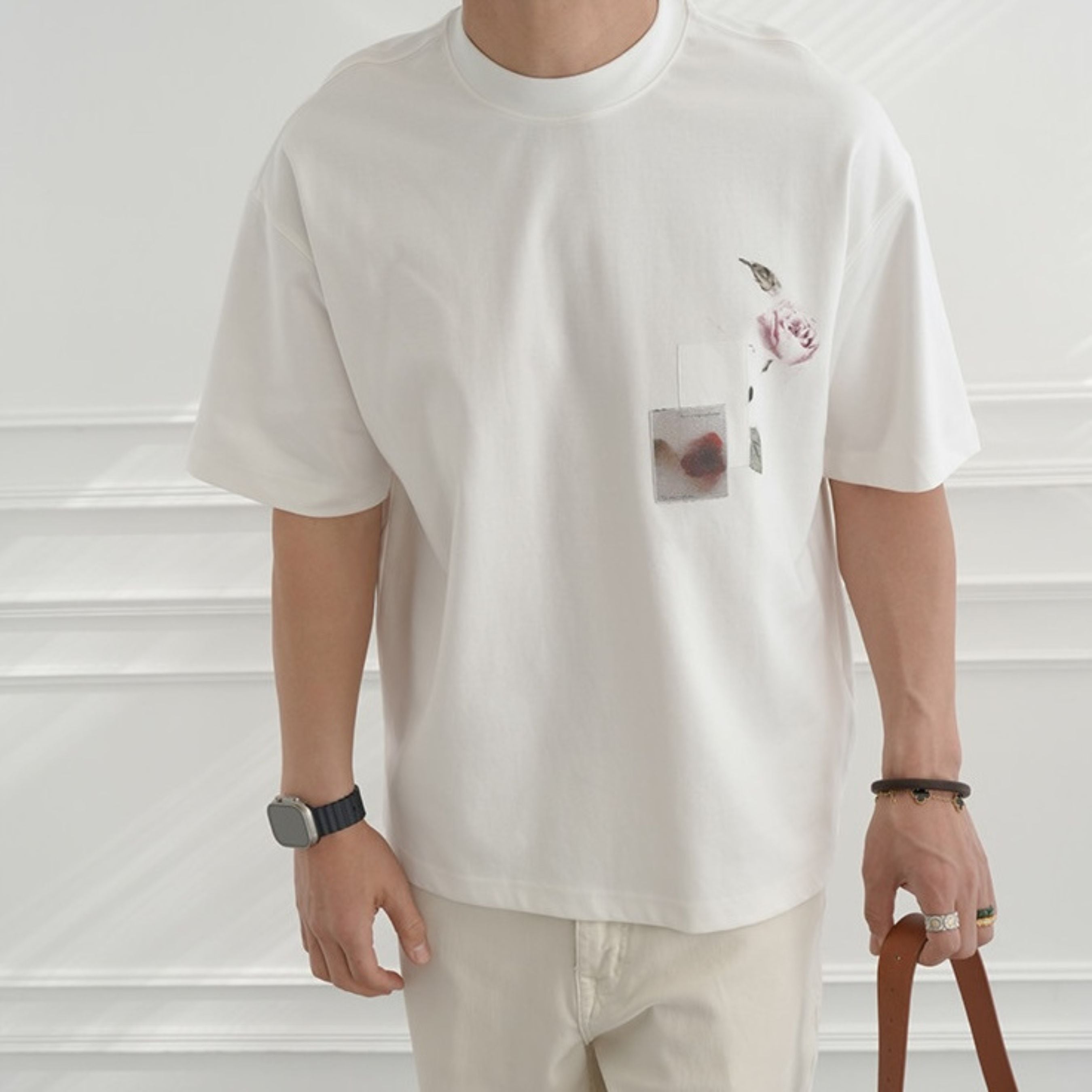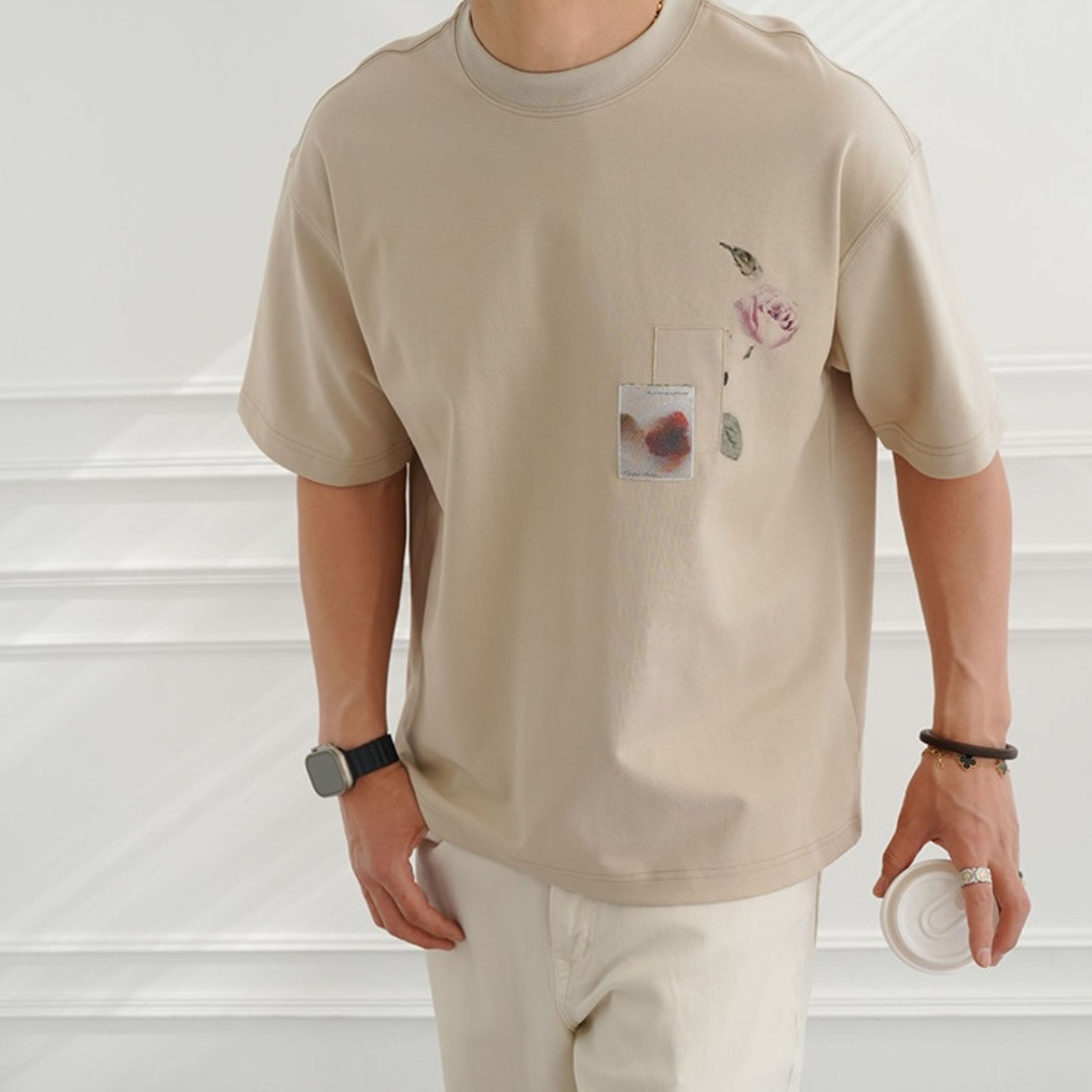 複数のパーツを重ねたパッチワークデザインが目を引く一枚。
