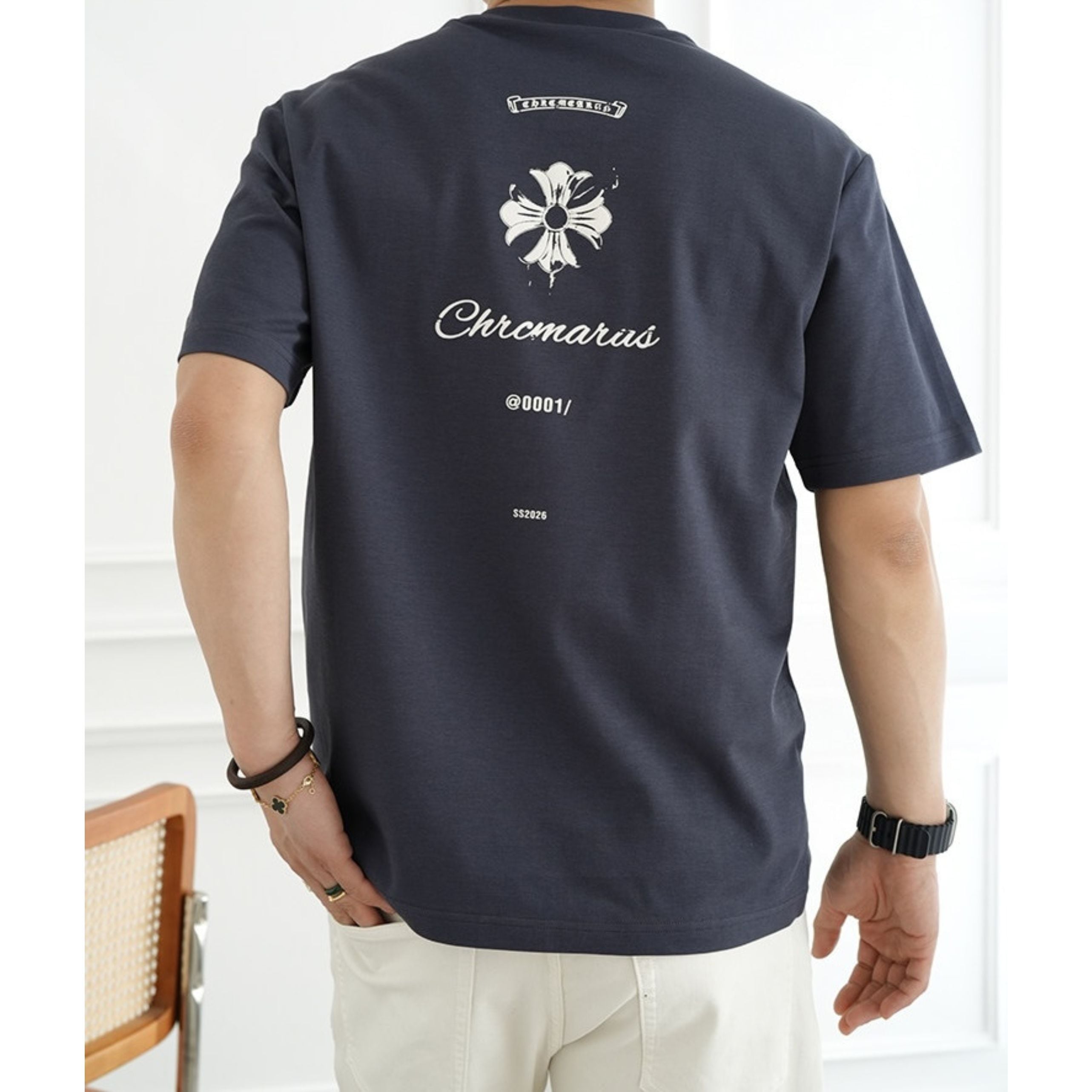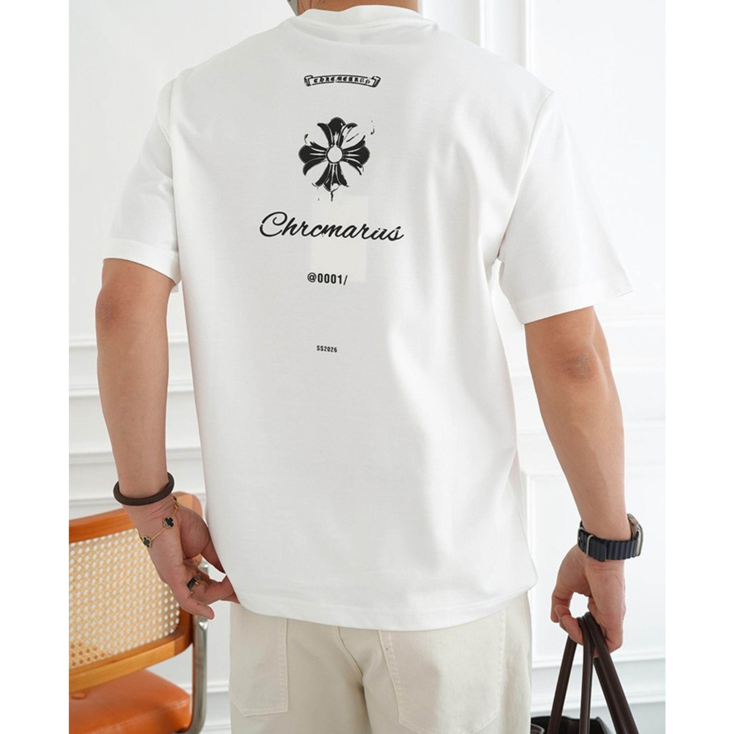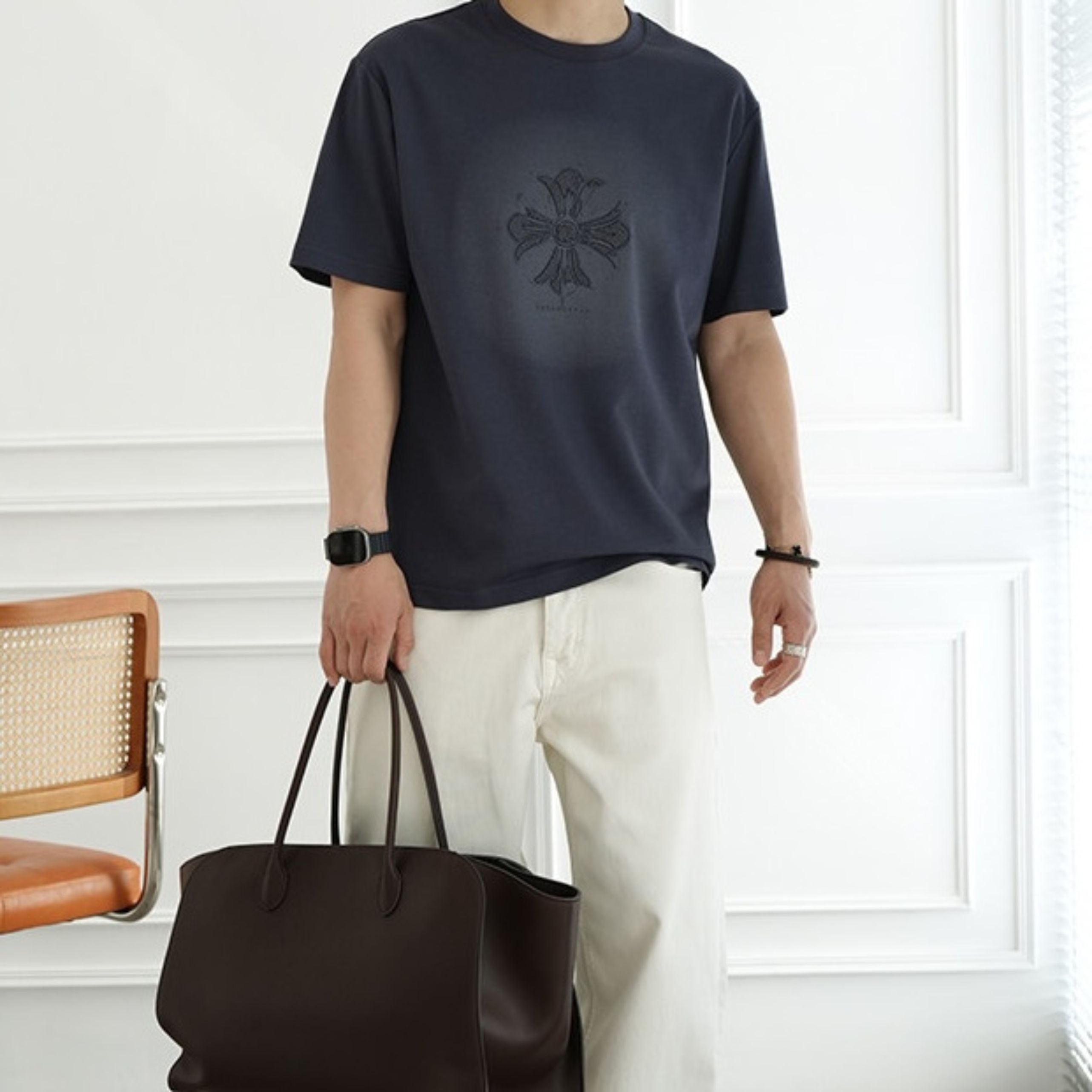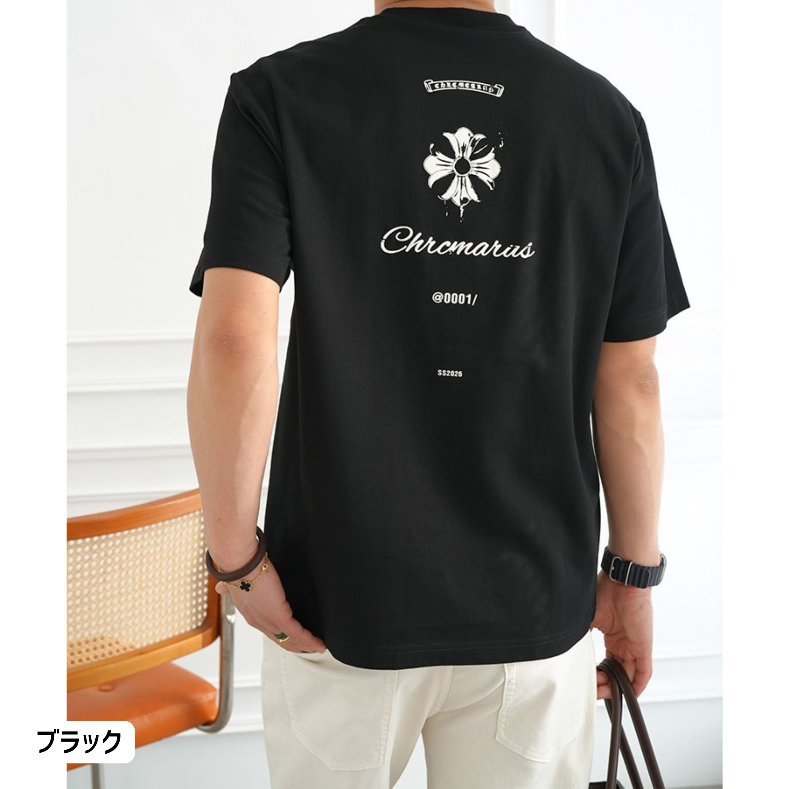 フロントは同色でまとめたシックな仕上がり、バックにはロゴとタイポグラフィーを配し、前後で異なる表情を楽しめます。