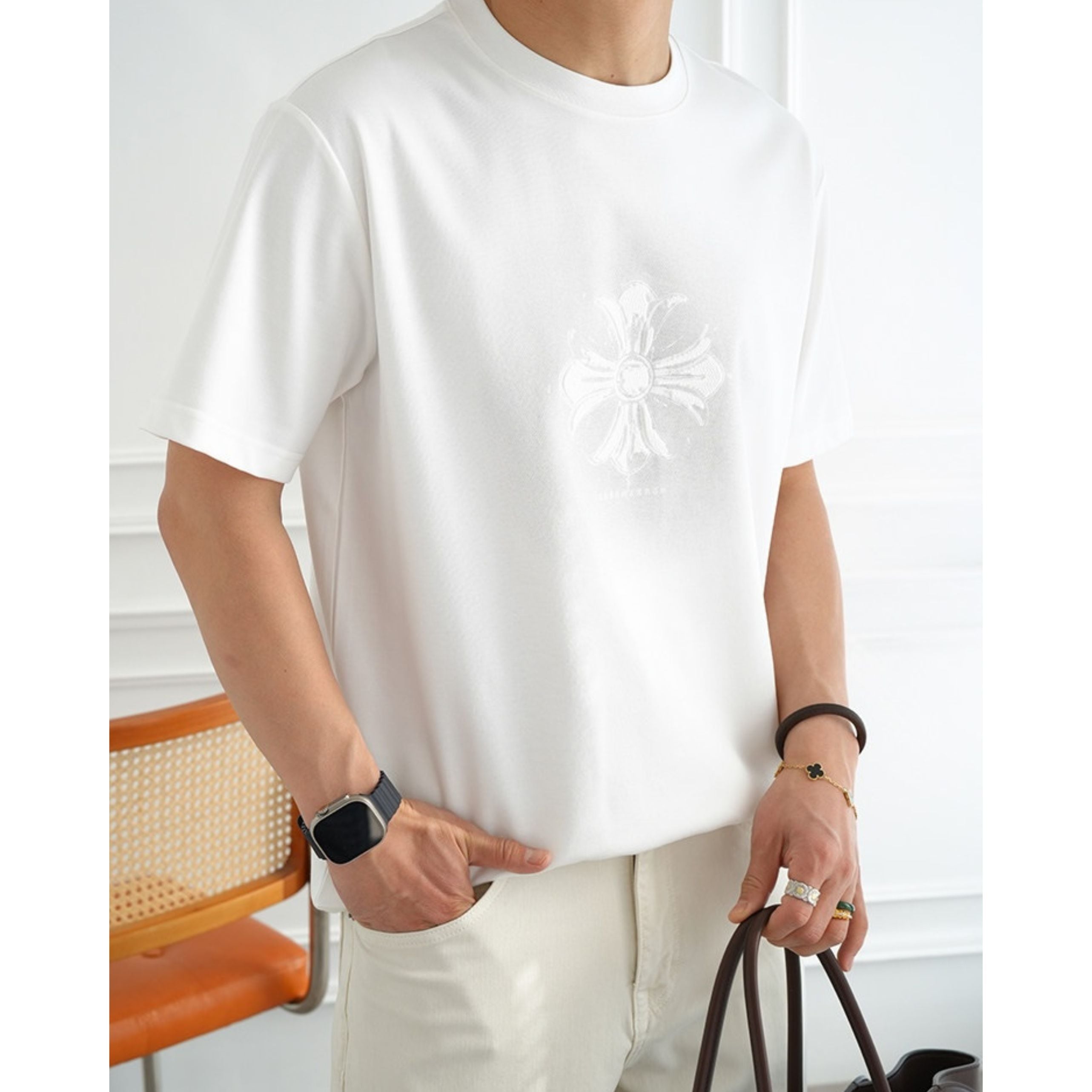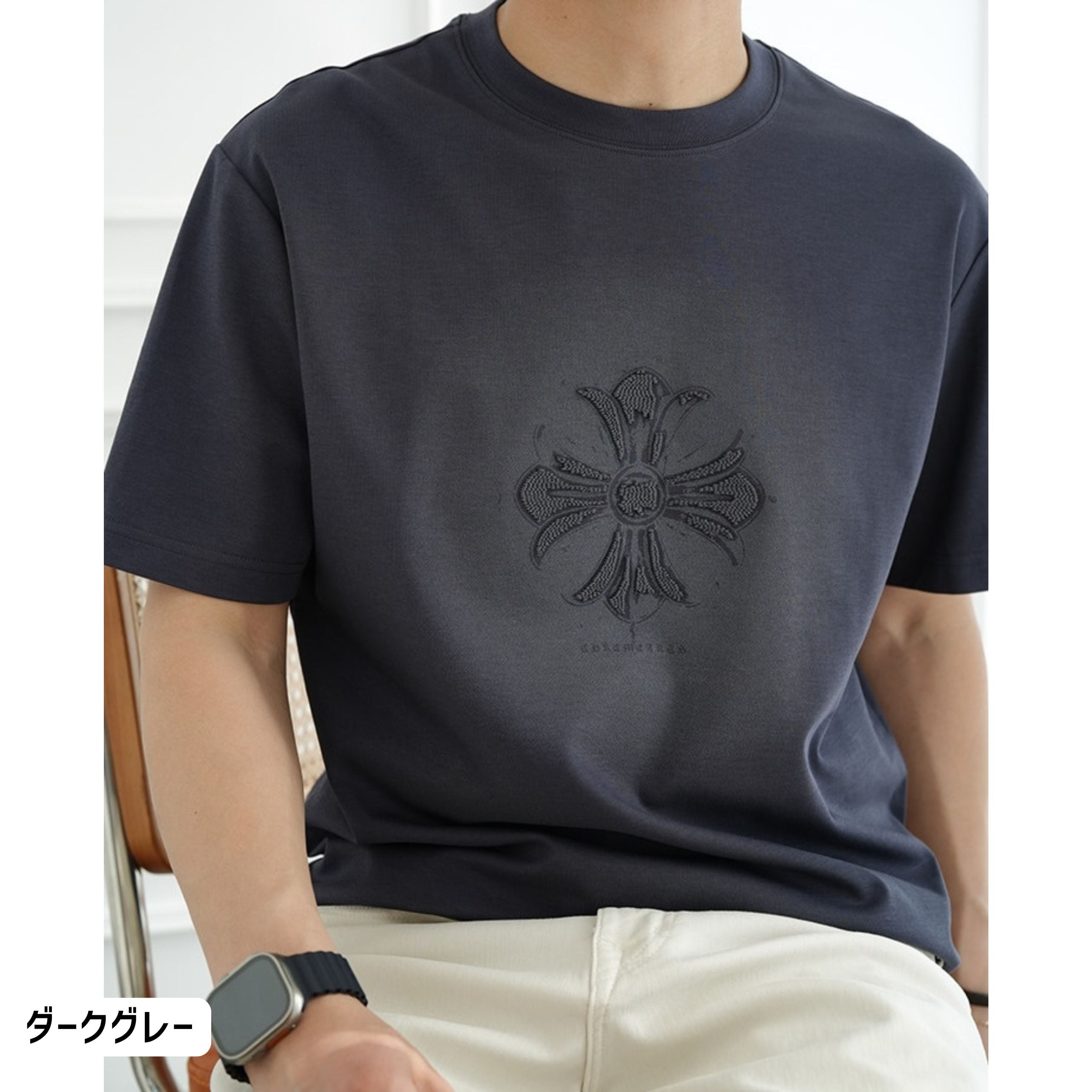 立体感のあるモチーフが印象的なヴィンテージライクのデザインTシャツ。