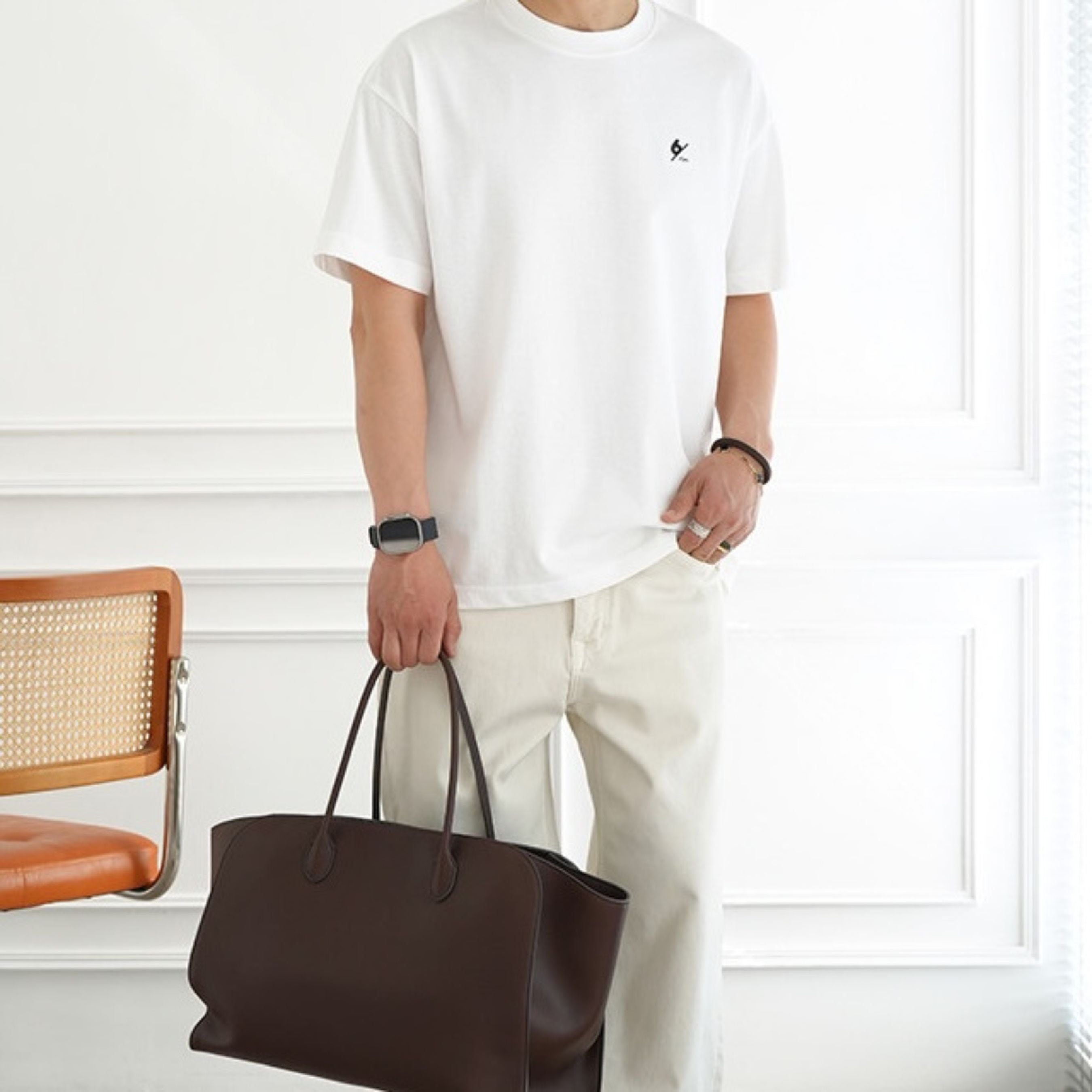 シンプルなデザインにワンポイントのミニロゴをあしらった、洗練された印象を与える一枚。