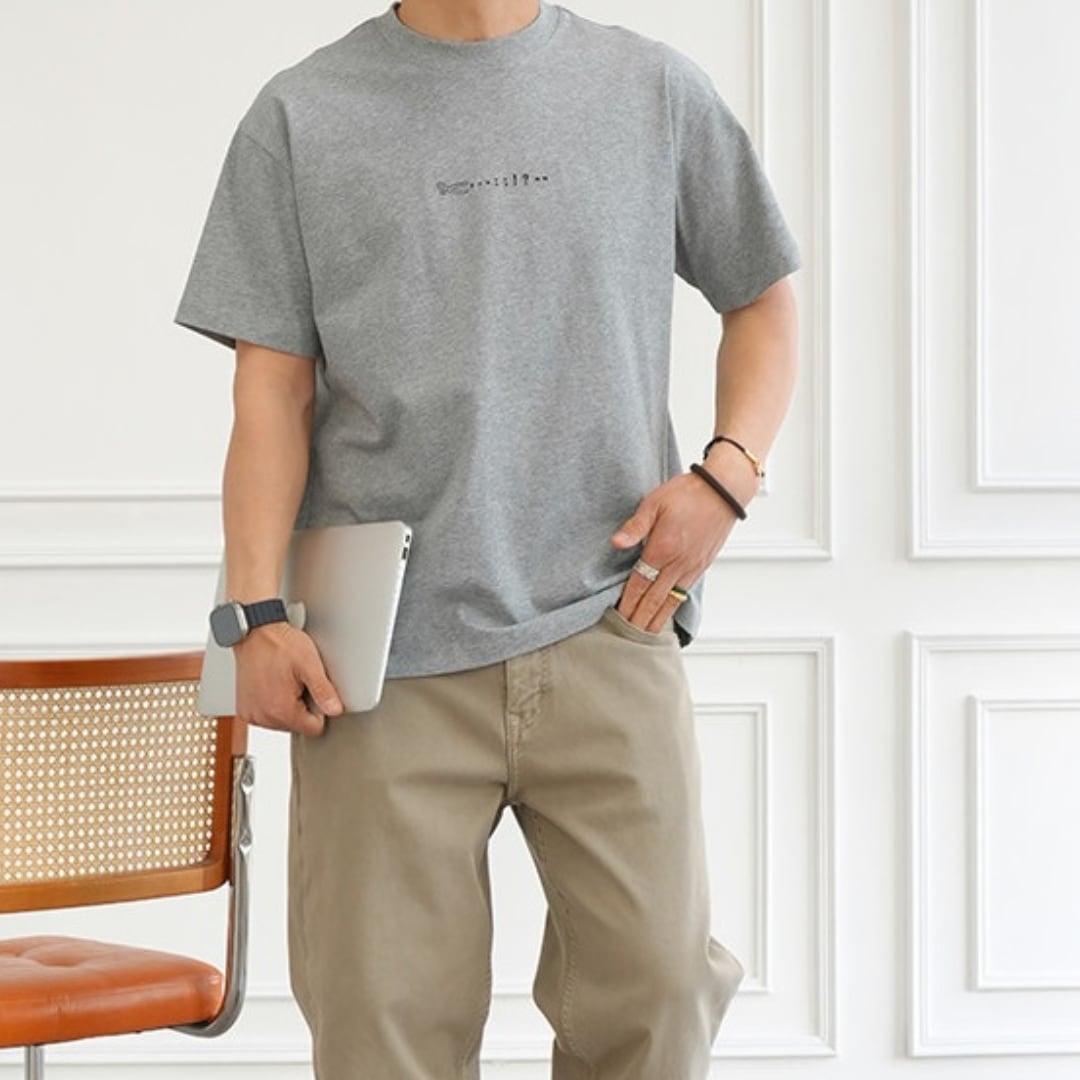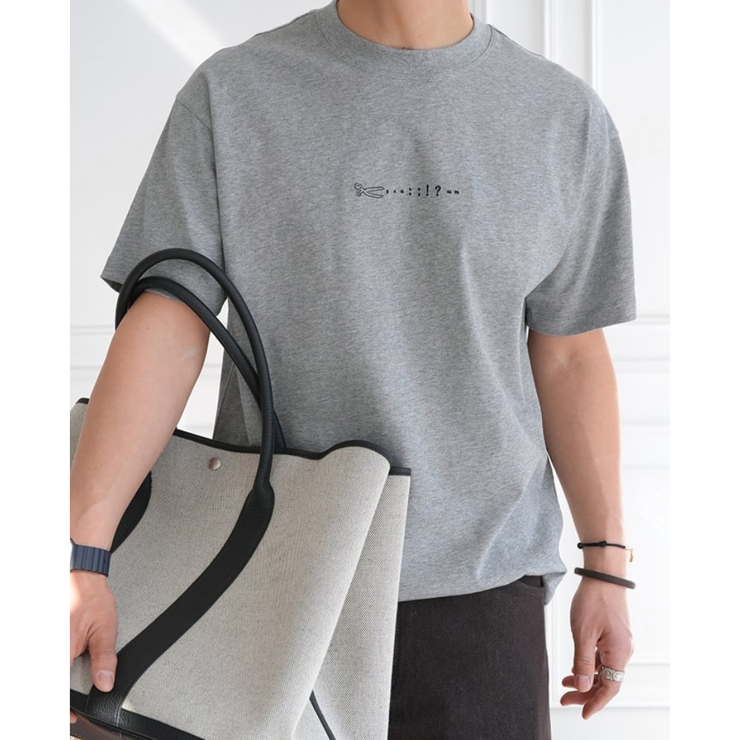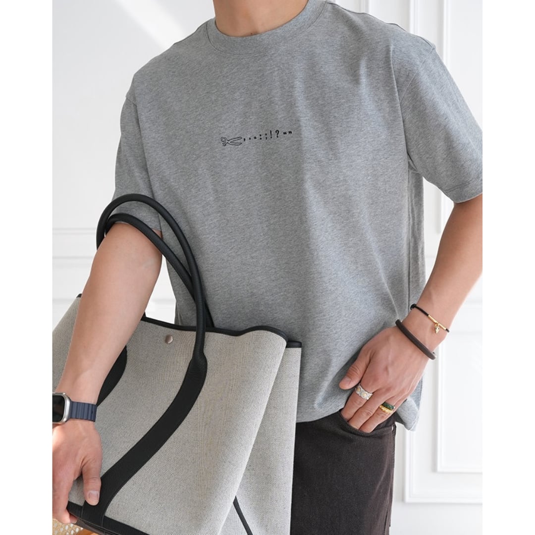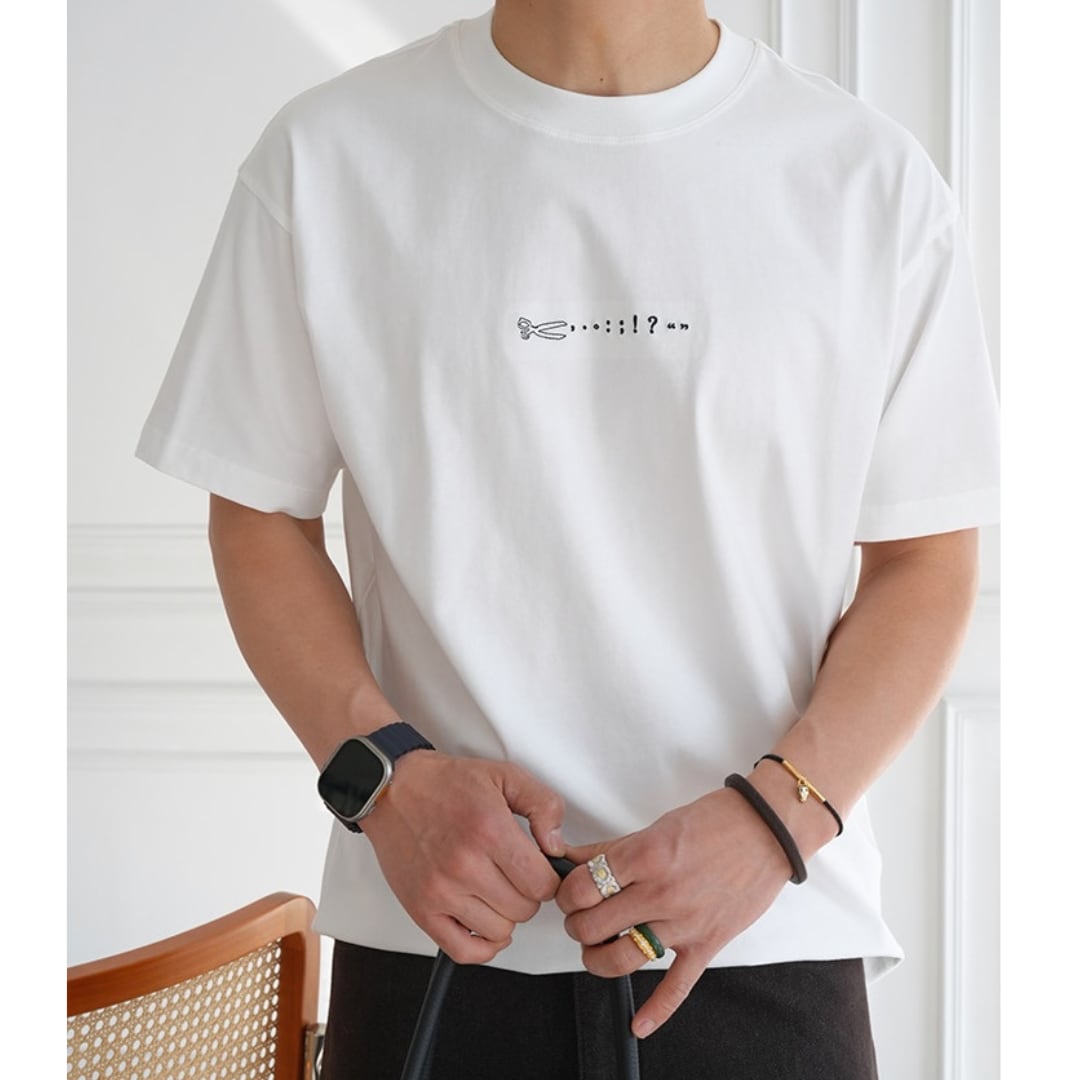 手描き風のハサミモチーフが目を引くバックプリントTシャツ。