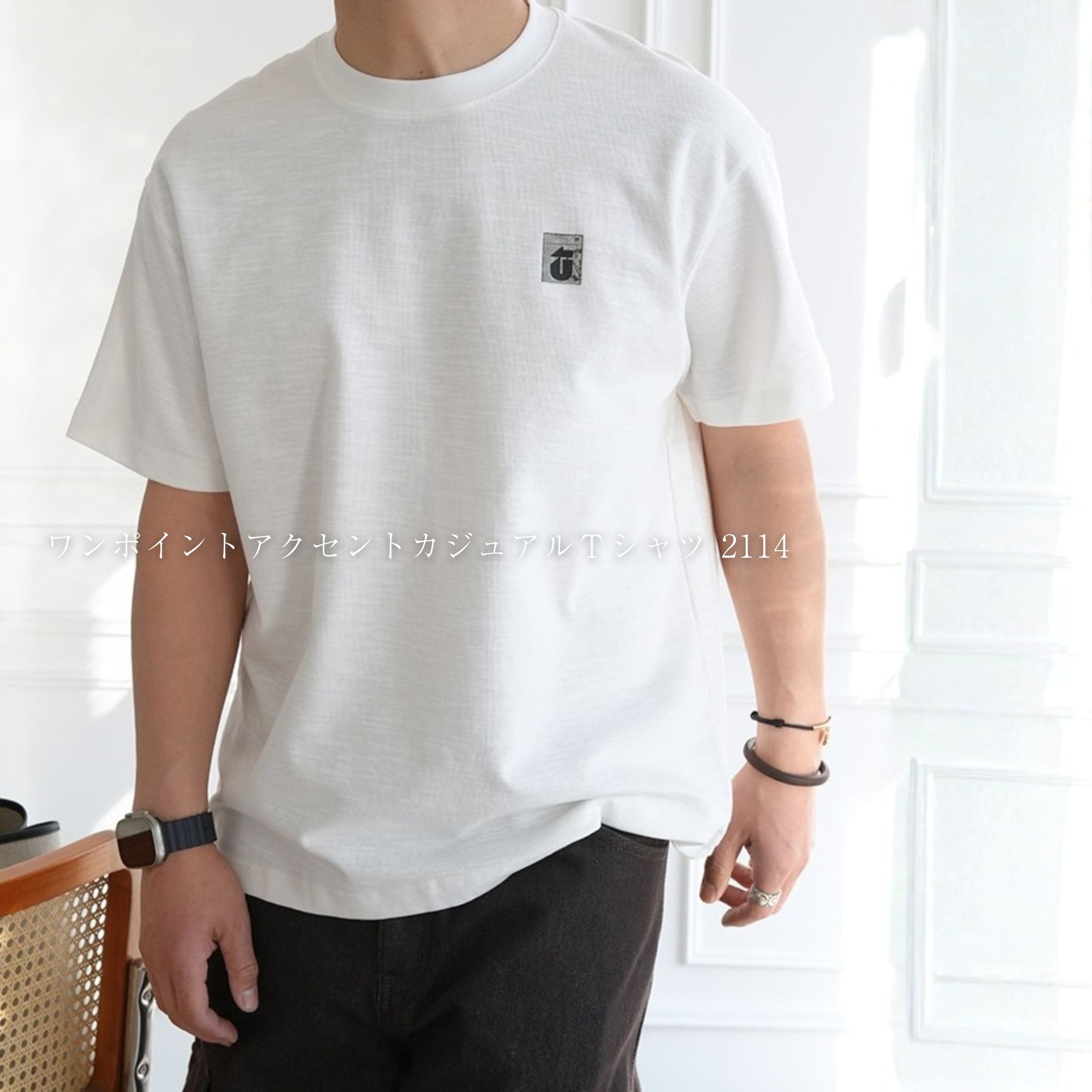 ワンポイントアクセントカジュアルTシャツ 2114