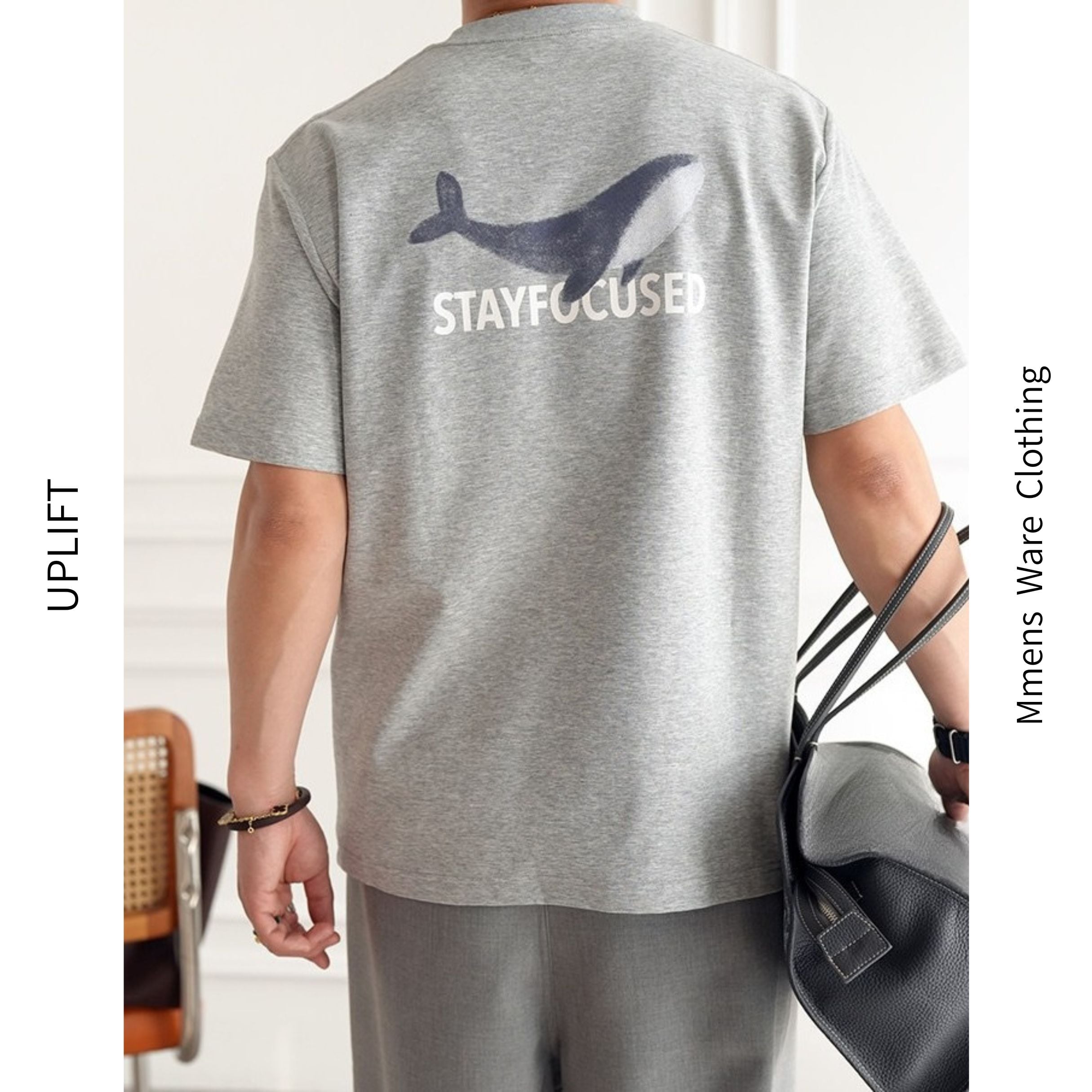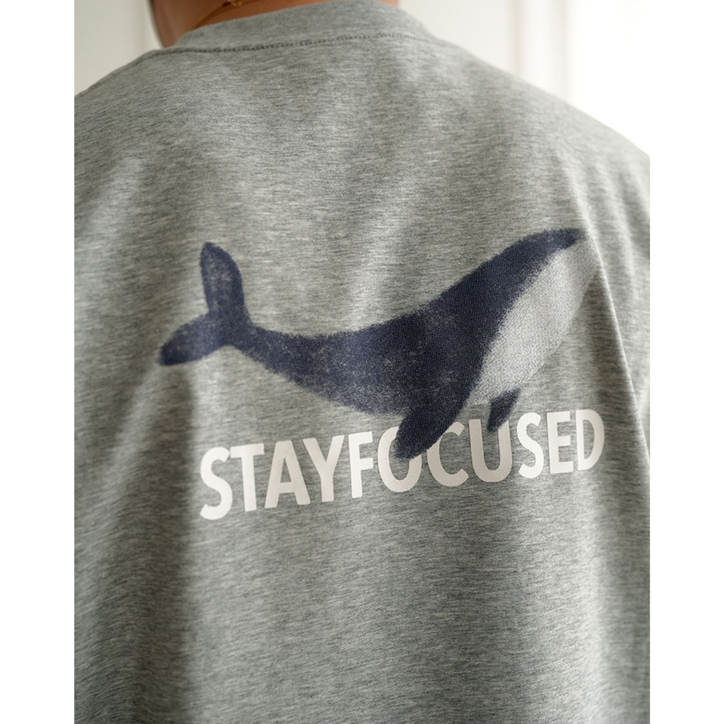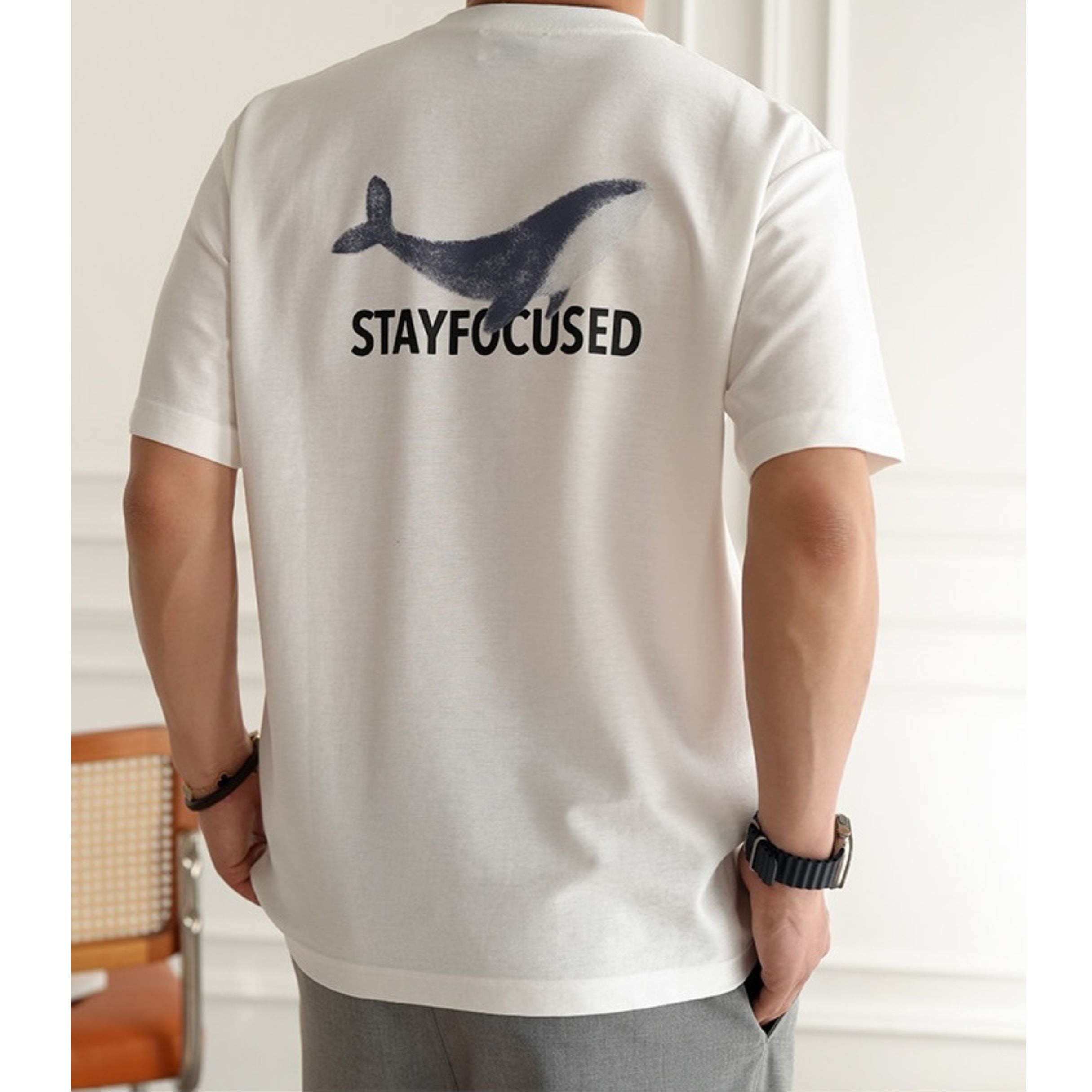 印象的なホエールモチーフのバックプリントが目を引くデザインTシャツ。