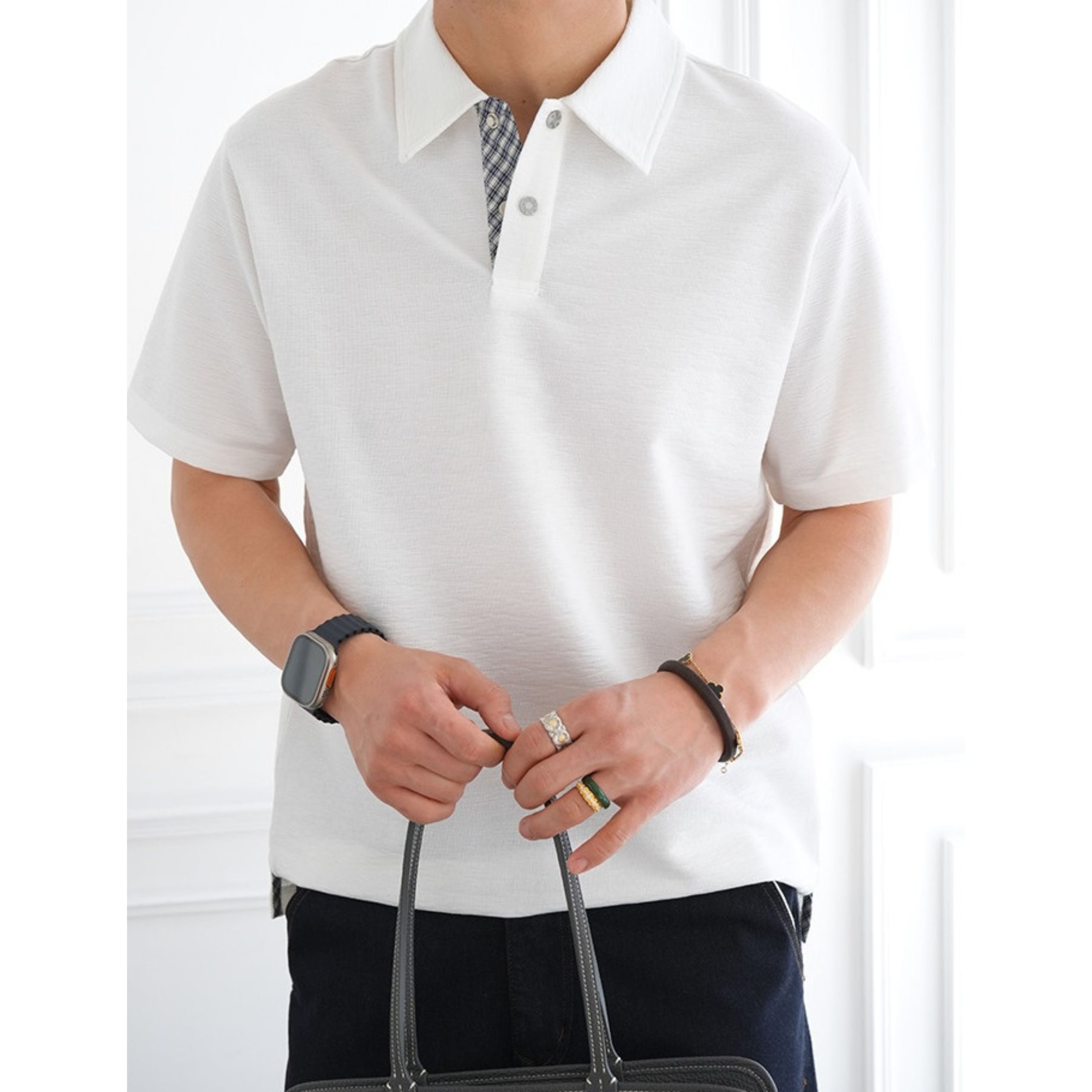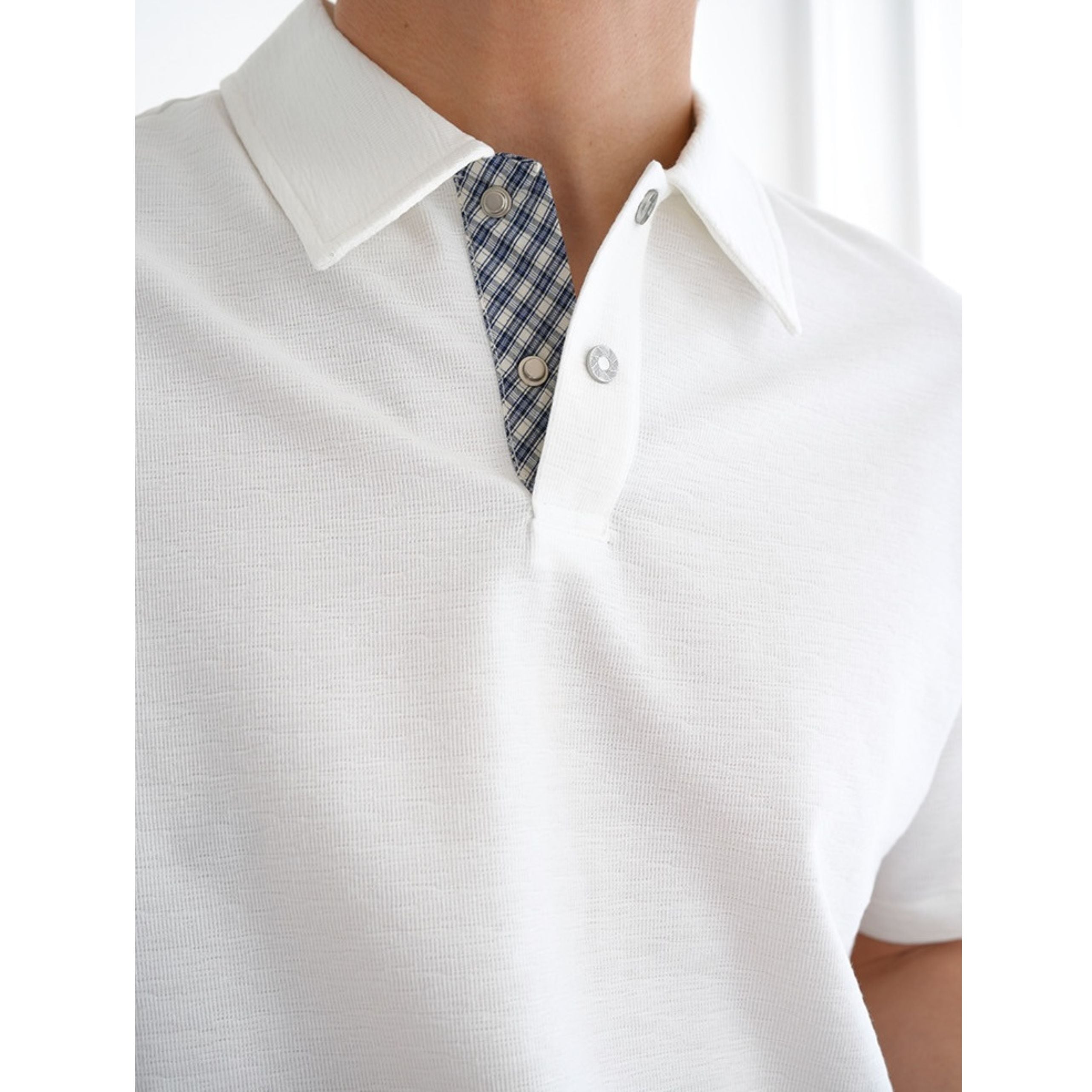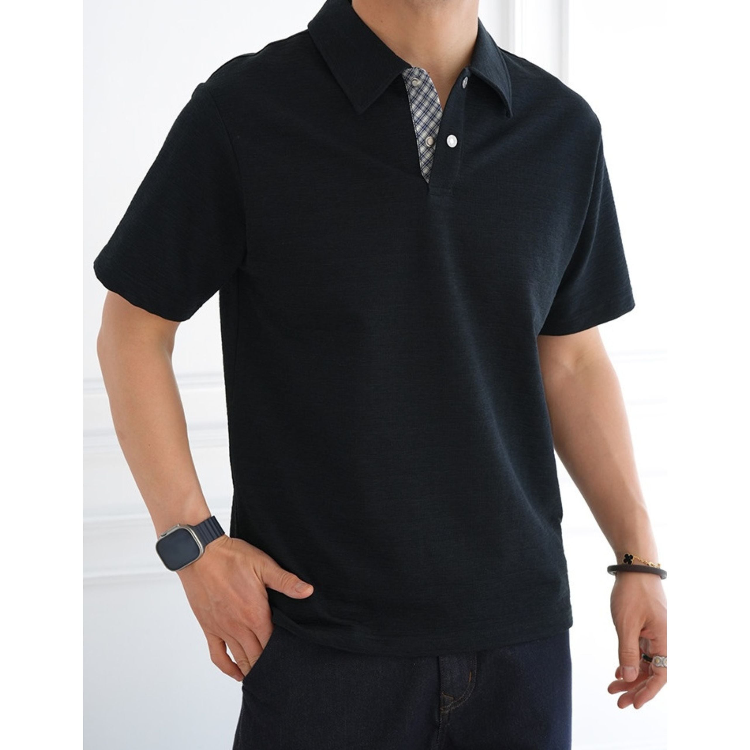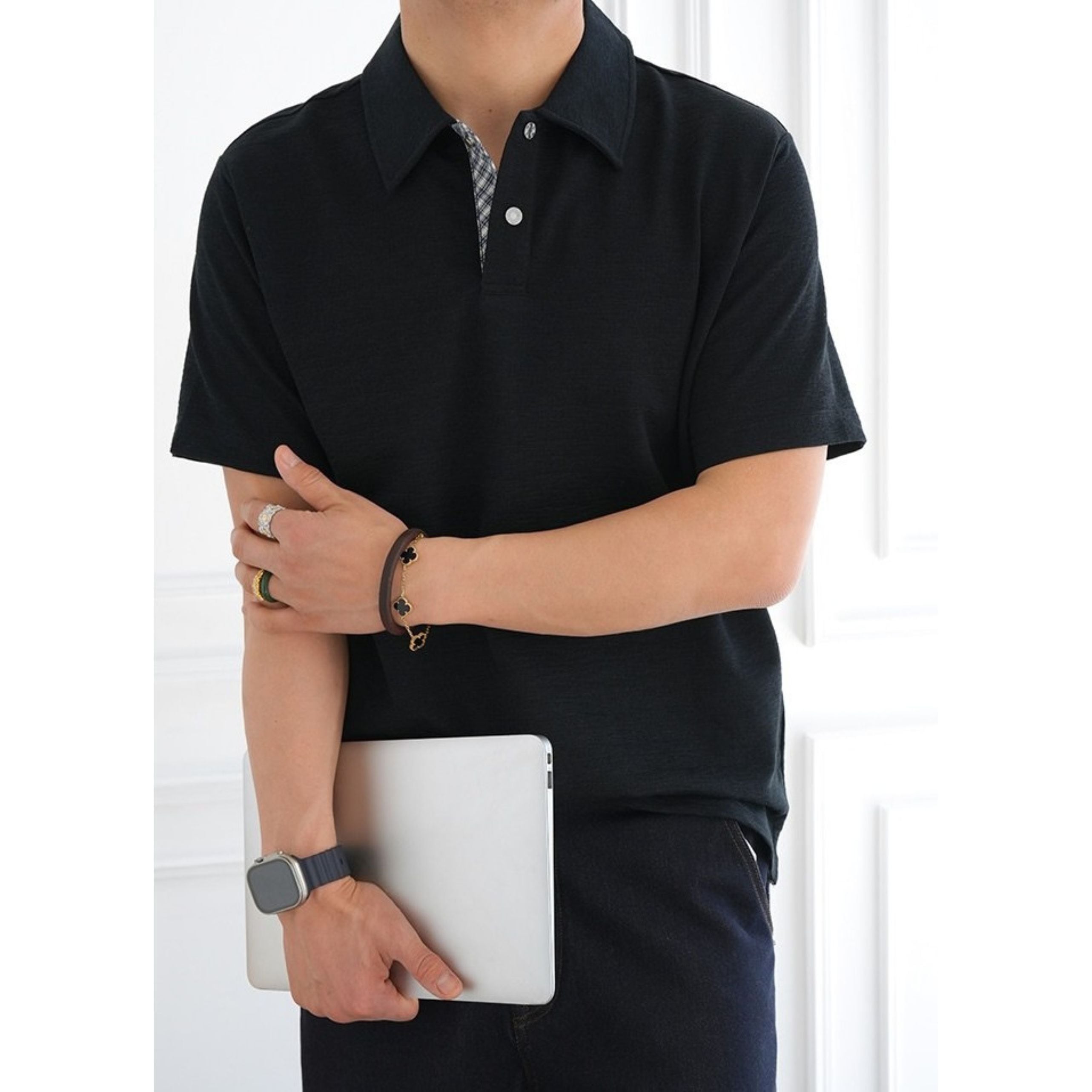 襟元のさりげないチェック柄がアクセントとなり、落ち着いたデザインの中に程よい遊び心をプラス。