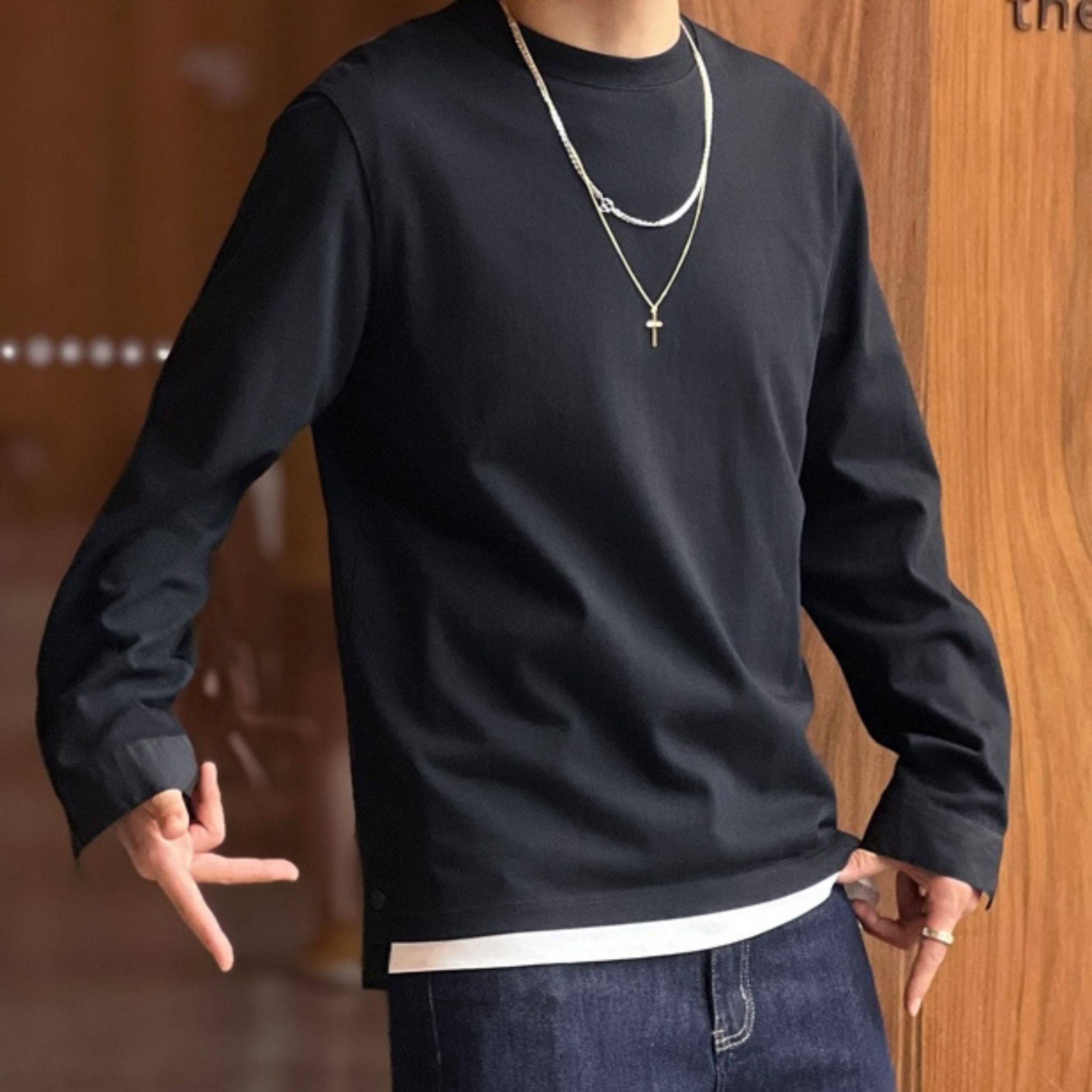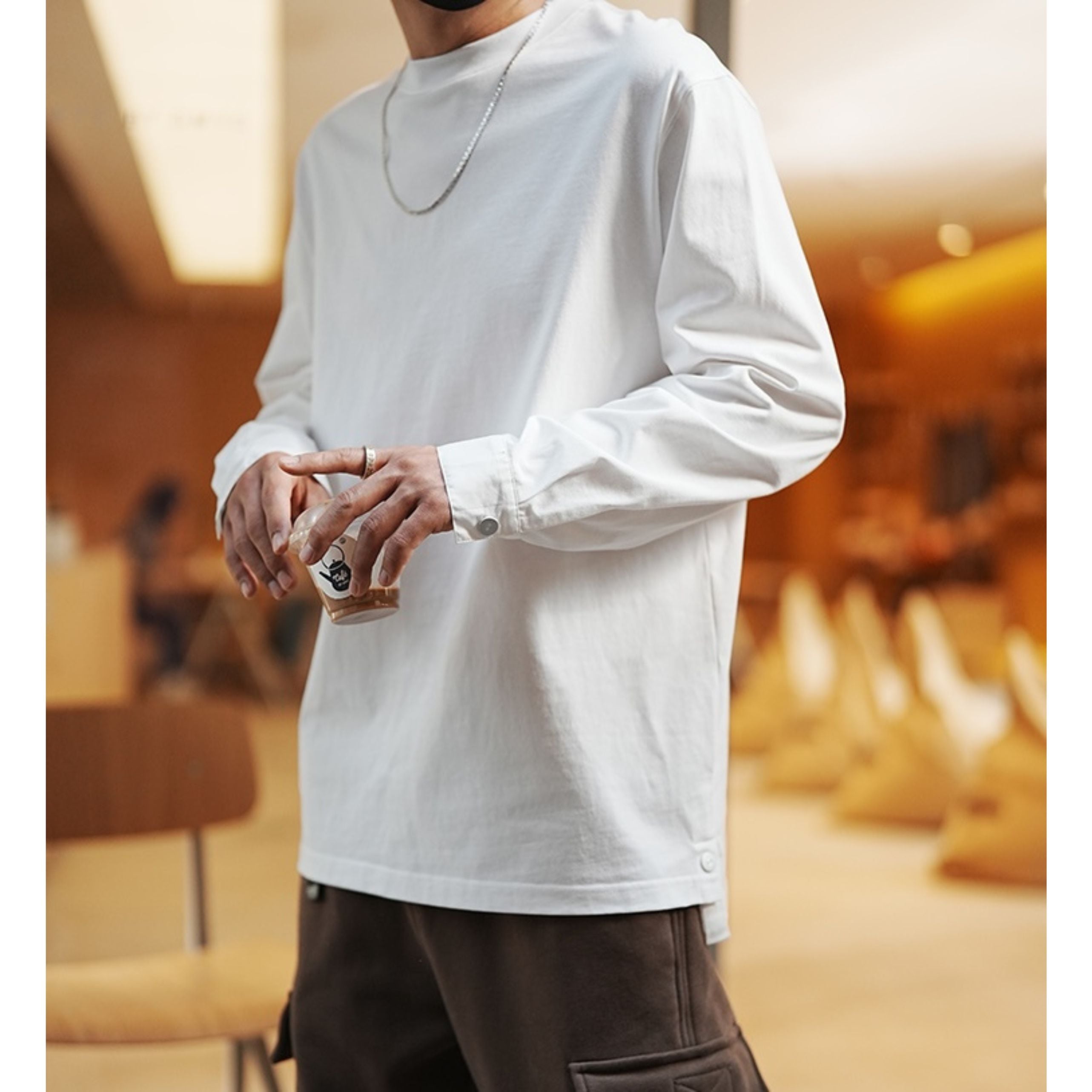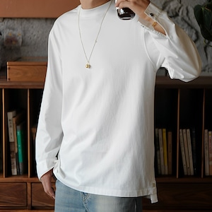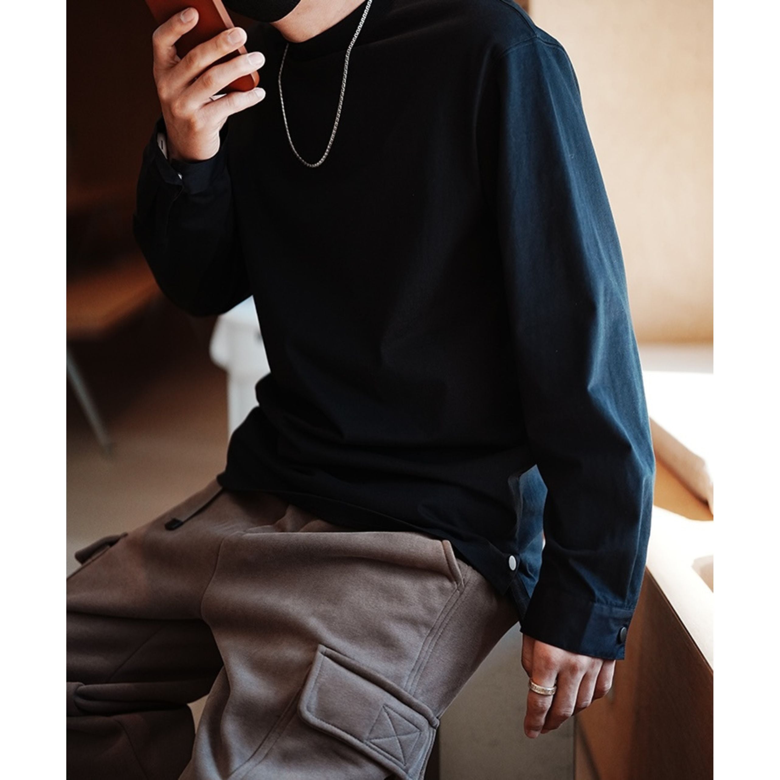 洗練されたミニマルデザインのロングスチーブTシャツ。