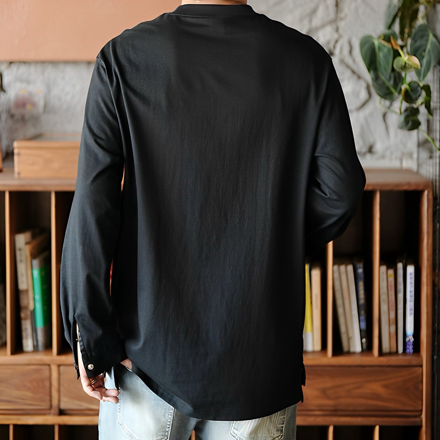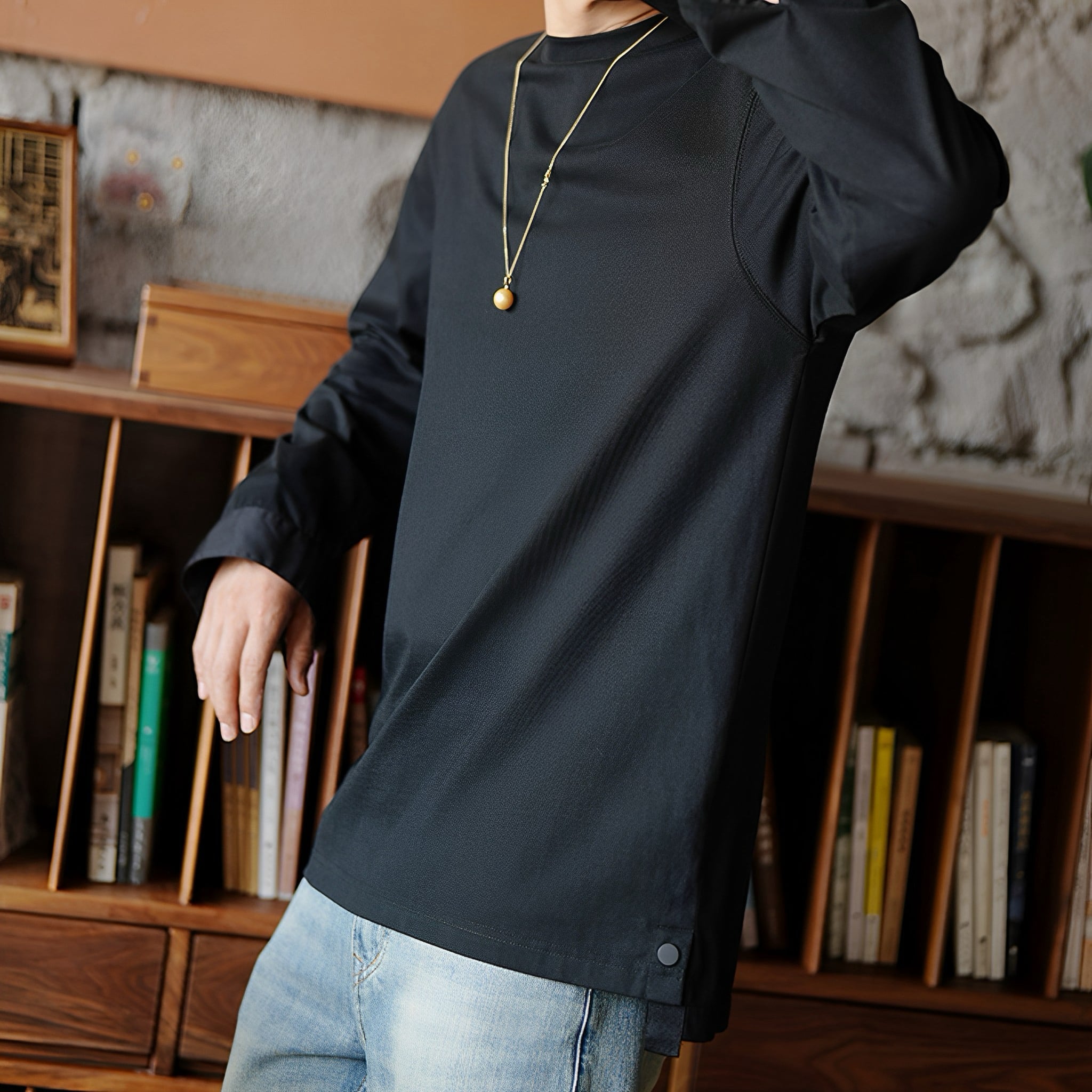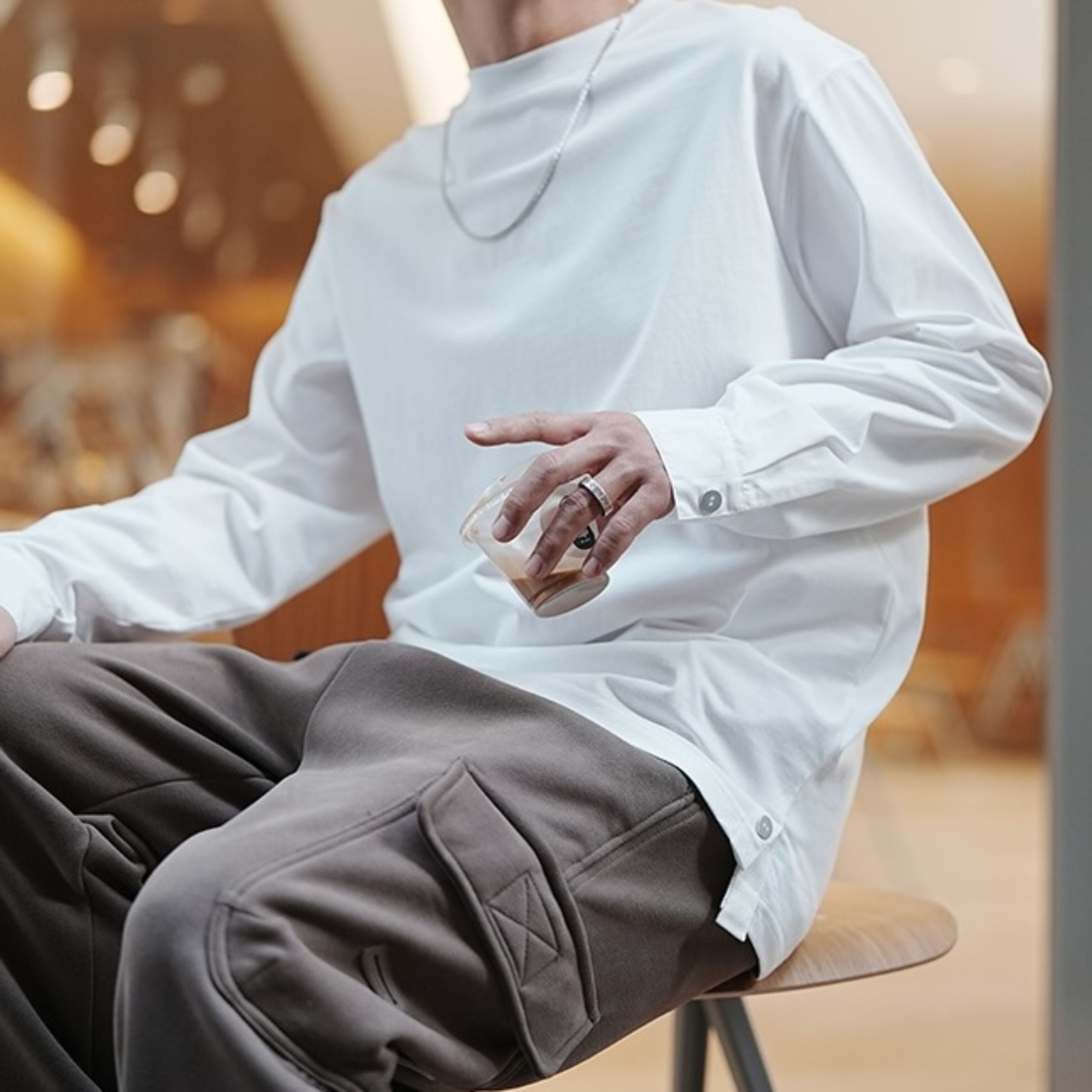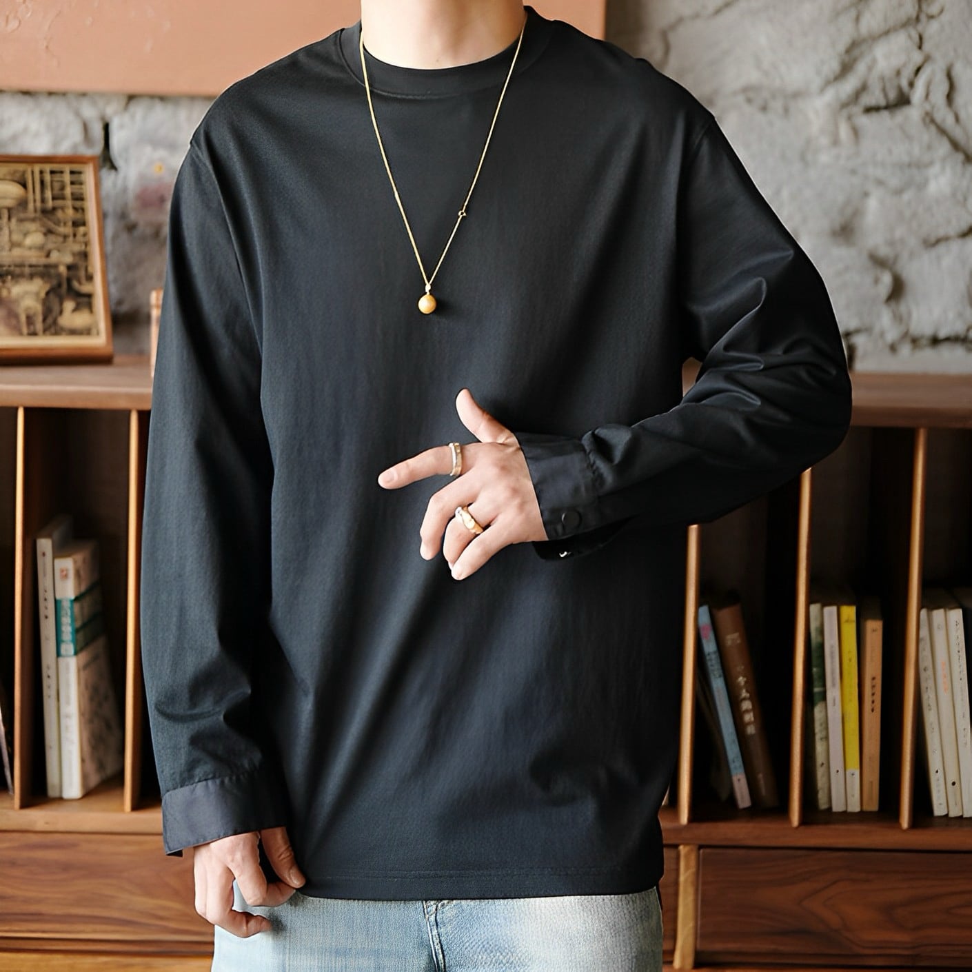 洗練されたミニマルデザインのロングスチーブTシャツ。